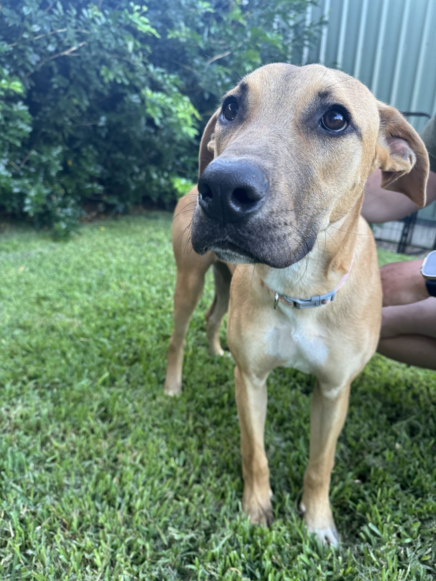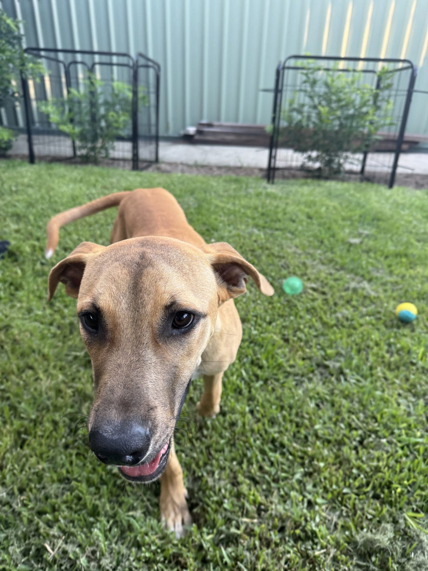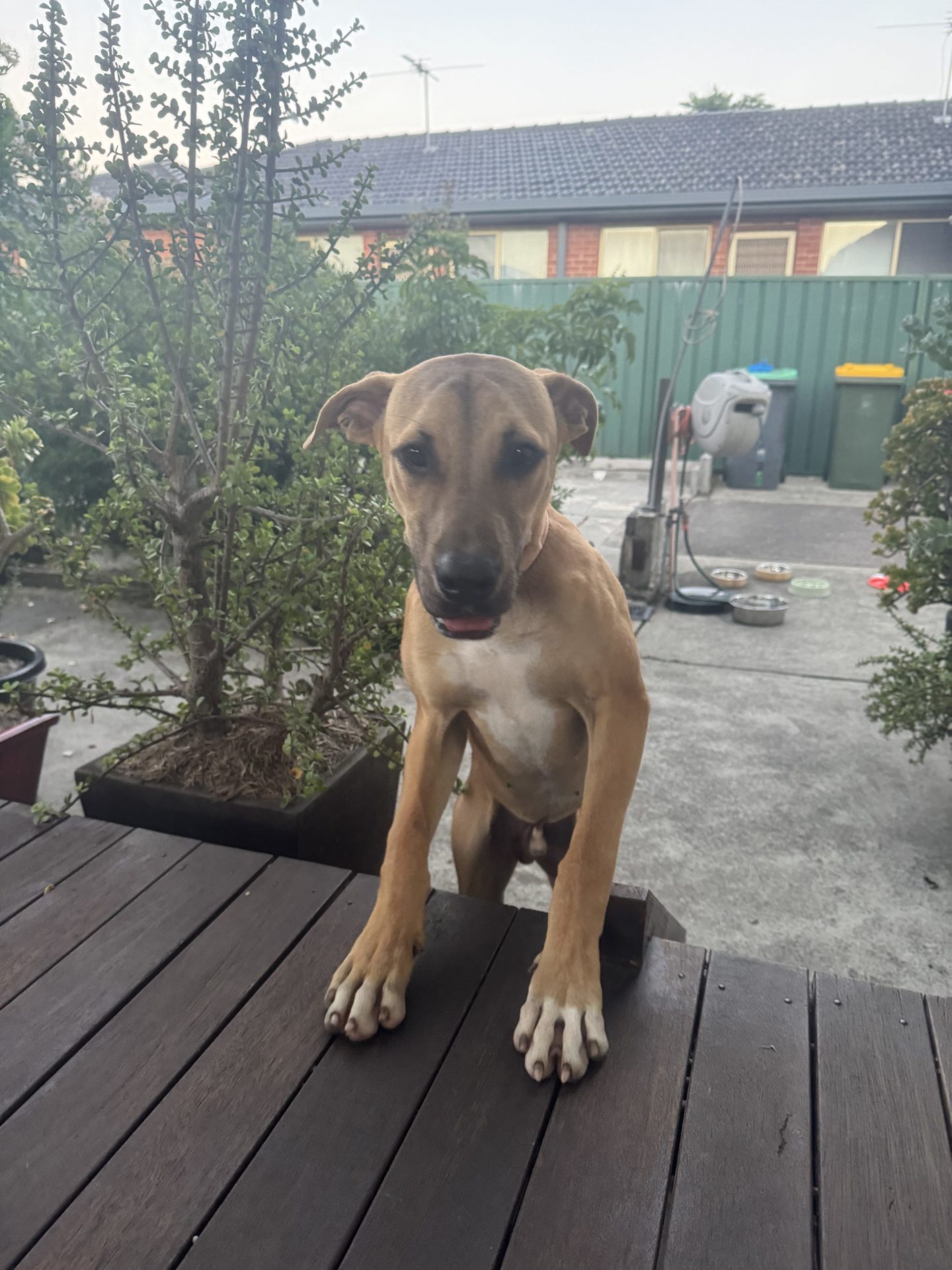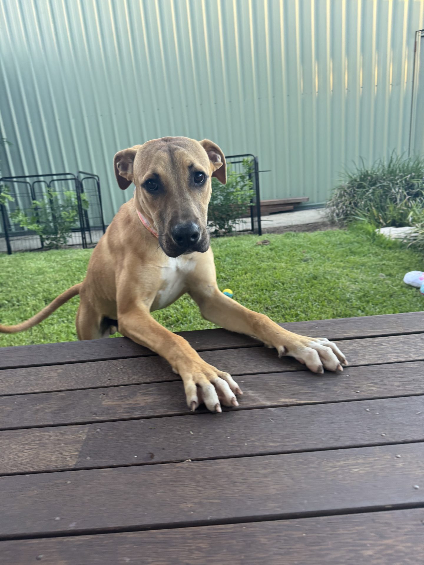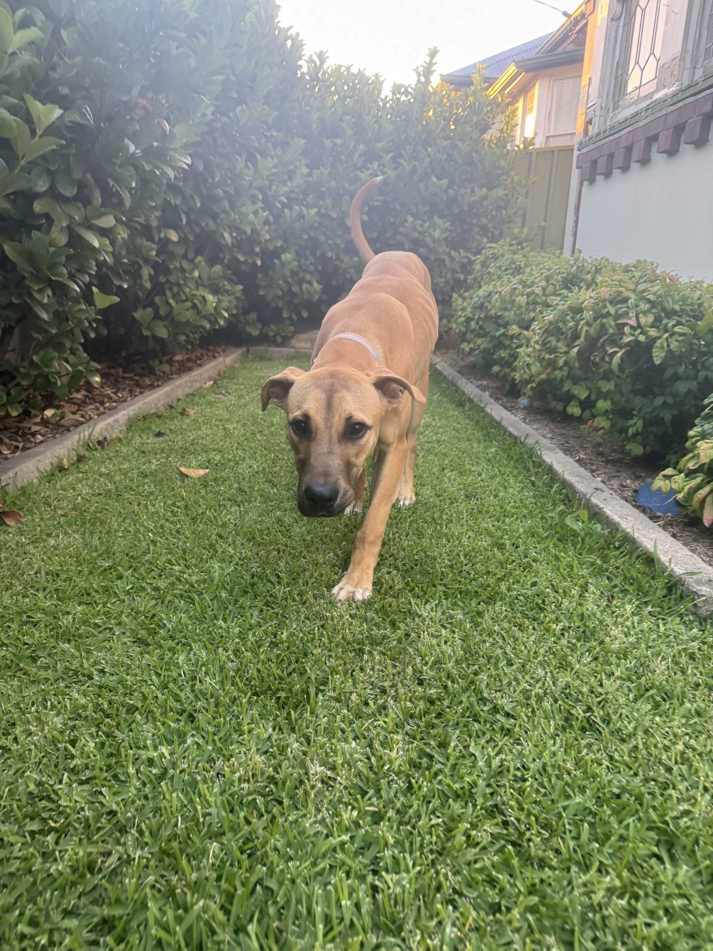My Ideal Home: Would love a nice big back yard, secured fences. He would love to be part of a family, he likes kids (the tail starts up straight away). Was previously with a family with a toddler, however given his size older kids may be more appropriate.
