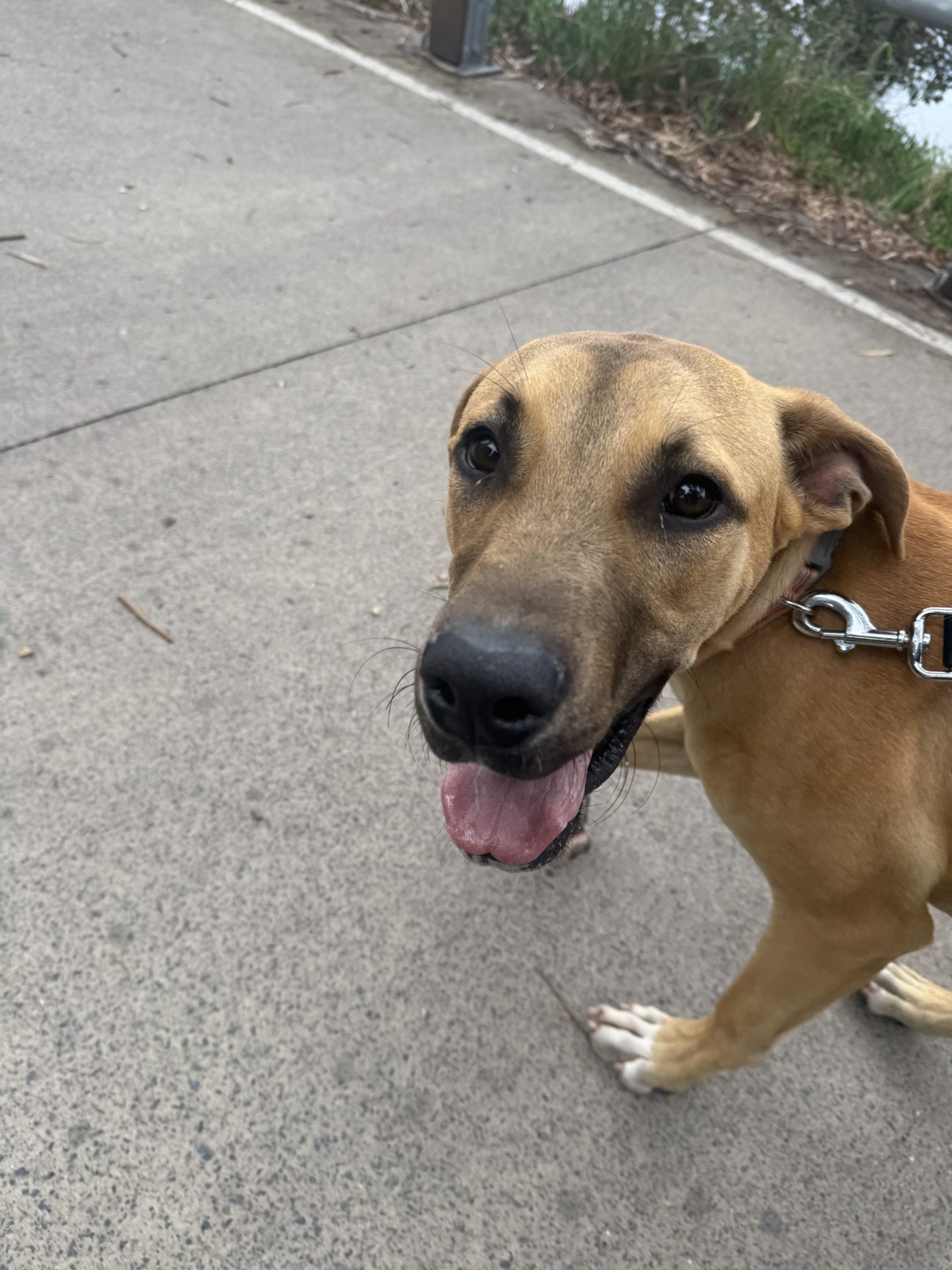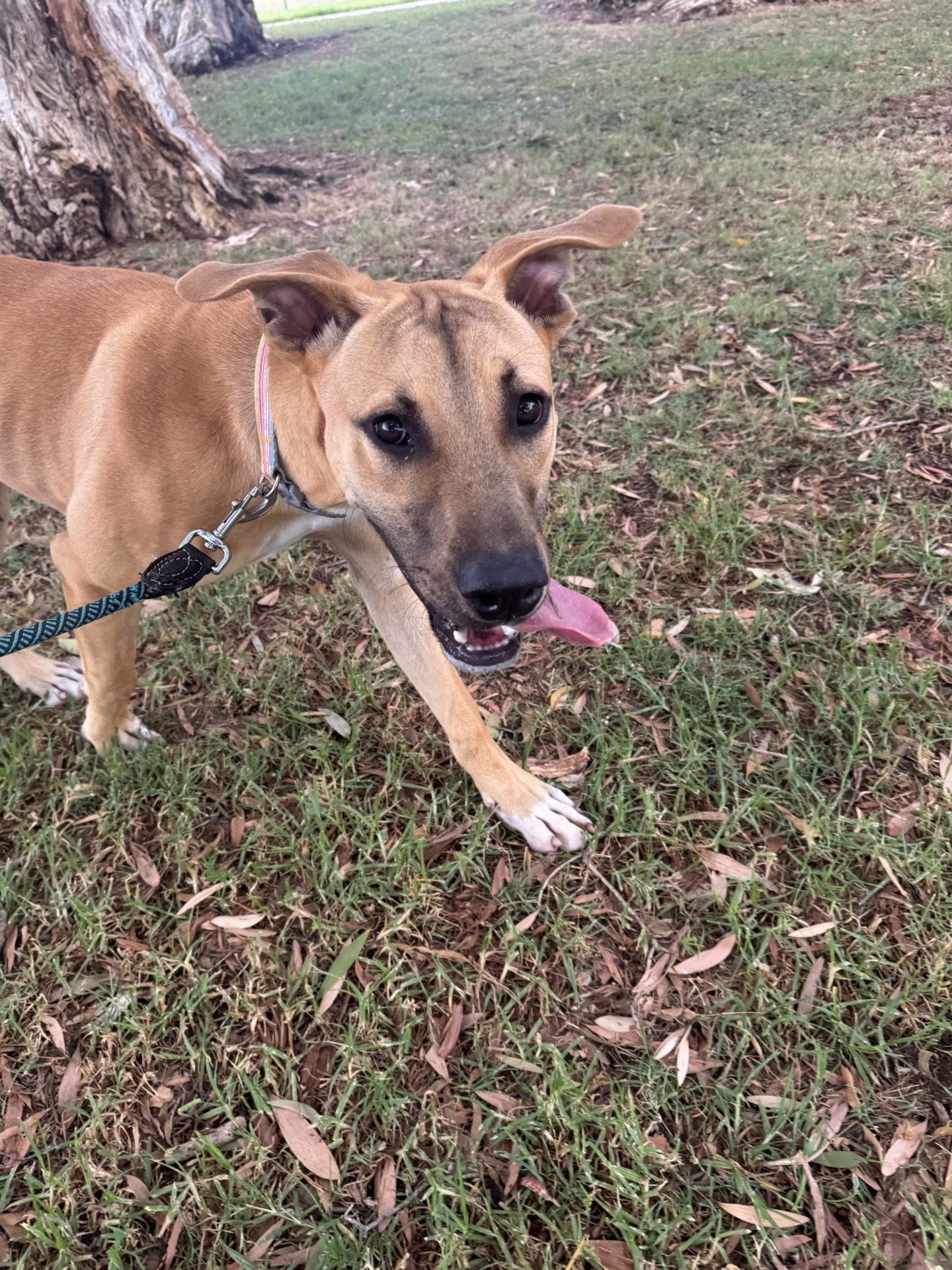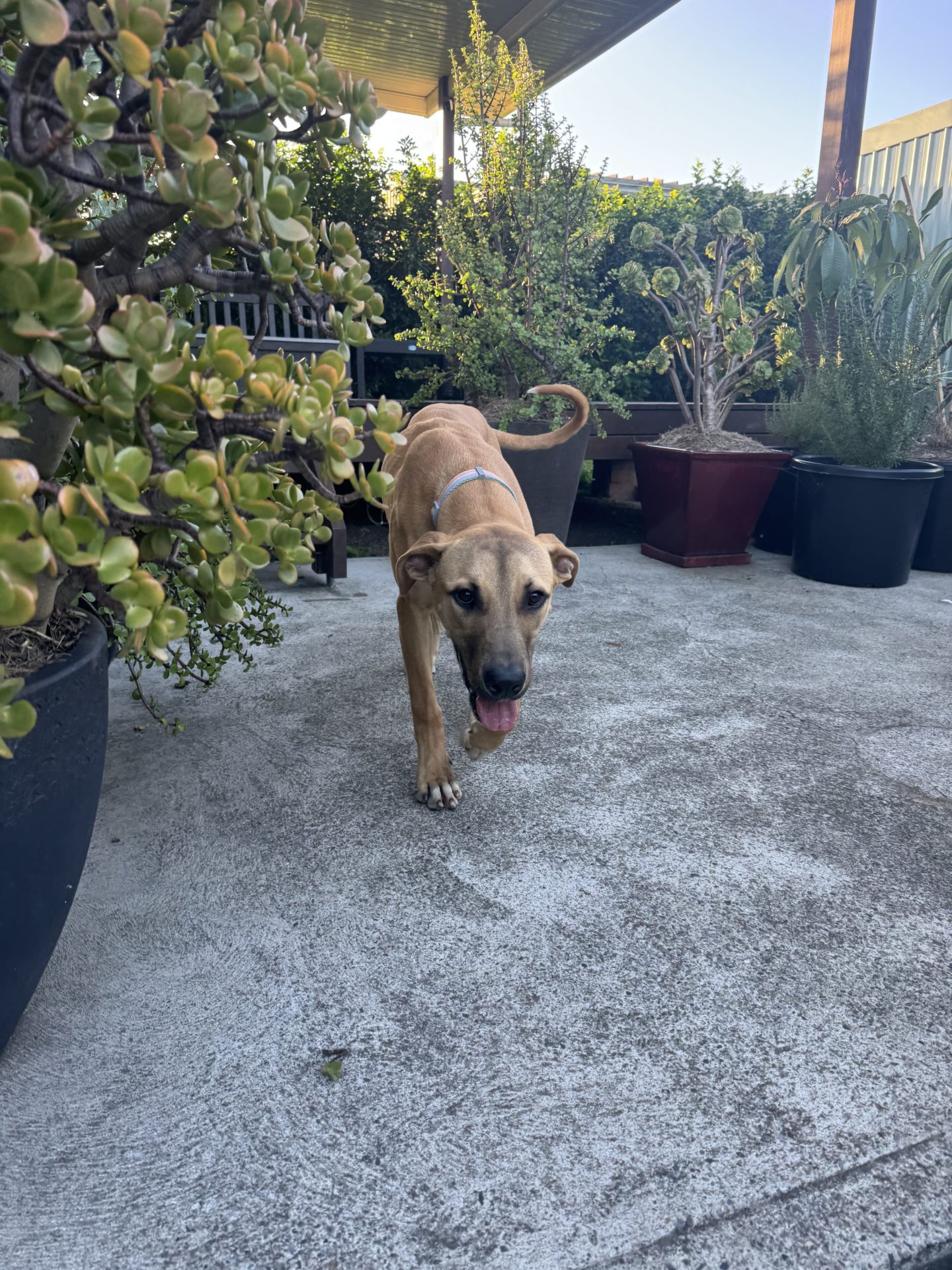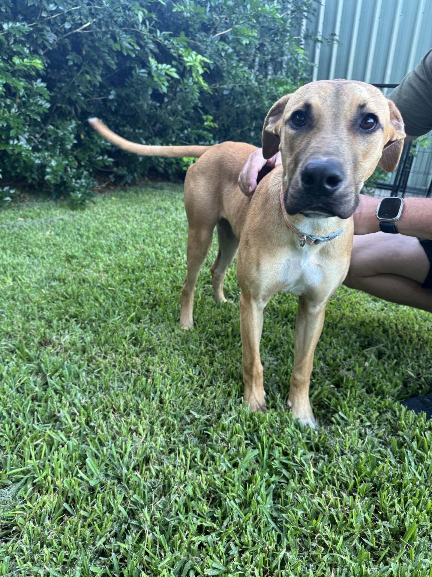 My Ideal Home: Would love a nice big back yard, secured fences. He would love to be part of a family, he likes kids (the tail starts up straight away). Was previously with a family with a toddler, however given his size older kids may be more appropriate.