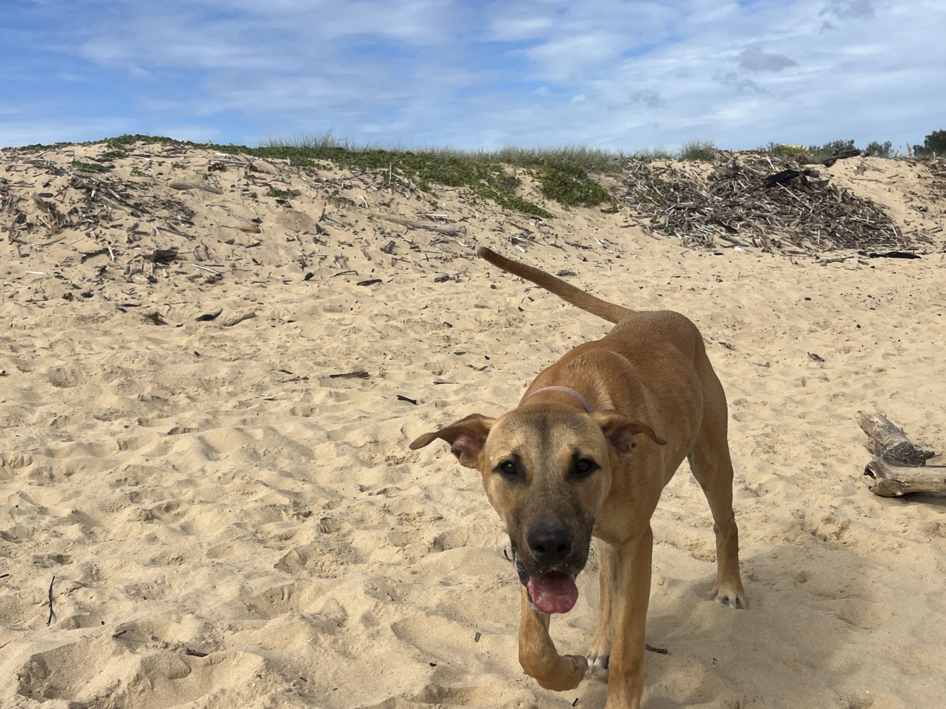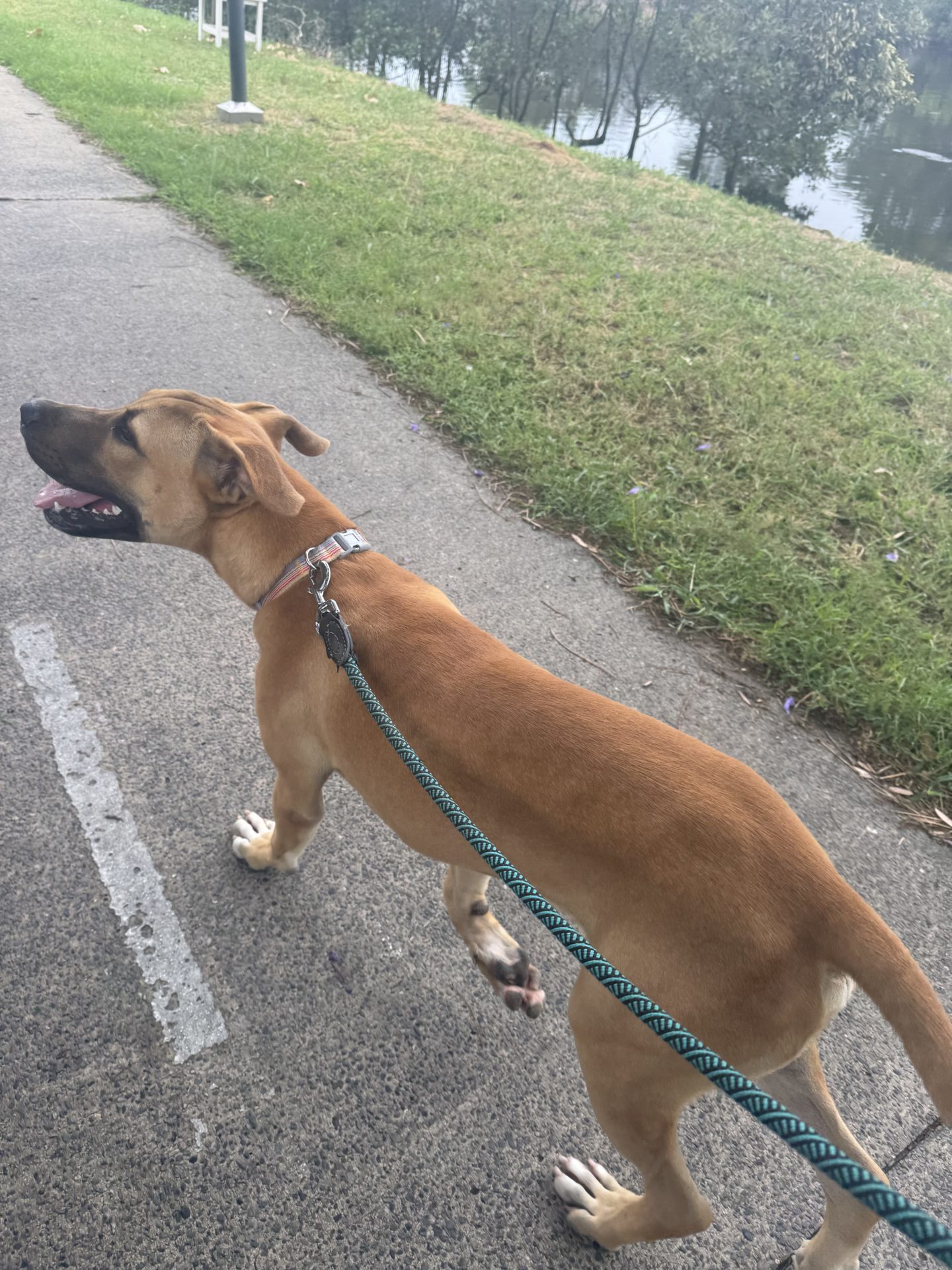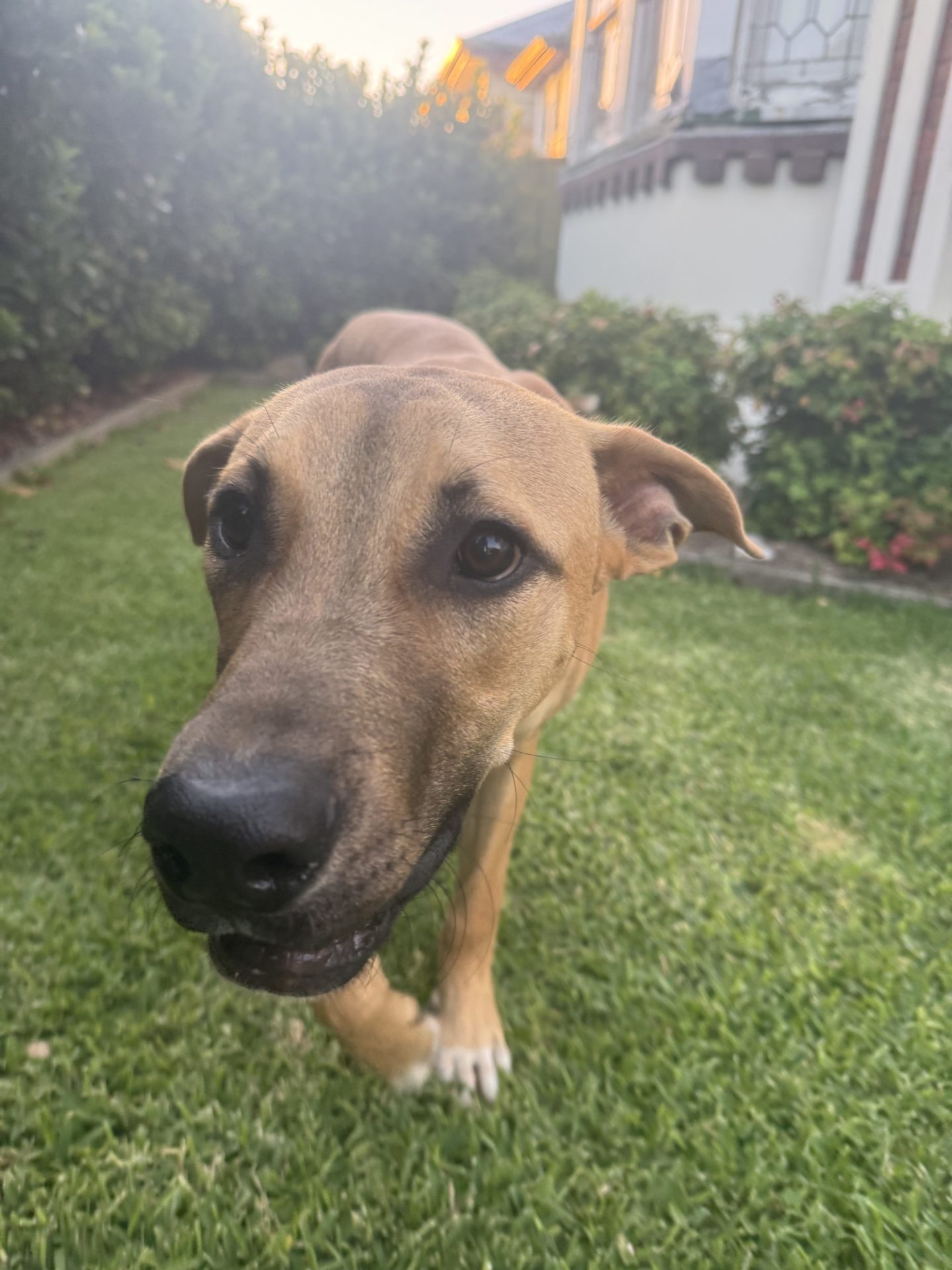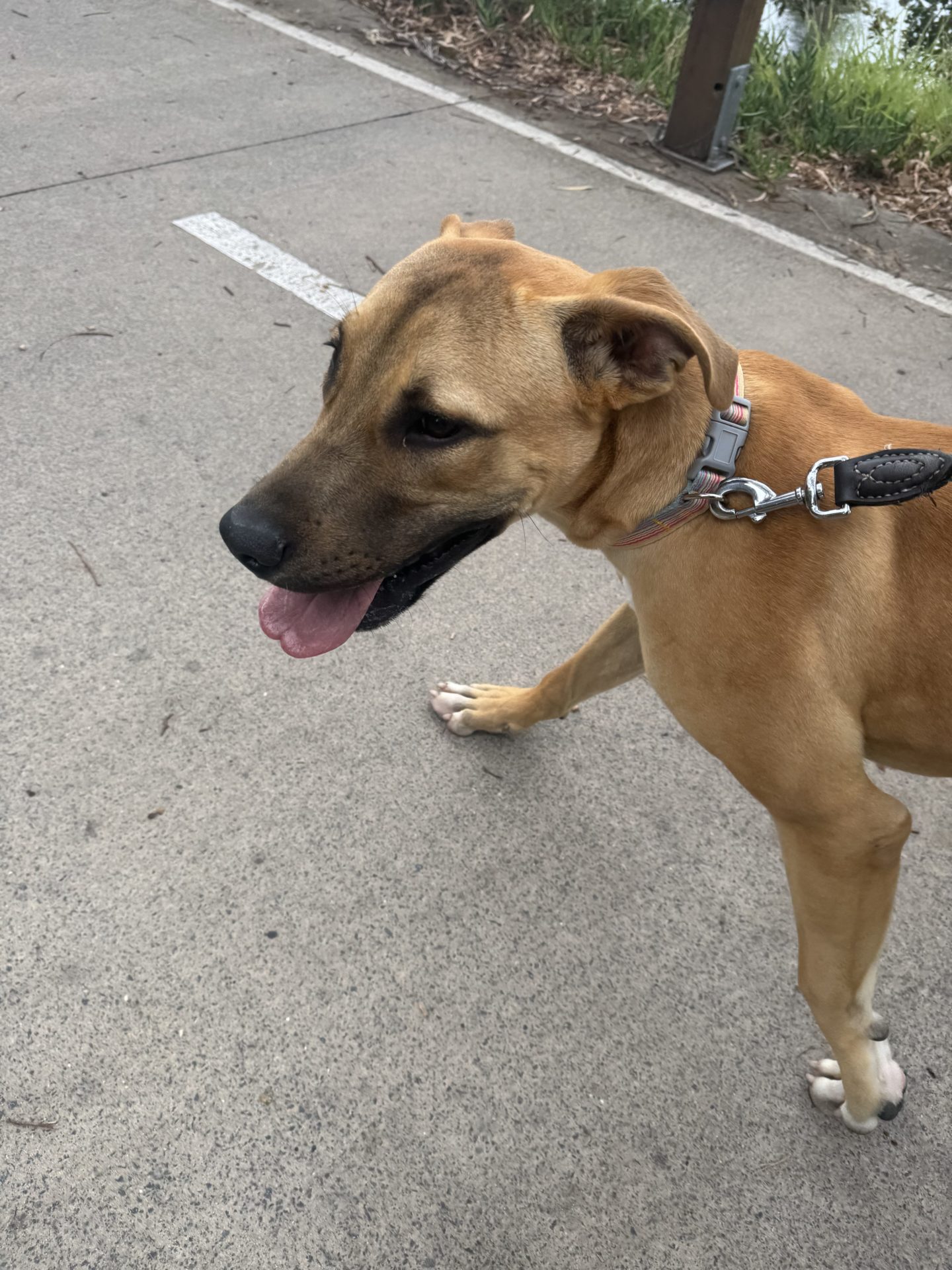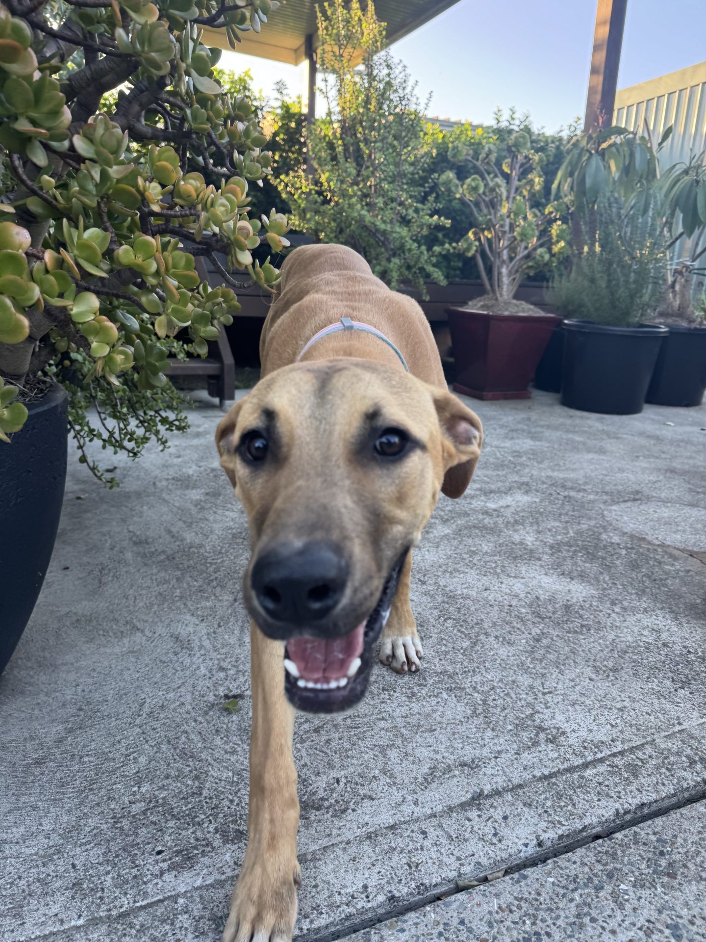 My Ideal Home: Would love a nice big back yard, secured fences. He would love to be part of a family, he likes kids (the tail starts up straight away). Was previously with a family with a toddler, however given his size older kids may be more appropriate.