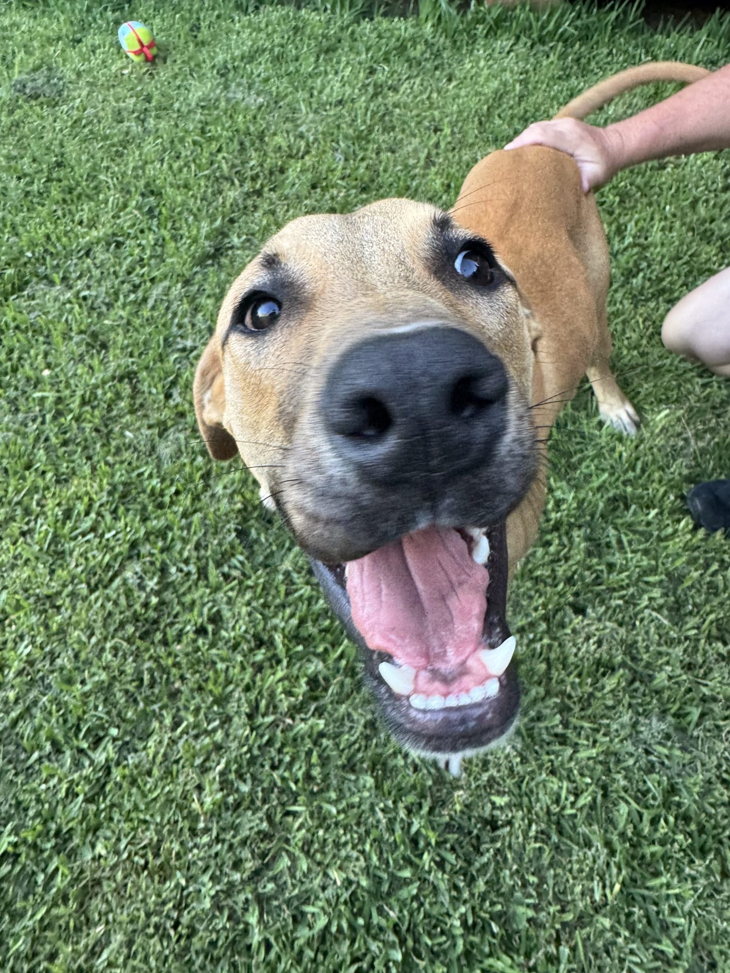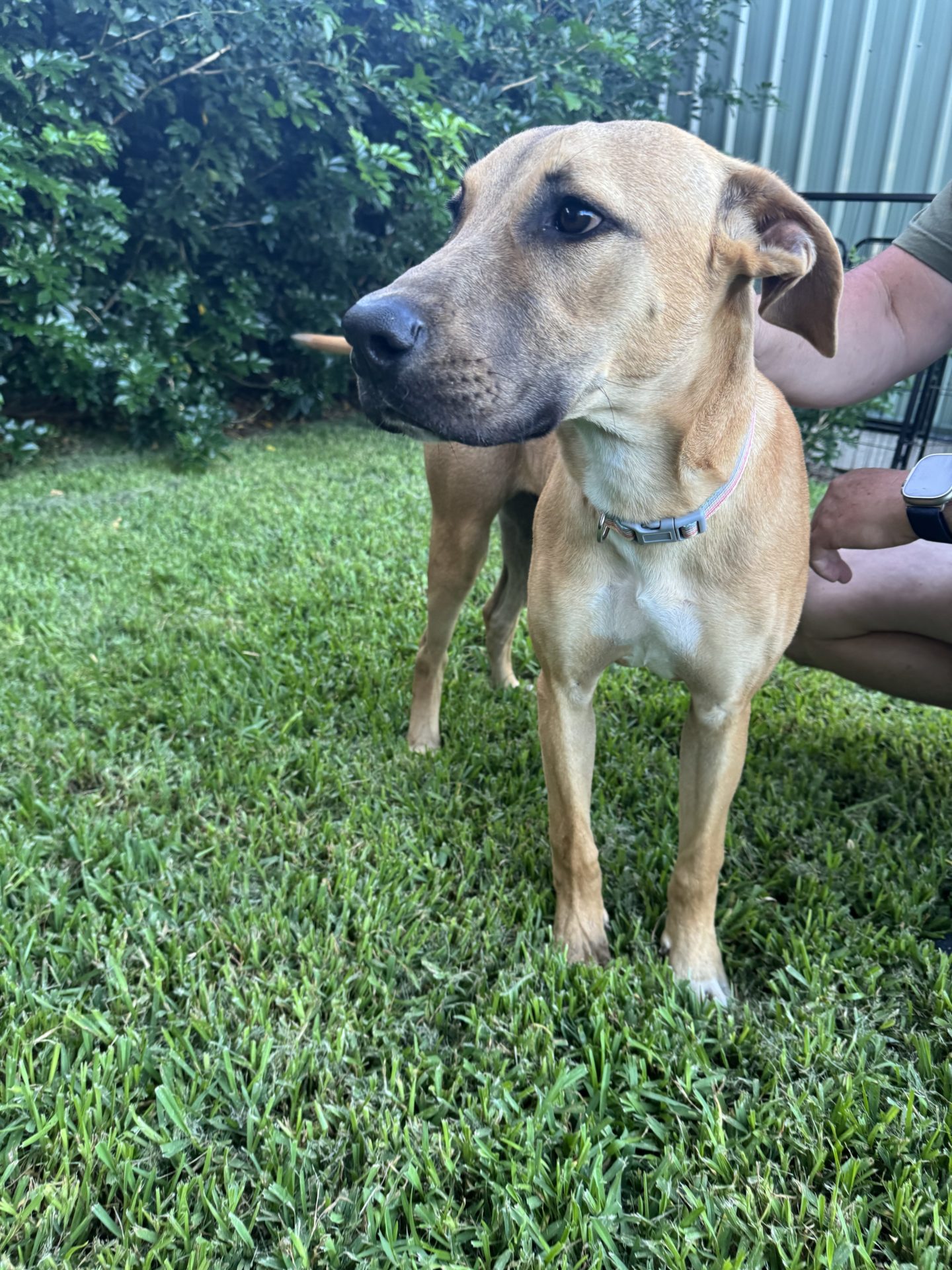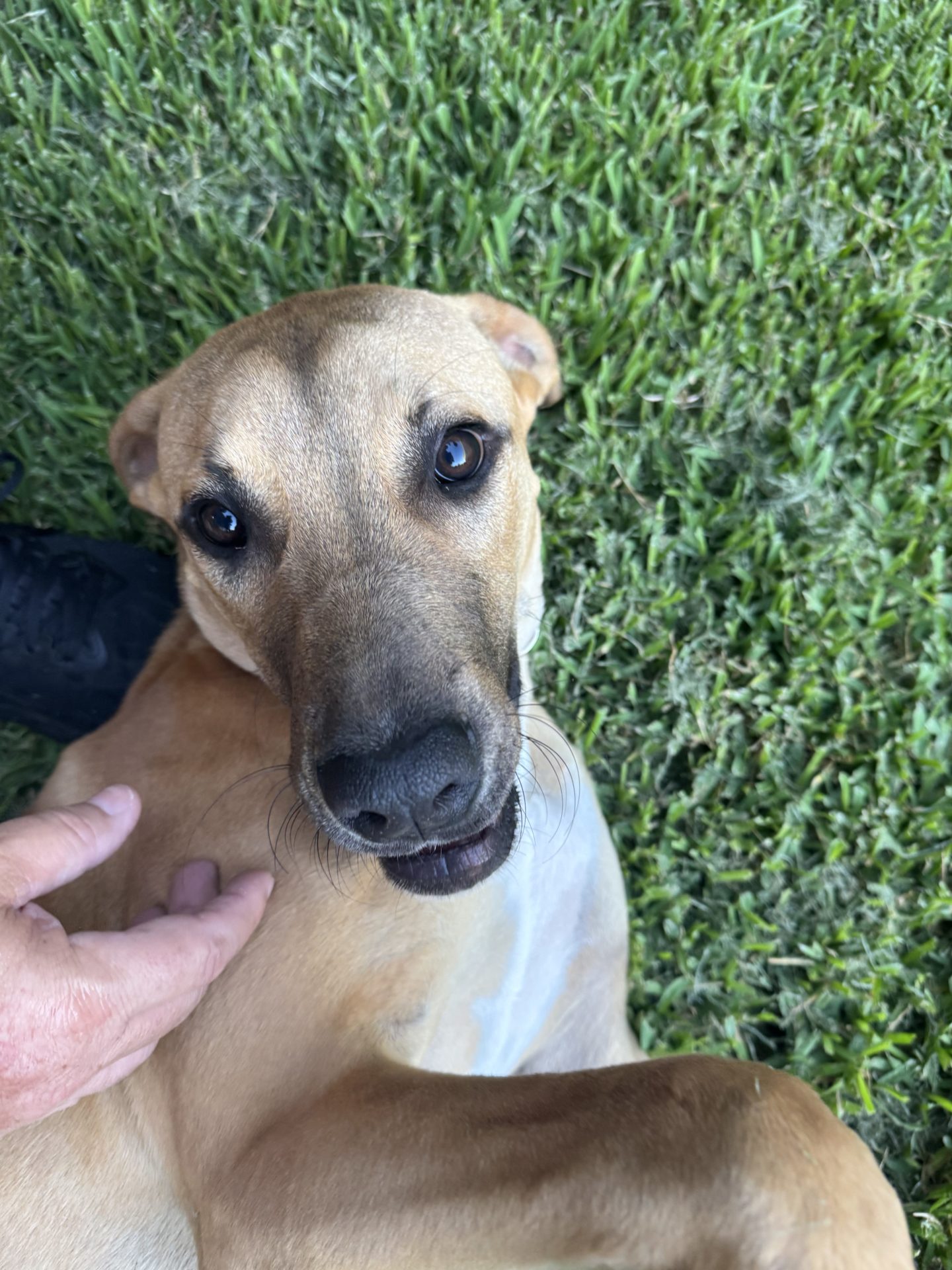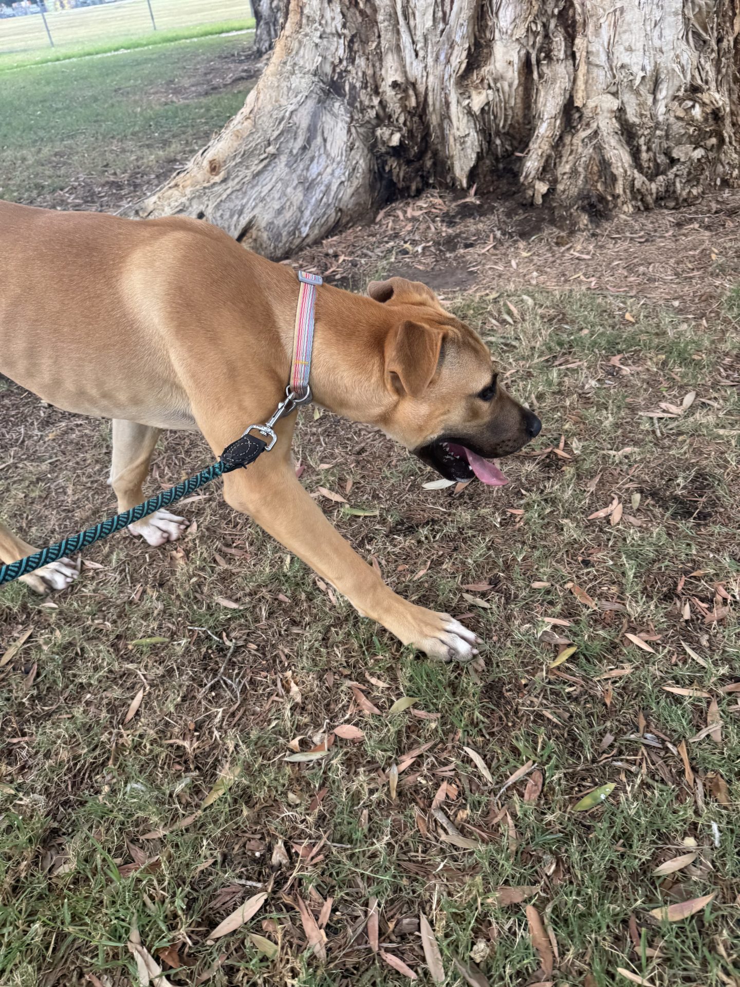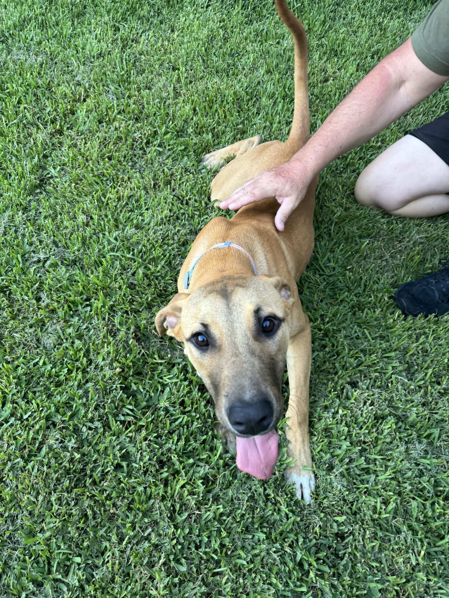 My Ideal Home: Would love a nice big back yard, secured fences. He would love to be part of a family, he likes kids (the tail starts up straight away). Was previously with a family with a toddler, however given his size older kids may be more appropriate.
