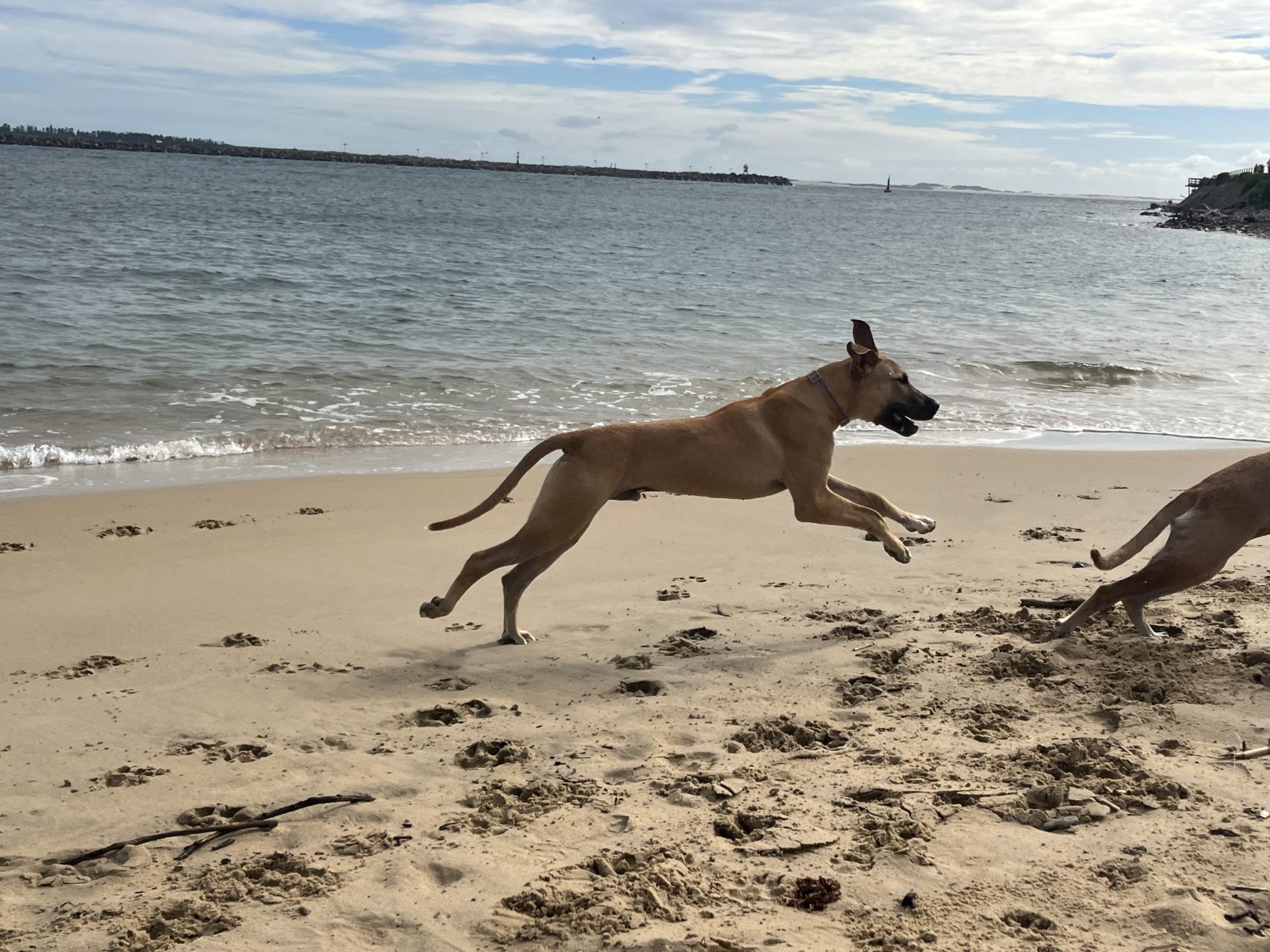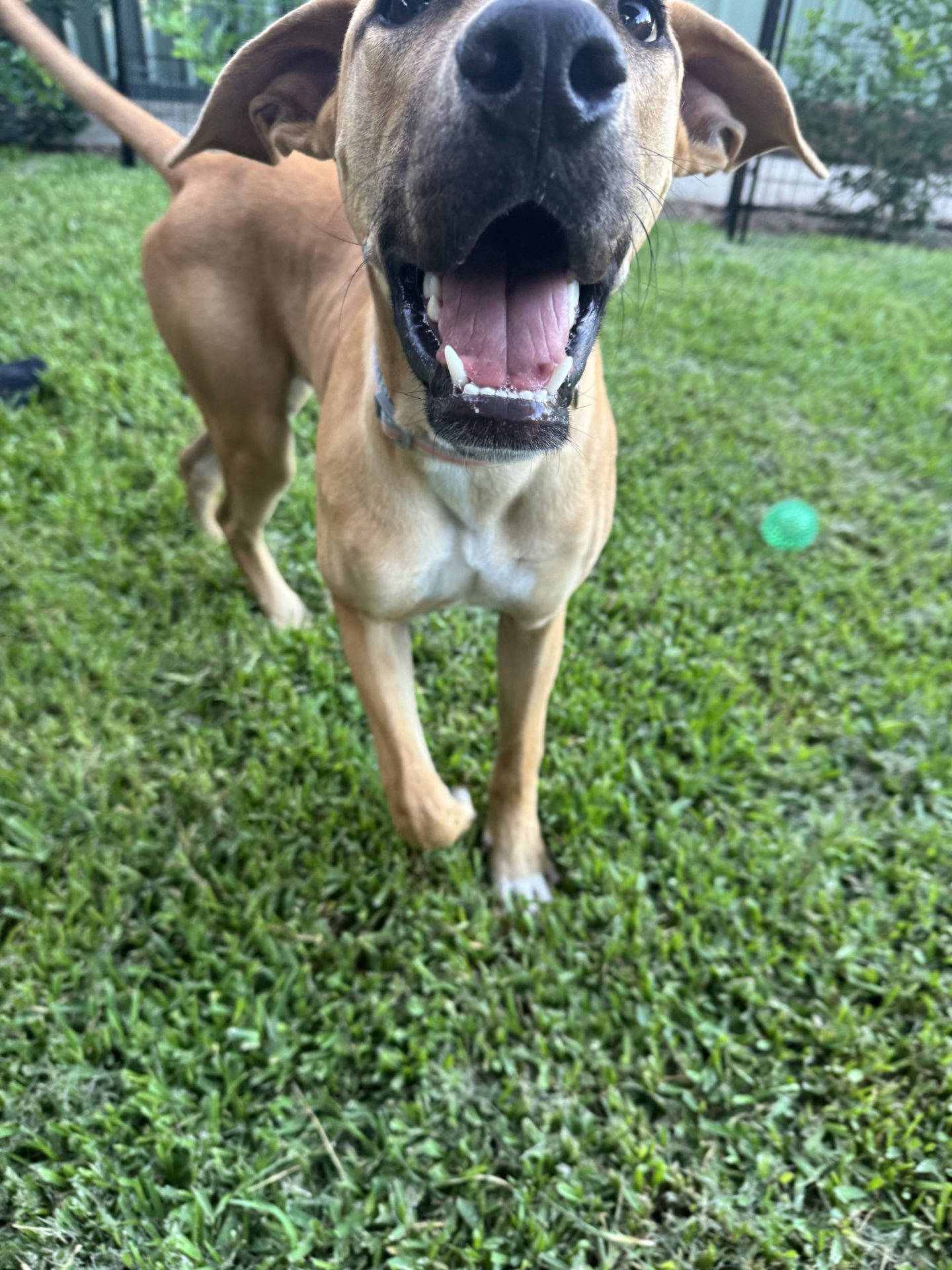 When the right conditions are there (nice big oval, soft grass and other doggy’s ready to play) the zoomies come big and clumsy. He has a playful nature, is gentle with smaller dogs.