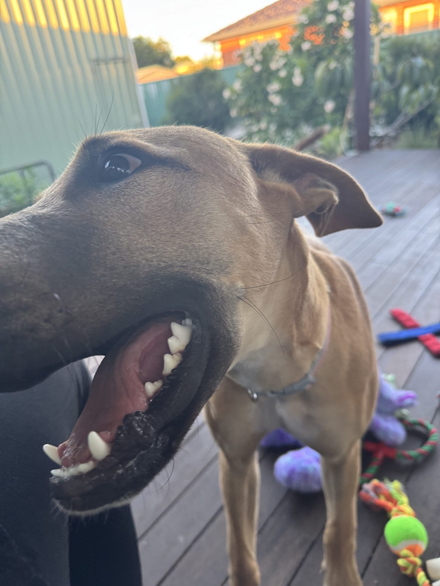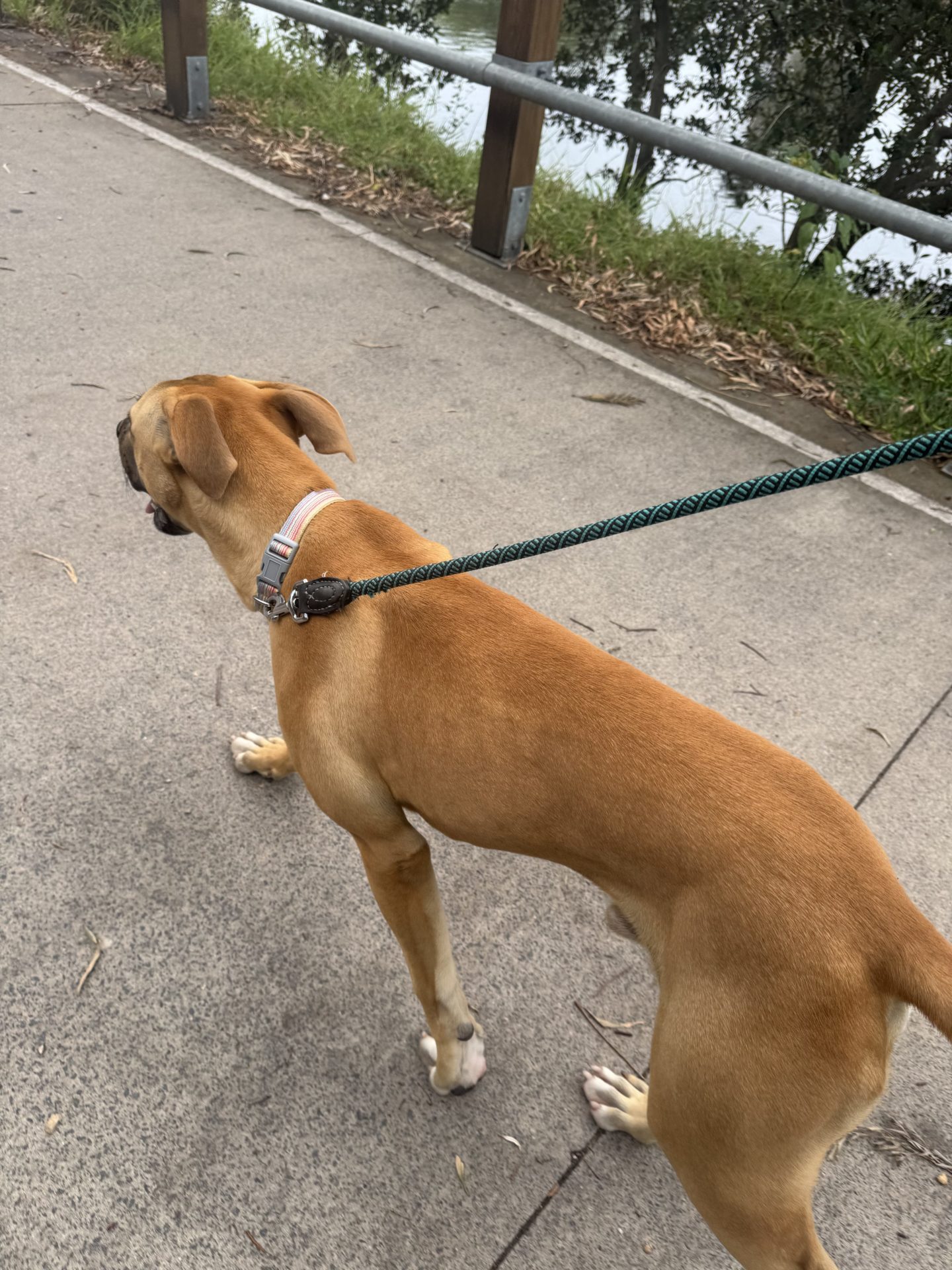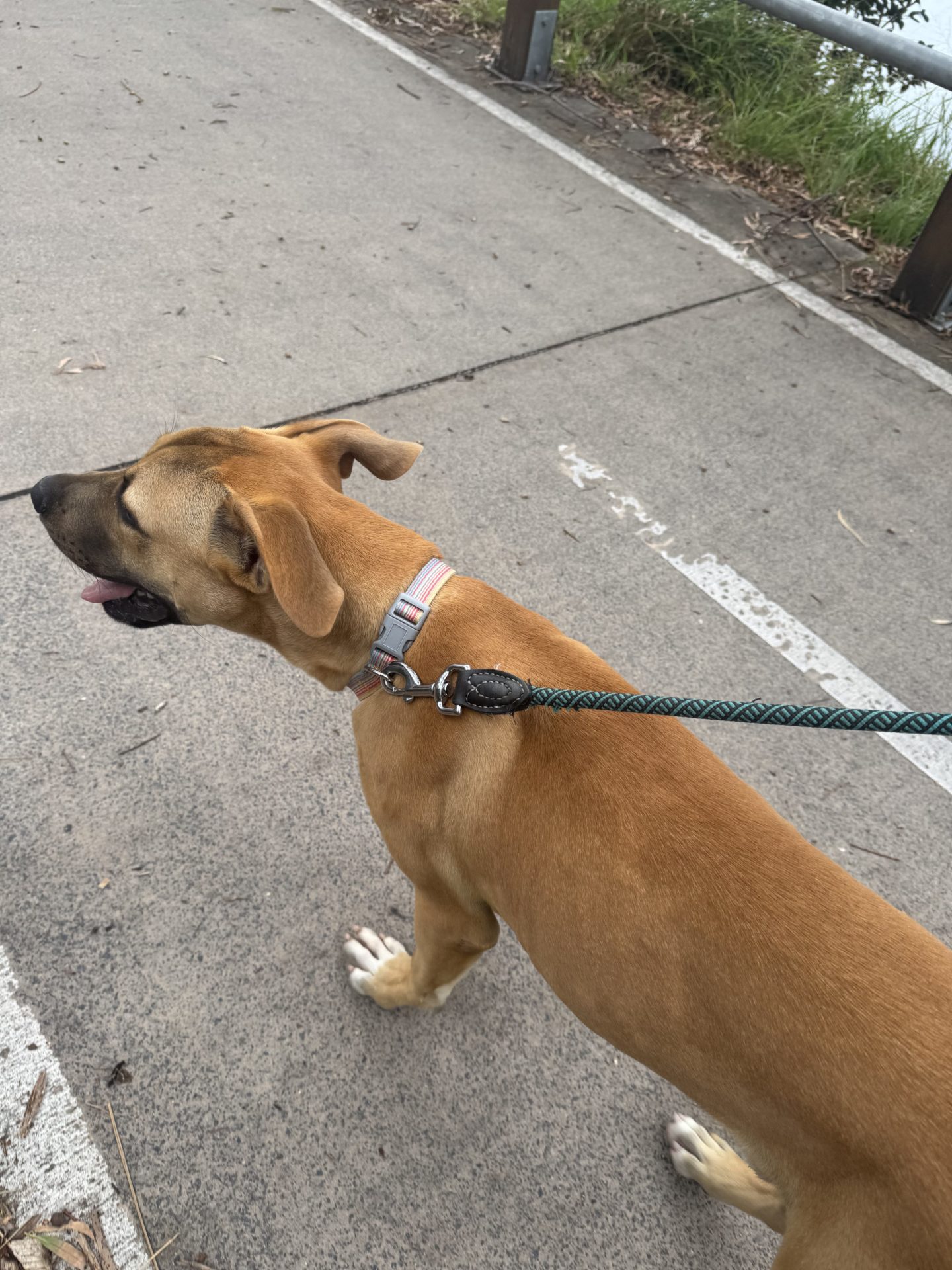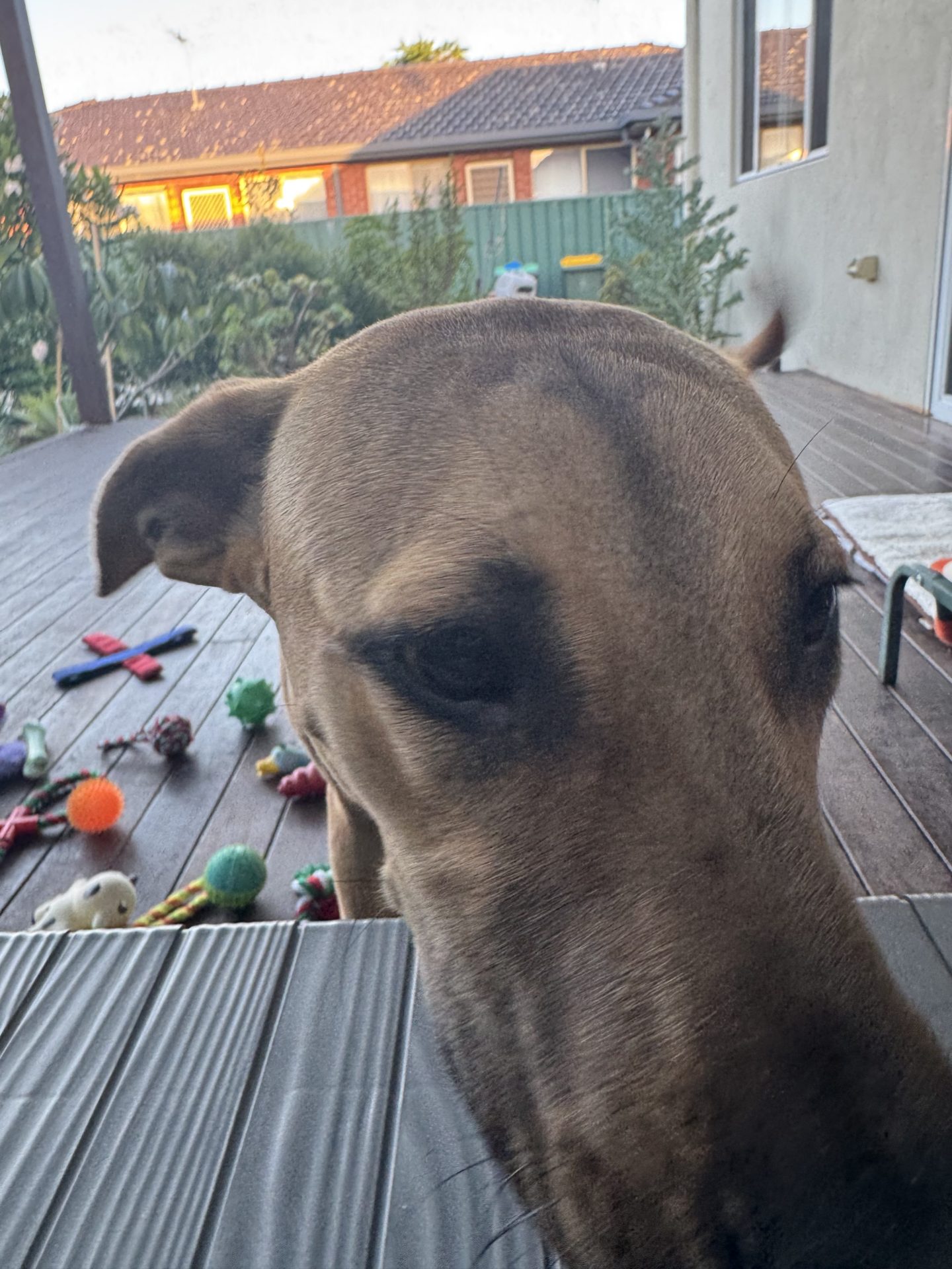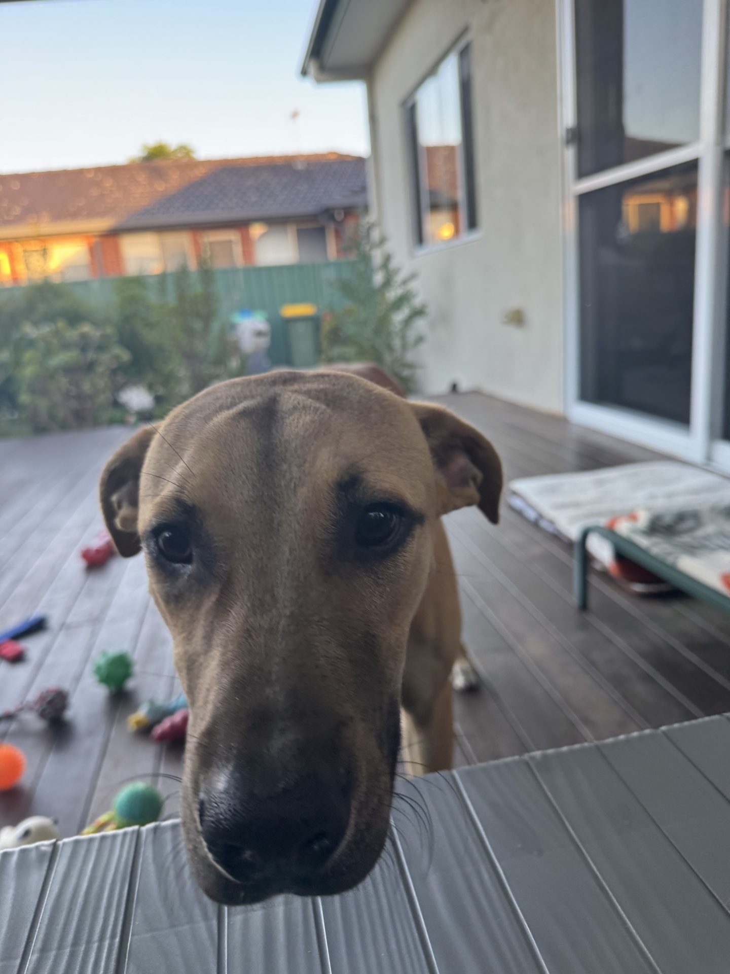 Quite happy lazing on the back deck, enjoys walks around the local community.