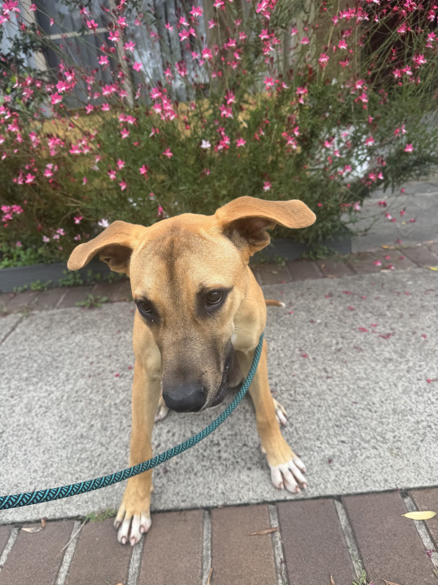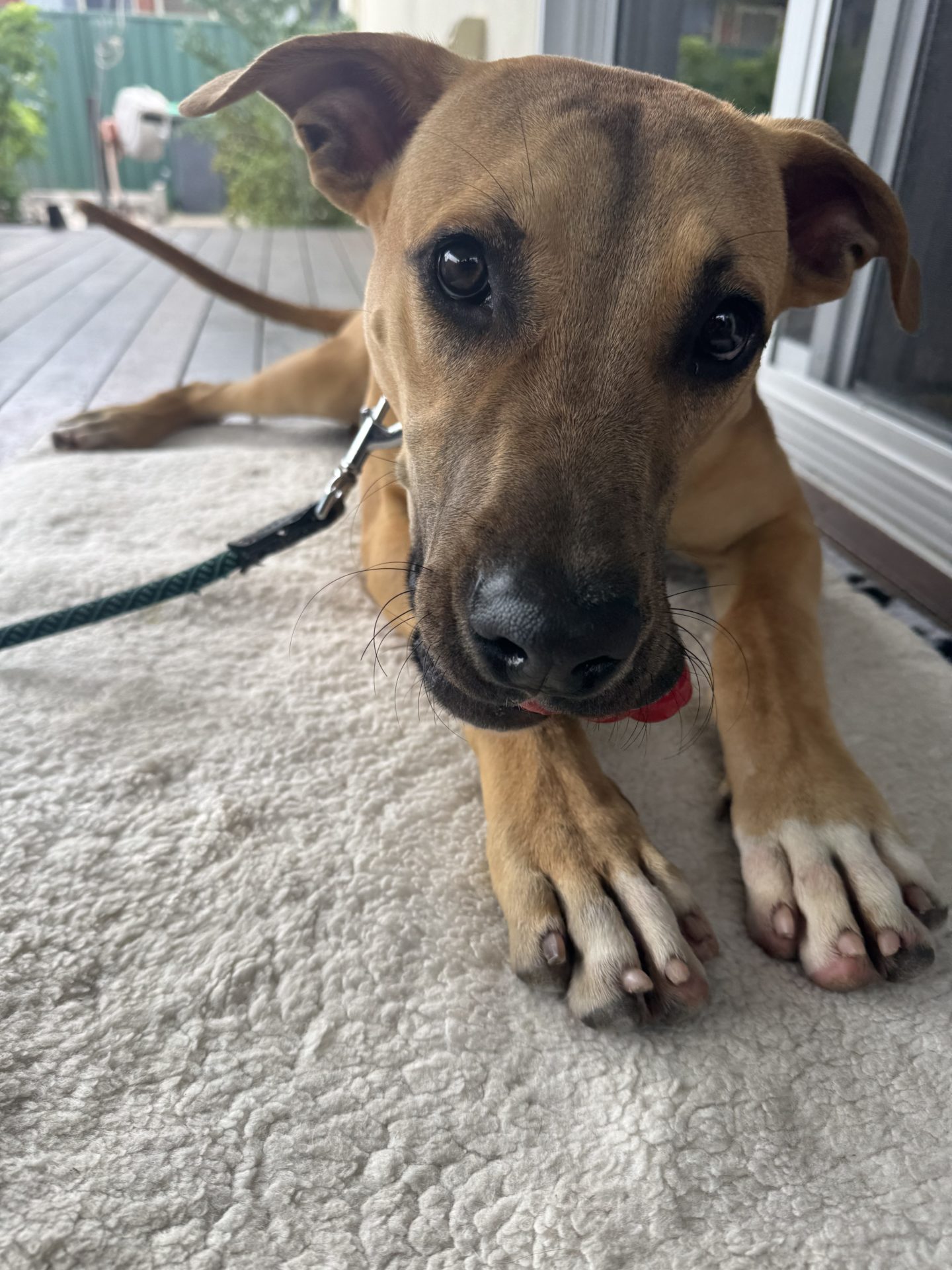 All About Me and My Unique Personality: Artie is a youthful pup, aged approximately 7 months. He is 25kgs (just making his a large breed). He loves the company of people, attention, and to be close to household activities. Likes listening to everything going on and being around the action. He is a giver, loves to show his affection by plonking his head in your lap.