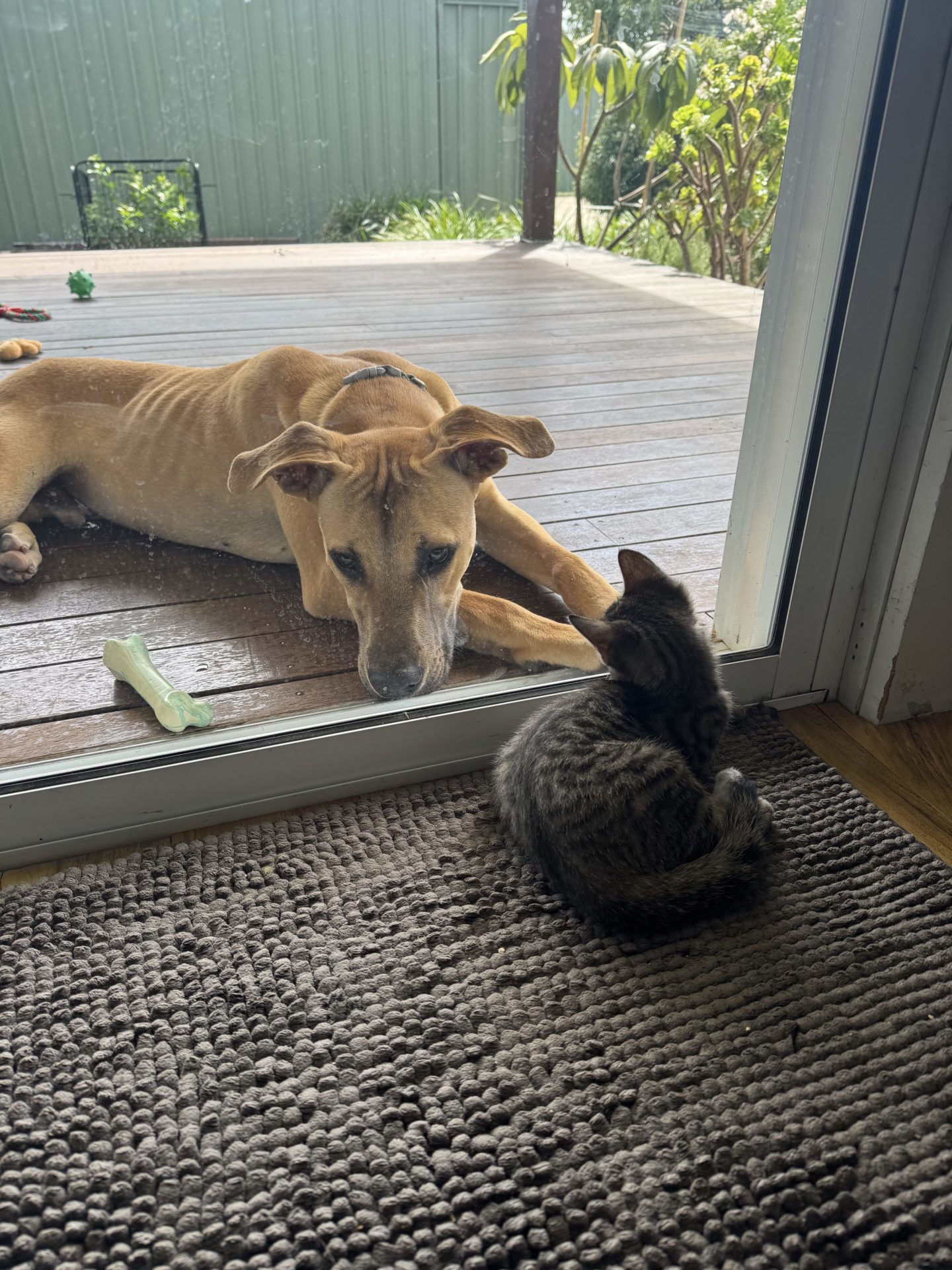 I have meet some kittens in foster care through a screen and window. Initially I was like woah, uncertain, but now on both sides curiosity has taken over and I have settled. I watch the kitten show whilst I put on a performance with my wiggly tail. I also just like to be near them.