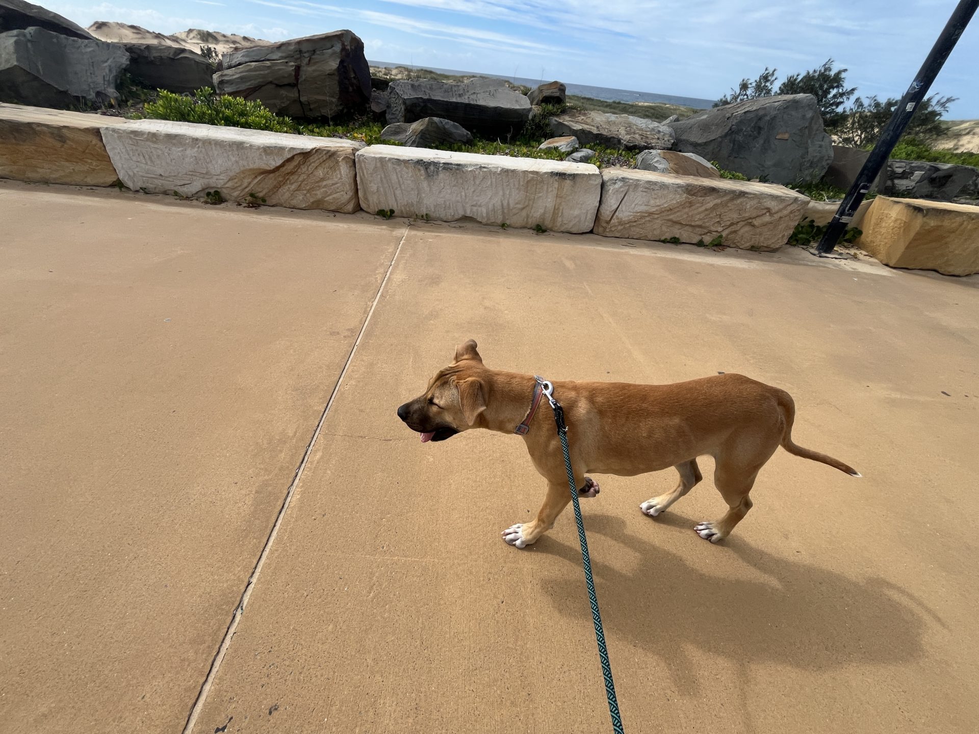 He has been to the beach, is good for new adventures.
