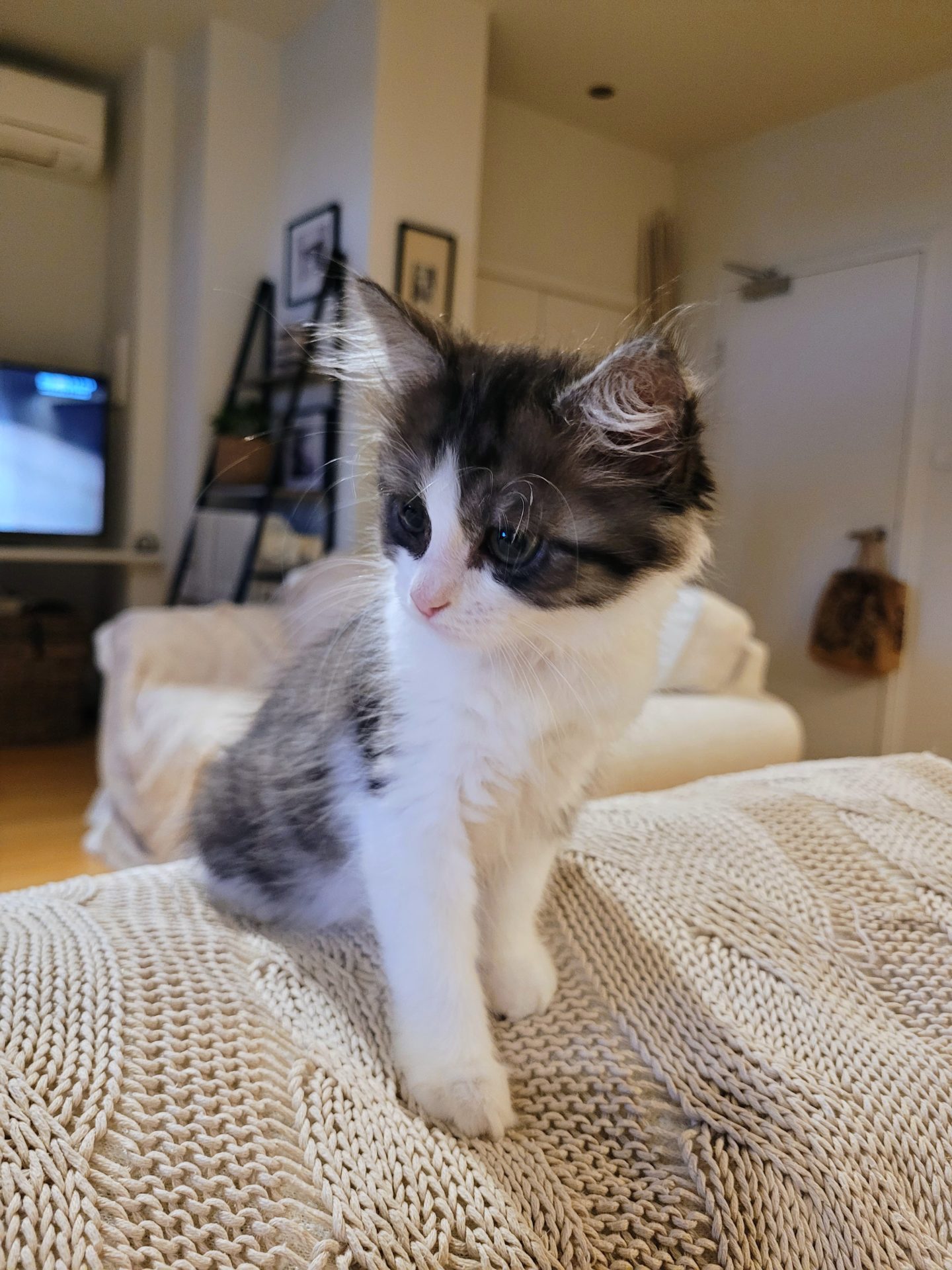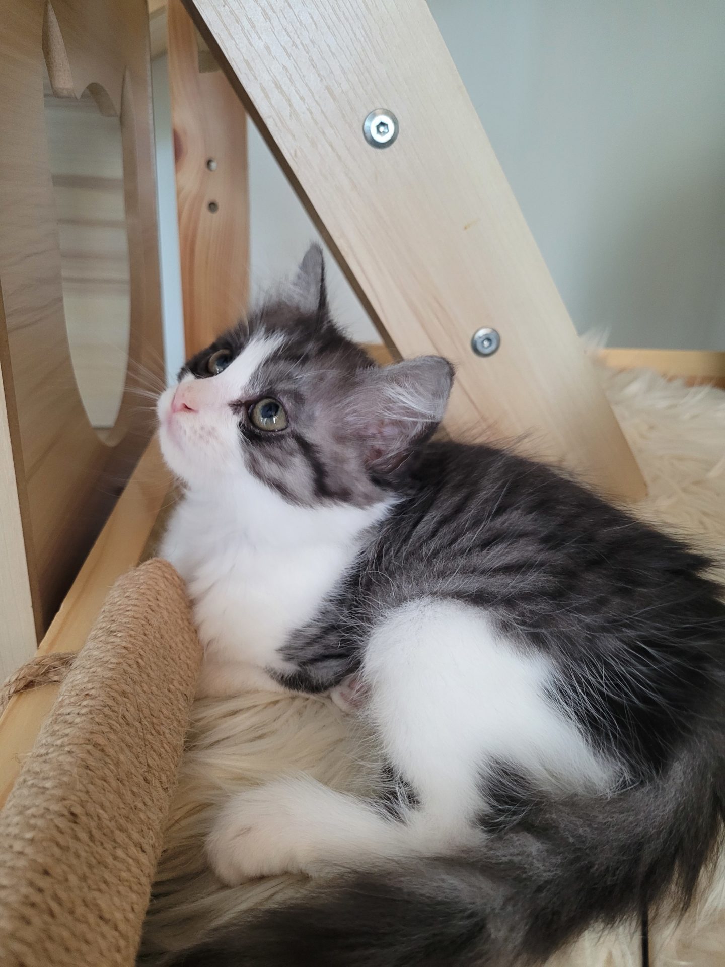 All About Me and My Unique Personality: Meet the divine baby Cherry. She is as sweet as her name. Extremely pretty with her masked markings and silky coat. Quite chatty when shes demanding some food and is a great eater. Full of energy as expected with her brother Guinness and foster friend Winter who are both pictured. Purrs with happiness when she is picked up. Just a delightful little cherub. I am yet to have my vet work completed once my weight is up. Will be ready for my new home around 20-22nd January.