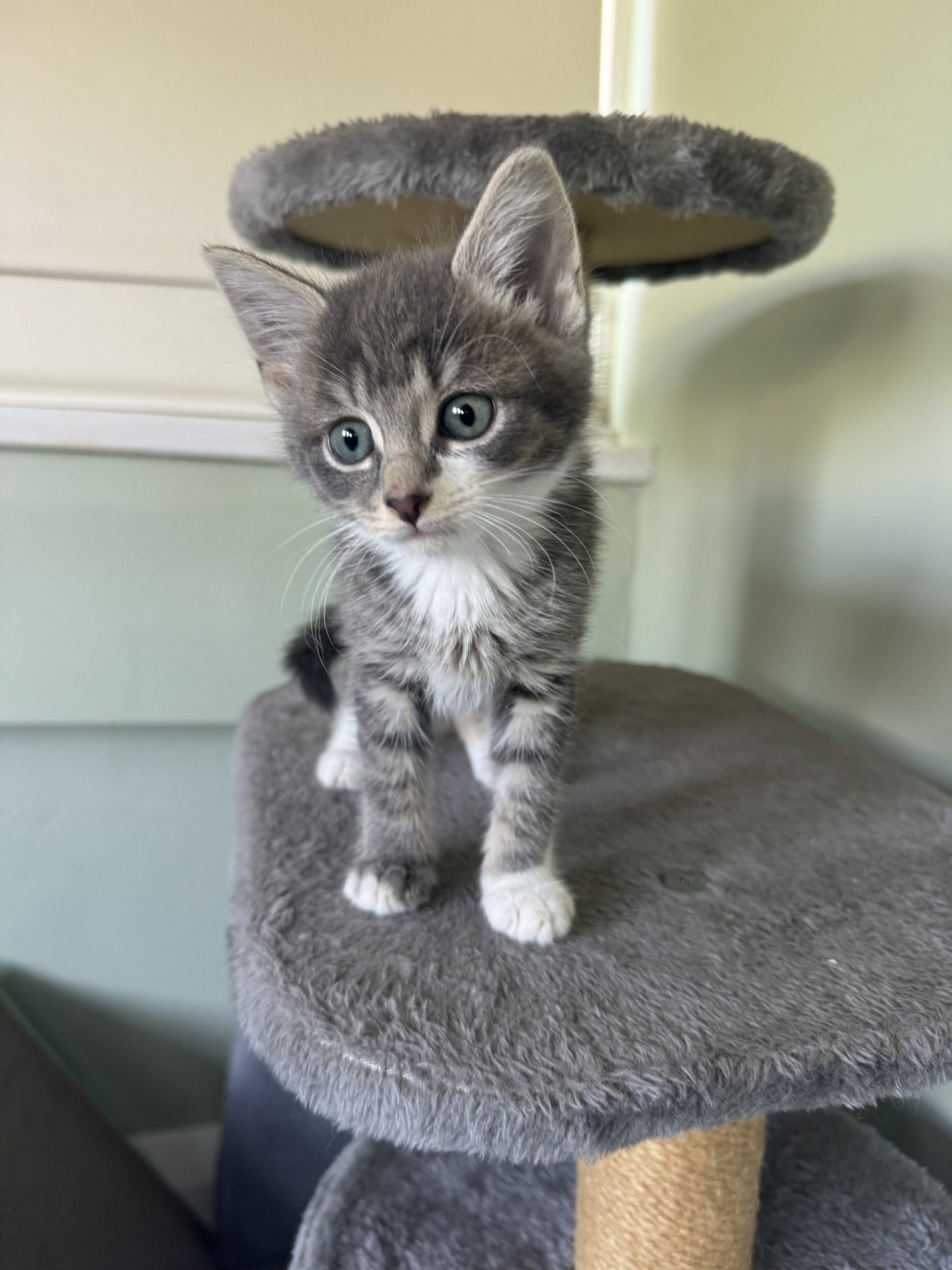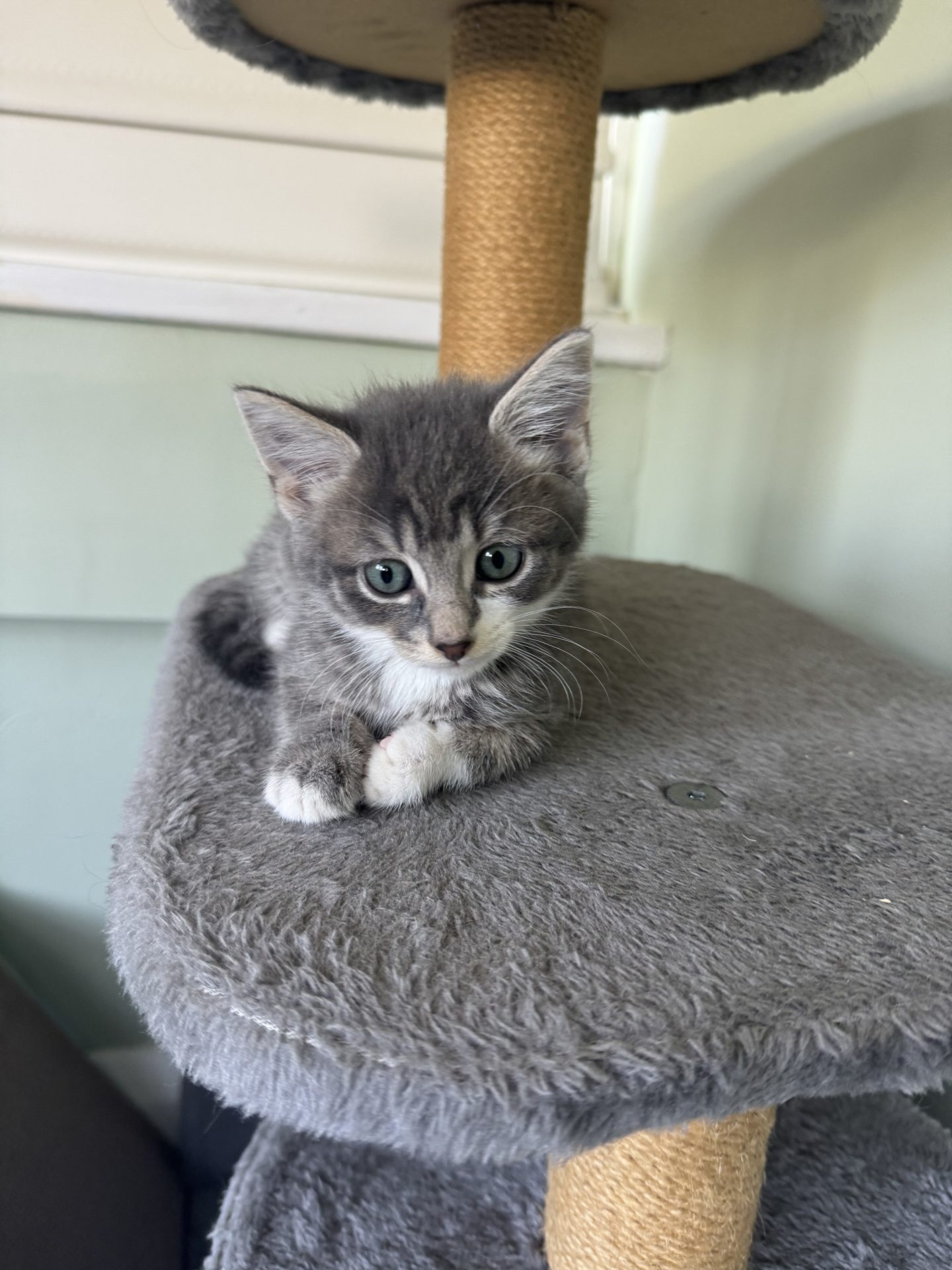 All About Me and My Unique Personality: I am a young energetic kitten. I have a few favourite places, the tunnel and cave. I like being in a cosy spot for my snooze times and often tuck inside a cave. I am enjoying playing with my siblings, climbing towers, chasing, punching leaping and giving it my all. Clint likes teaser toys, ribbons and wrestling, dishing out bunny kicks.