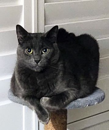 Colin is a blue-grey-black, medium-haired gentleman of 6½ years who believes snuggles are a basic human right. He’s chunky, charming, and just a little bit bossy — the type who will stare deeply into your soul if dinner is five minutes late, then casually knock something off the counter to make his point. He loves adults, other cats, dogs, and cozy firesides… but young children? Let’s just say he doesn't cope at all and will hide.