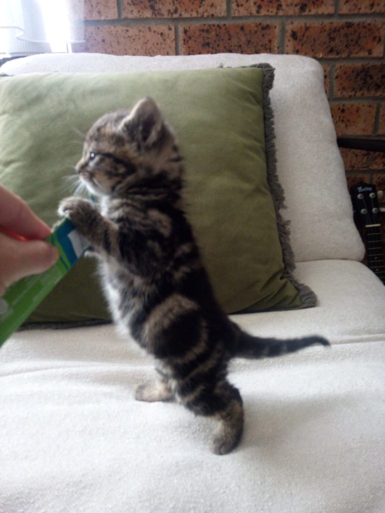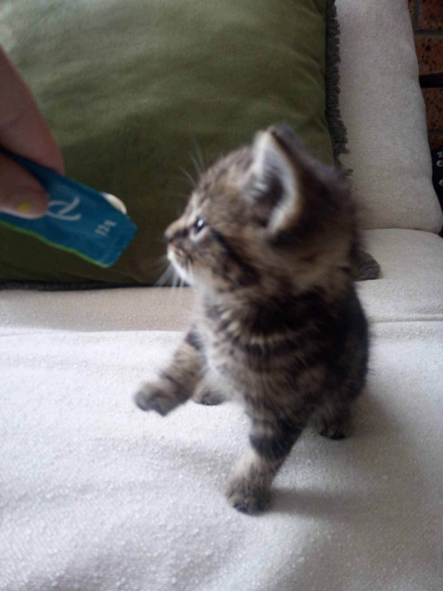 Preferred Human Interaction: Playful, chasing, kitten toys, cat tunnels, I like to cuddle for a sound sleep.