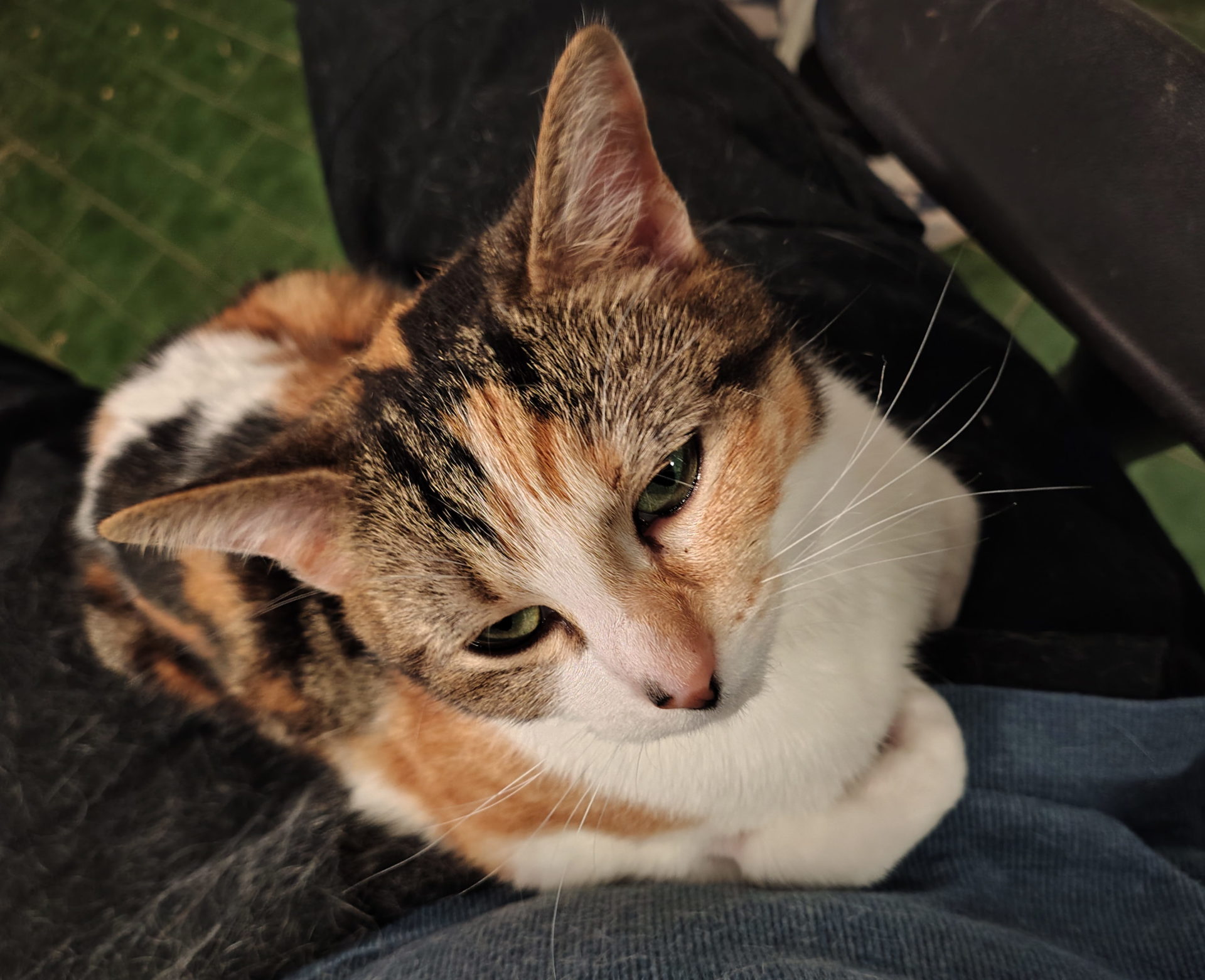 All About Me and My Unique Personality: DeeDee is a super affectionate cat. She loves, loves, loves attention. When you go to pick her up she turns it into a hug by putting her two front paws either side of your neck. Then if she gets the chance she will climb onto your shoulders and is happy to sit up there and rub against your face. When you sit she is happy in your lap. She just loves attention. She also has a very wet nose which for her is just normal. She is not really comfortable around other cats so would best suit someone after an only cat. Maybe she just doesn't want to share the attention with any others.