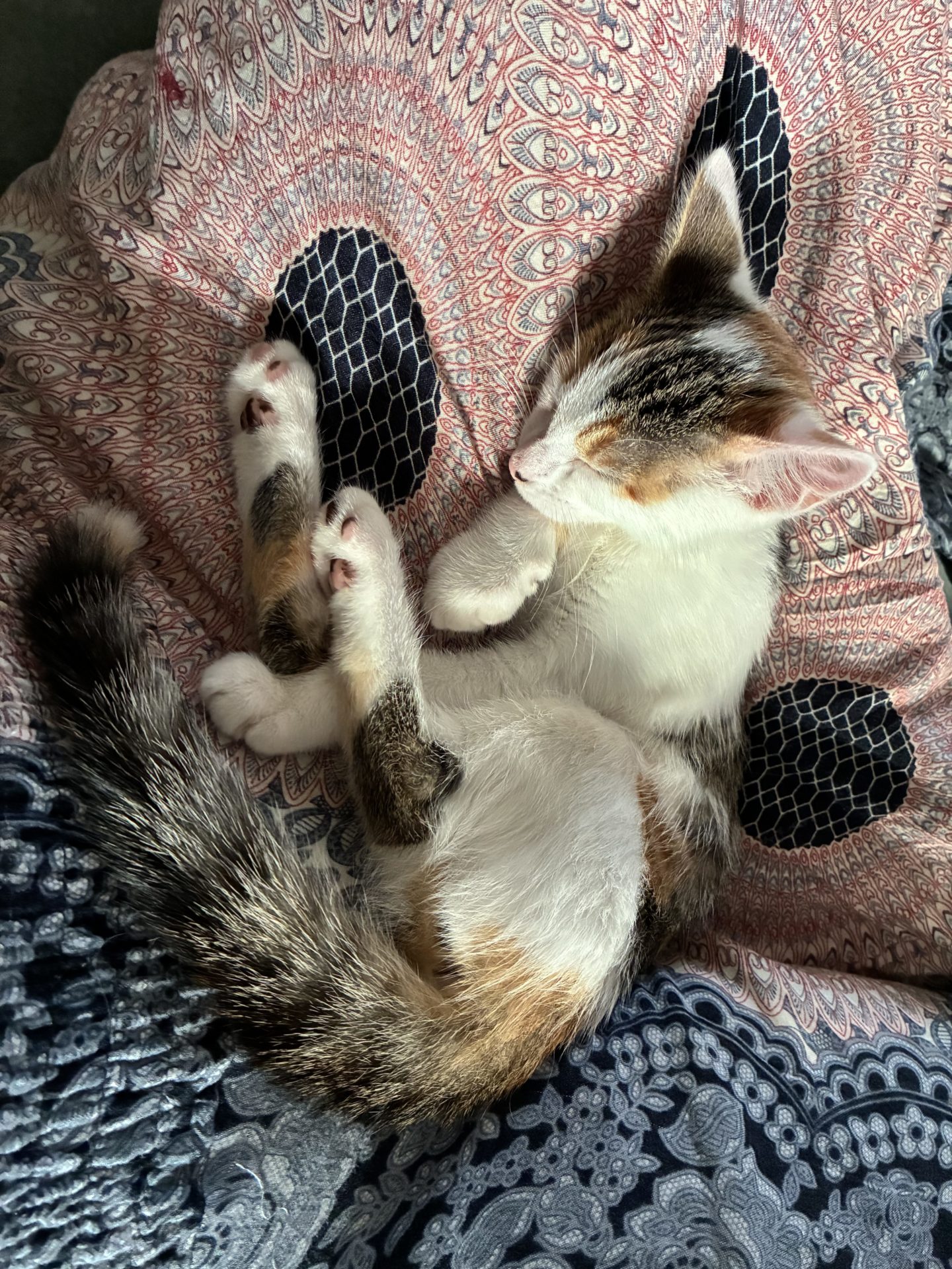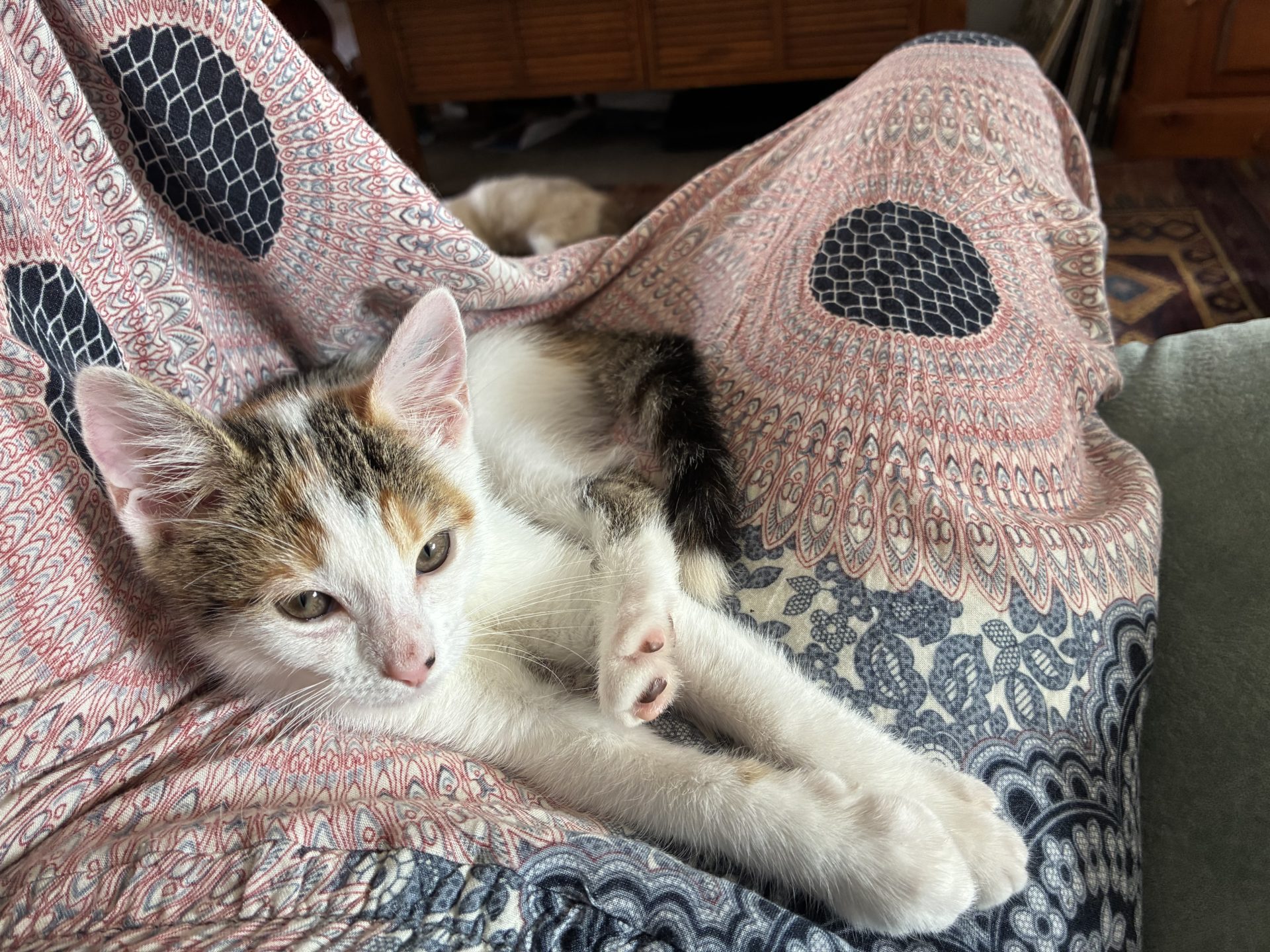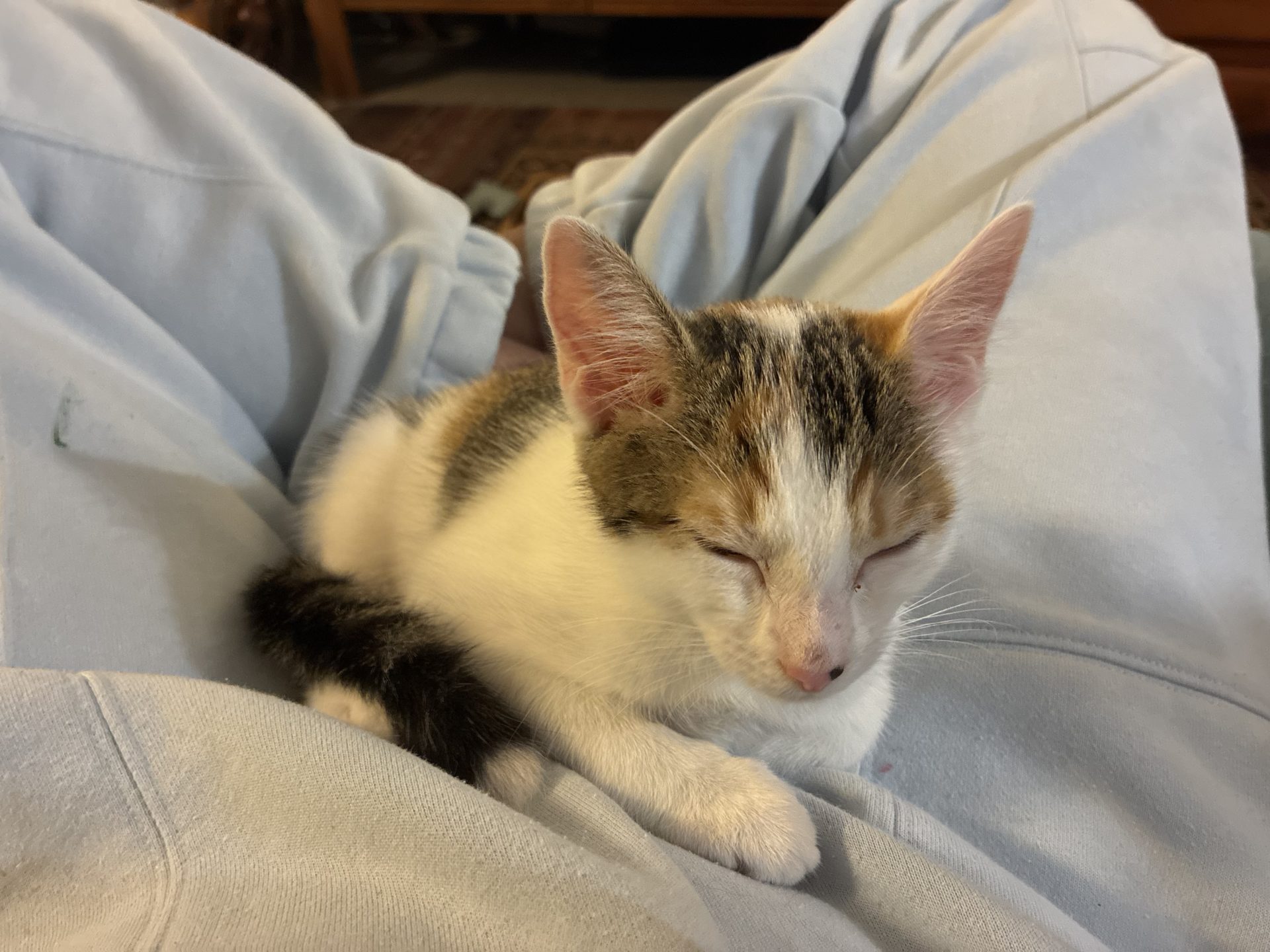 All About Me and My Unique Personality: Eleven is a cute calico and white girl she loves attention and her food. She is very cuddly and loves to sit on laps. She spends her days playing with her toys and her siblings she has settled into care very well will come with her vet work done and litter trained if you are looking for a new addition to your family, Eleven may suit as I believe she will suit most homes.