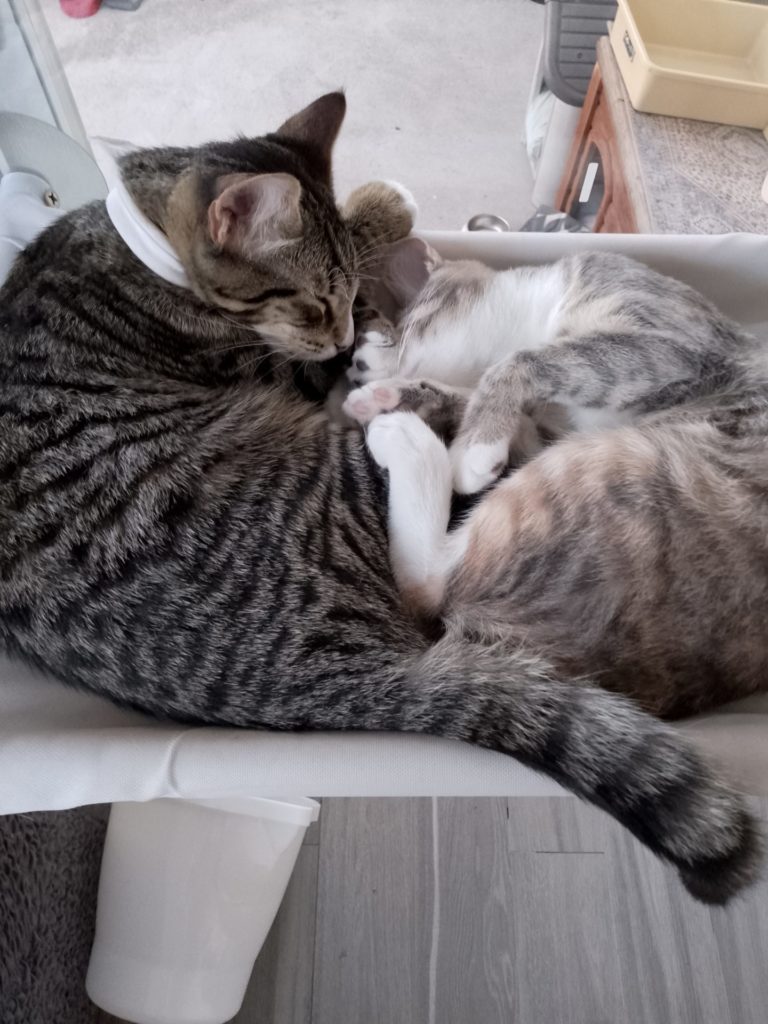 They are always looking for their next adventure, whether that be chasing balls, tackling the climbing frame and cat tower, or rumbling with each other. And they are comfortable with their gentle doggy sibling