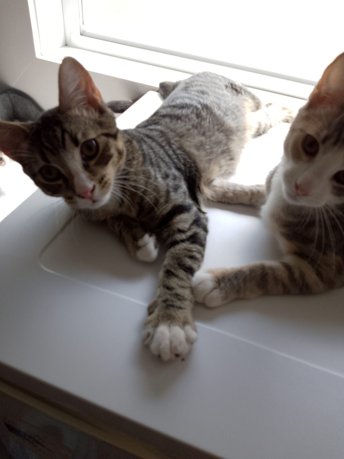 All About Me and My Unique Personality: Finley follows Flora's lead but has become more courageous as he grows. He and Flora spend their whole day by each other's side, so we feel he would be best suited to a household which includes another young cat (unless of course Flora is adopted with him.
