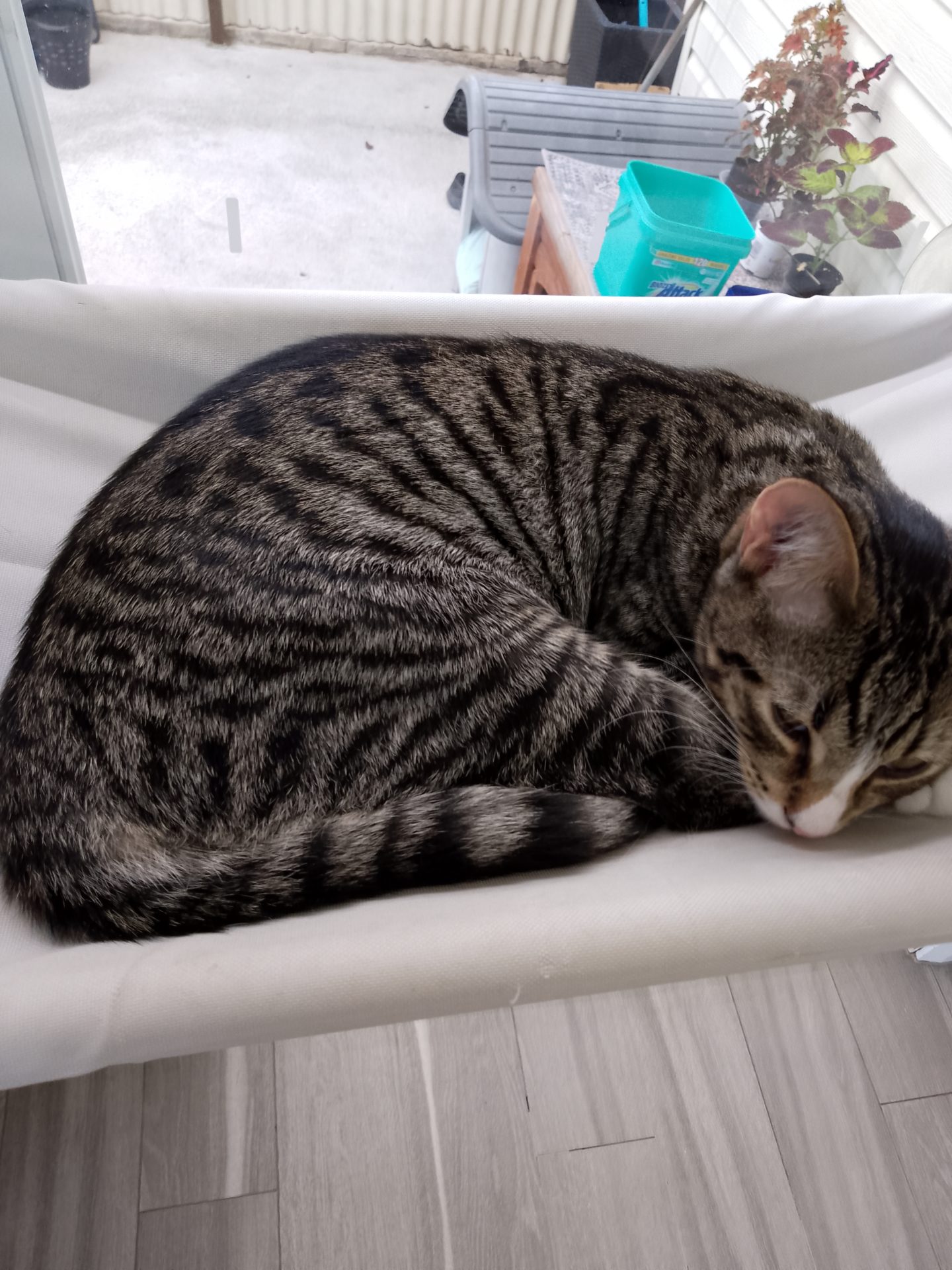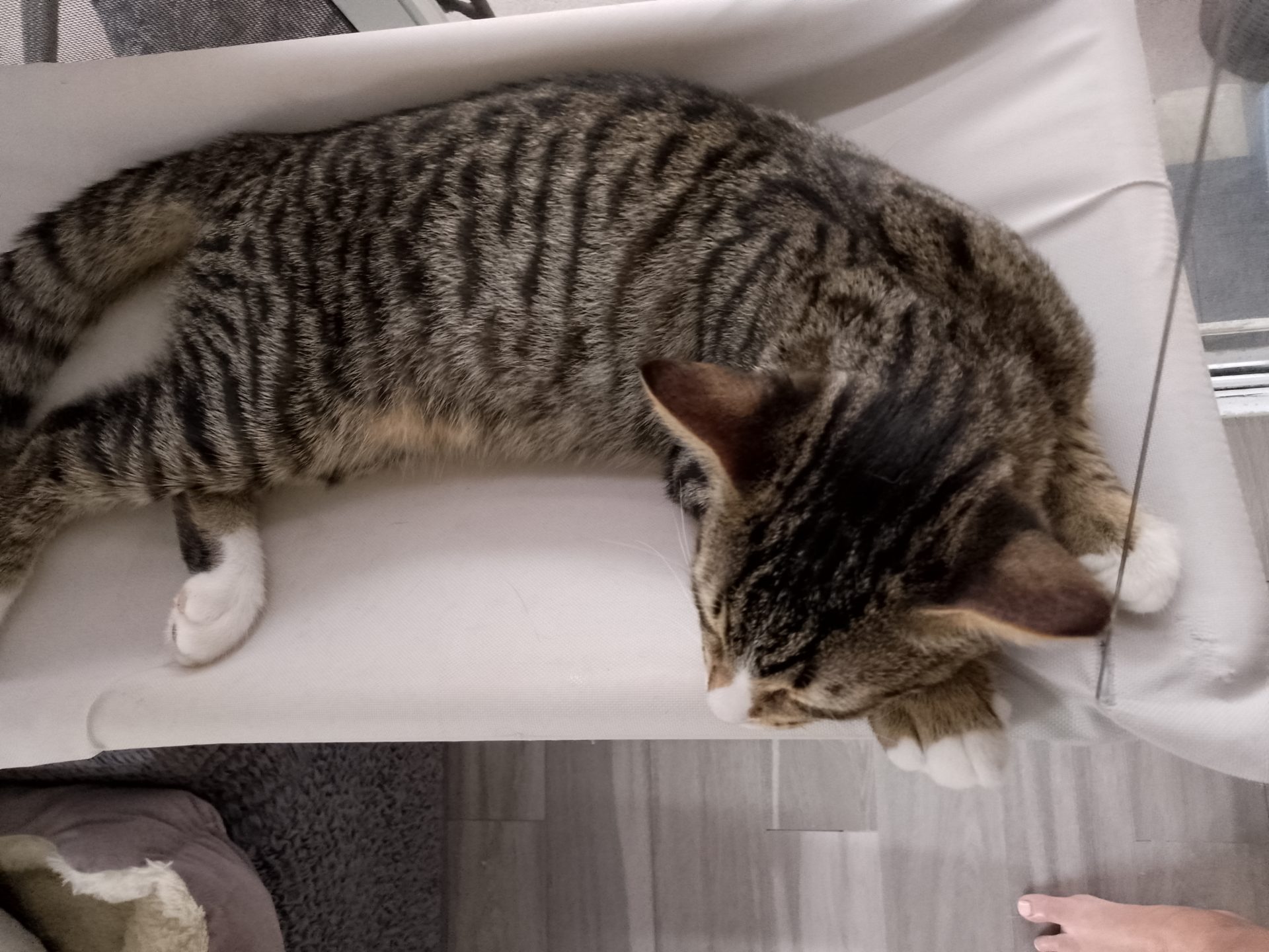 Then just like that it's nap time, where the window hammock is the favourite spot.