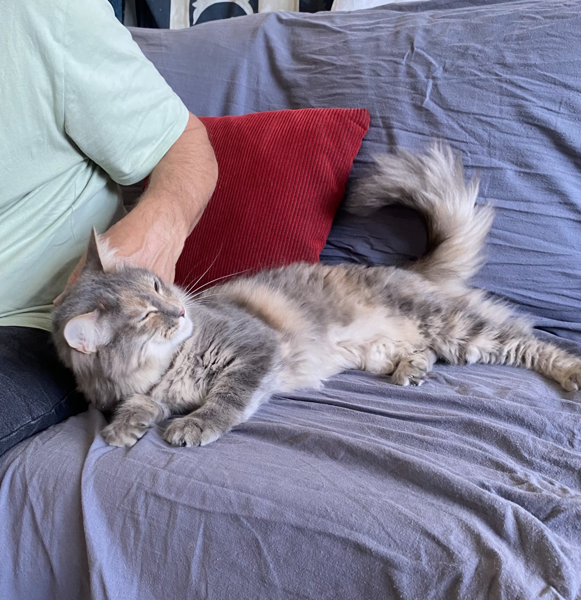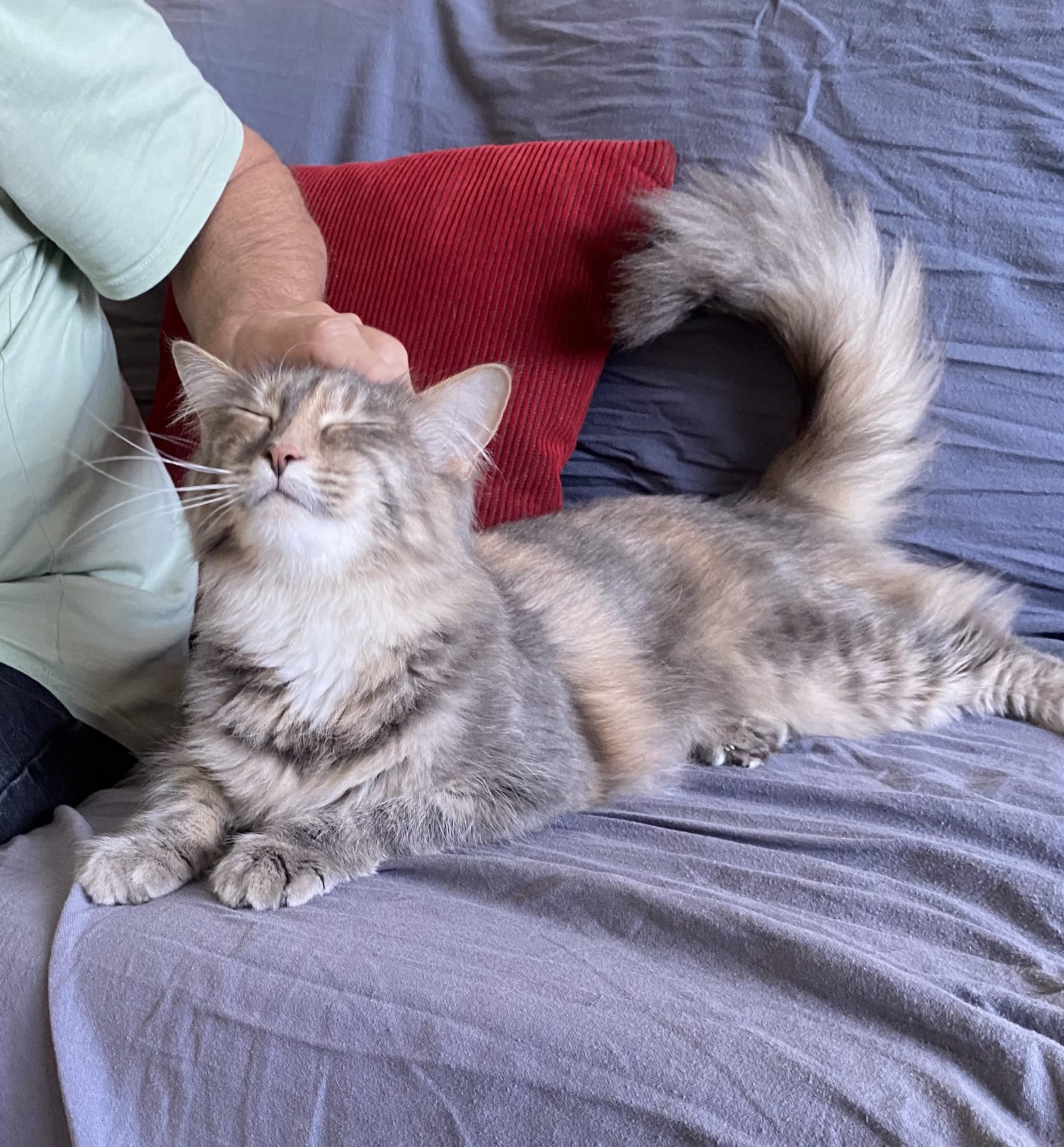 My Ideal Home: A loving family that has the time to spend with their fur baby, Maybe a bunch of kids over 5 years old would be ideal, Fluffy loves company! A home with lots of room, sunny spots to lounge around, cats toys and someone at her beck and call to play with,,, cat enrichment a must. Fluffy requires frequent grooming, at least 3 or more times a week.