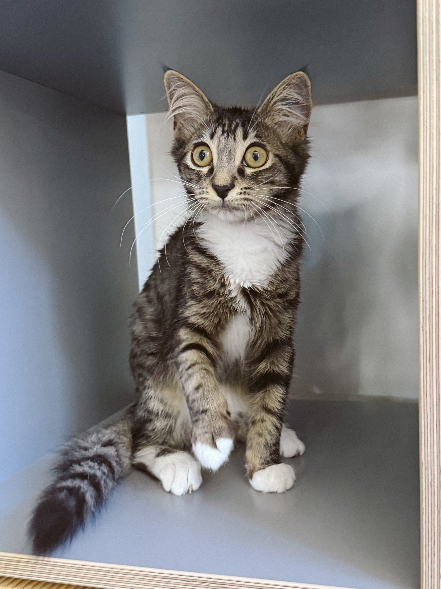 My Ideal Home: This sweet girl’s ideal home could be a home where she is going to be the light of the party or a home with another cat as I do believe that due to the fact that she is so young and curious that she would be totally up to make a friend, she is also energetic so a friend that would play with her would be a beautiful match. She is scared of dogs, but there is always a possibility to work with her til she feels safe around a friendly dog.