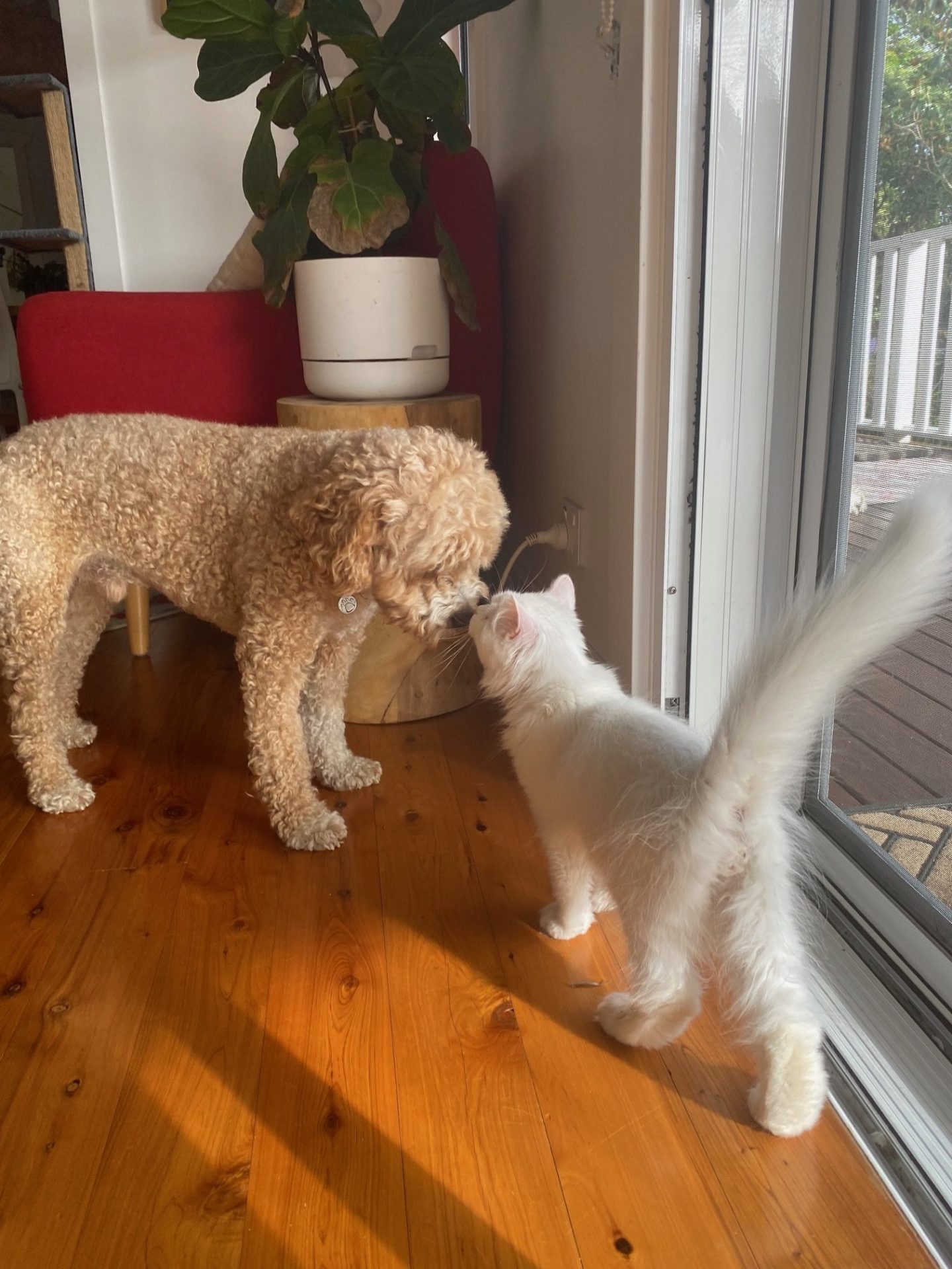 How Do I Interact with Kids, Dogs, Cats and Other Pets: It is unknown how we would interact with young children but our laid back nature may suit a quiet family pet. We would still need a special space for ourselves.