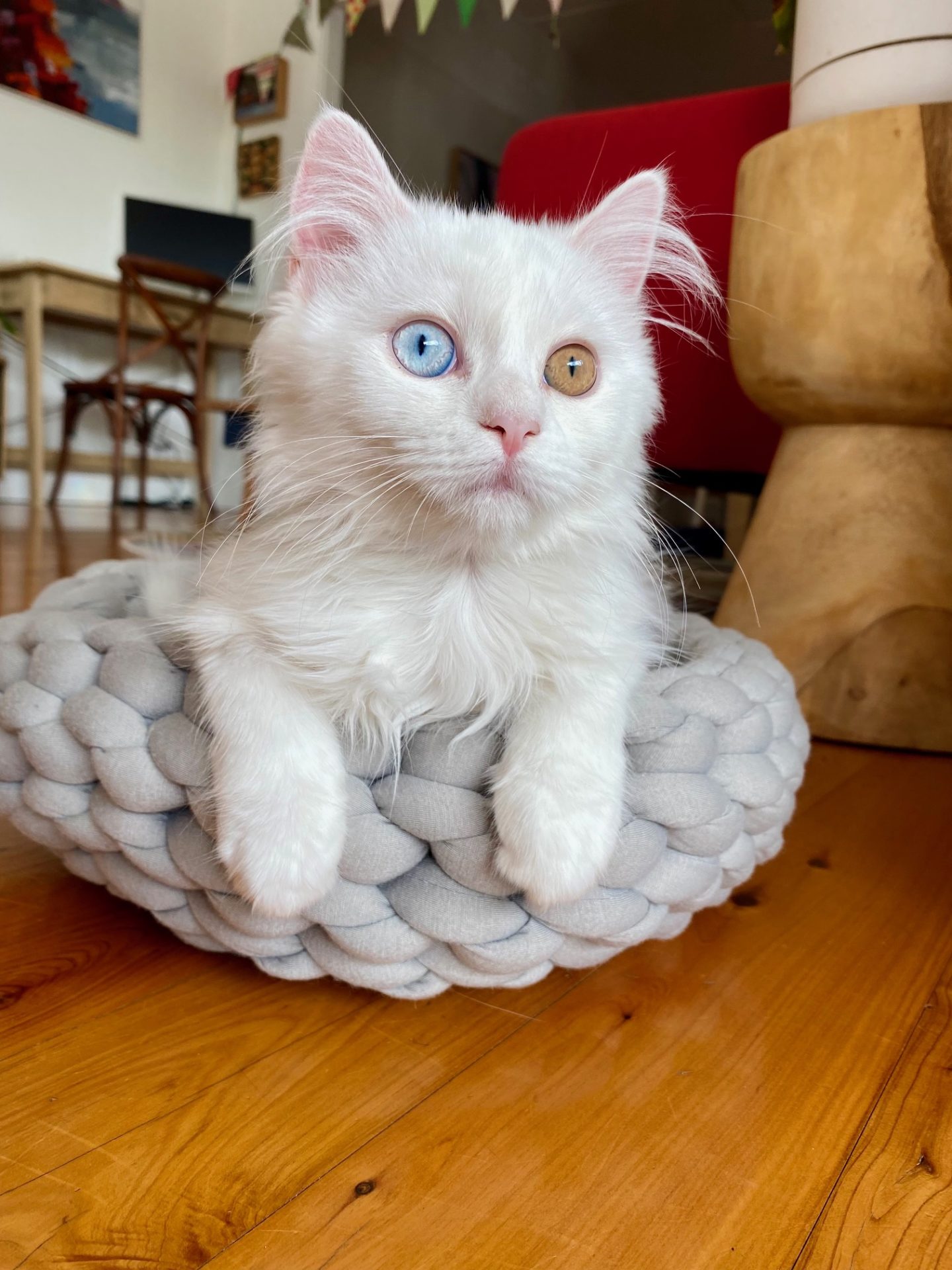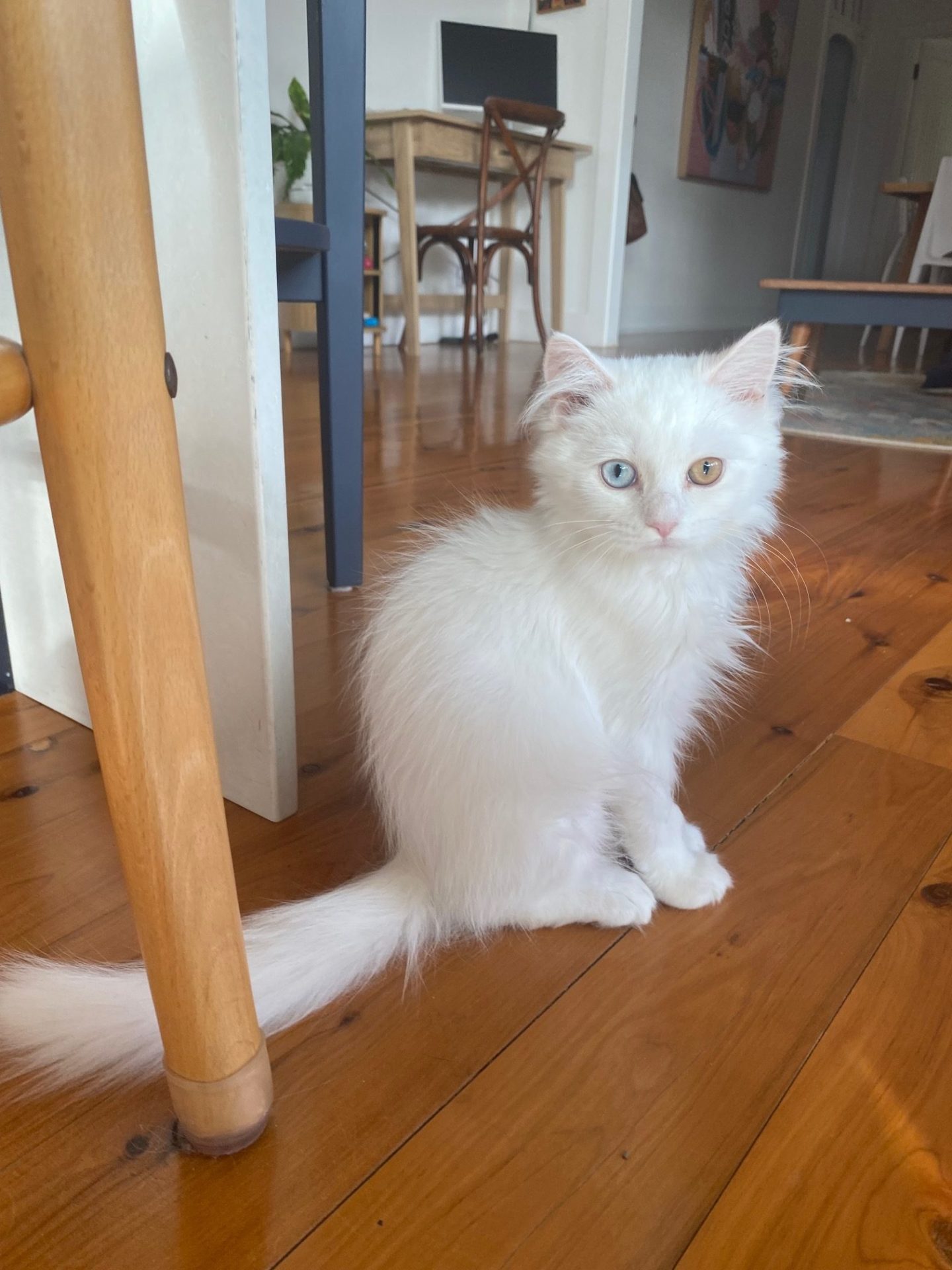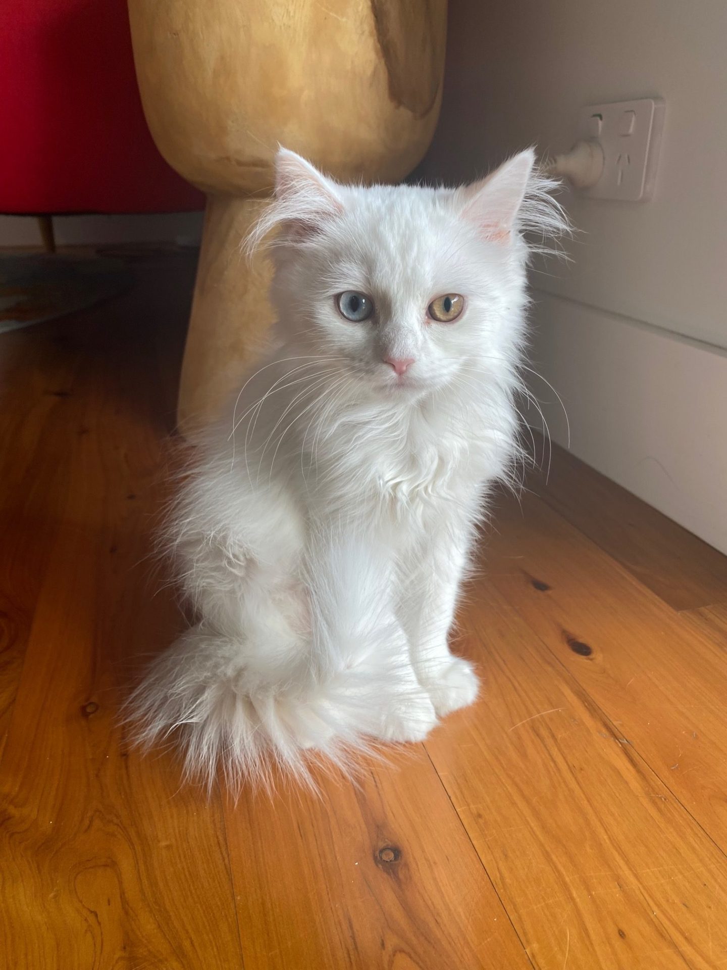 Olive is a playful but laid back girl. She has adorable different coloured eyes! Olive loves pats and is very affectionate.