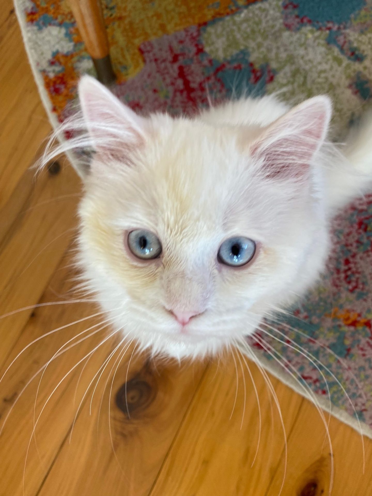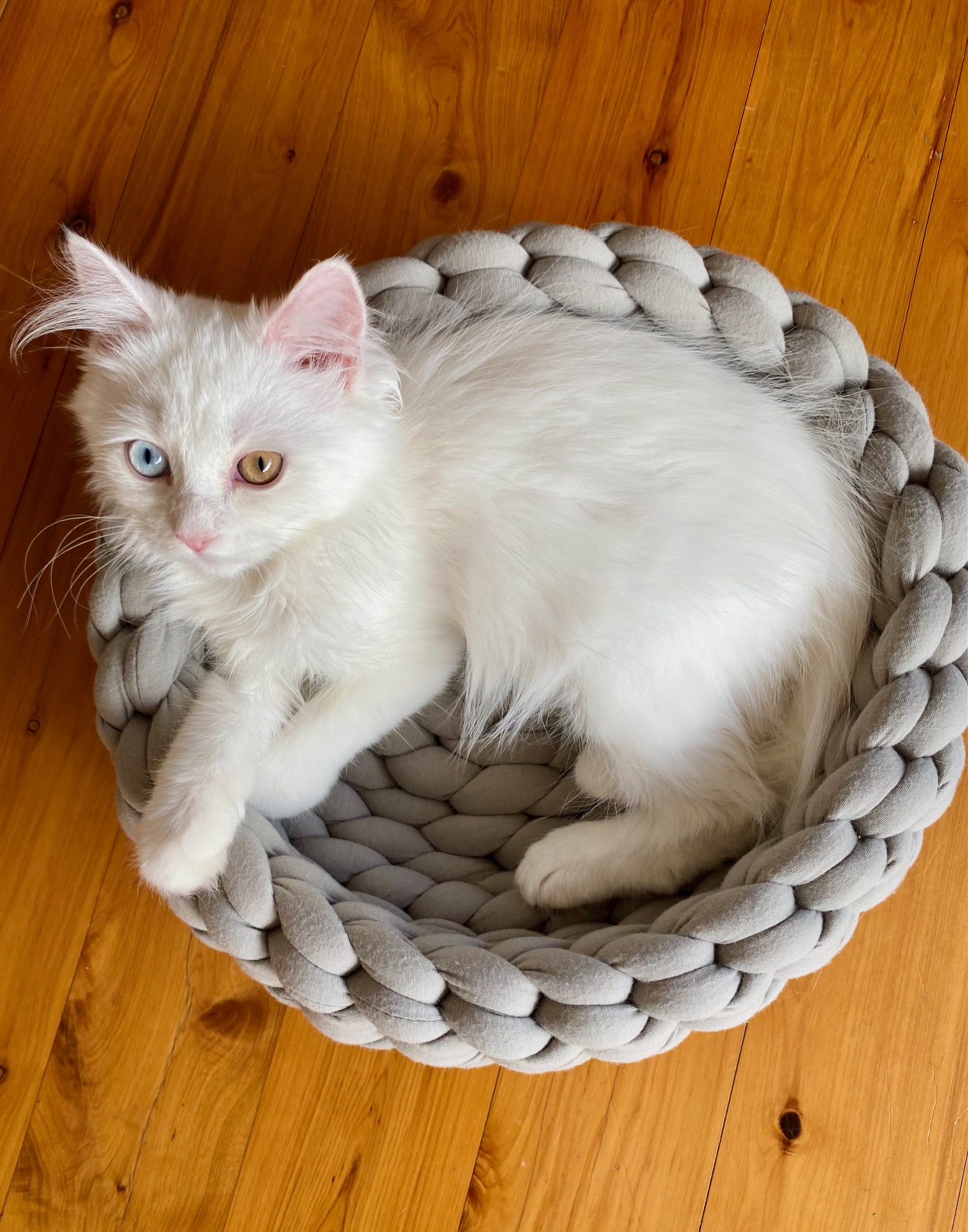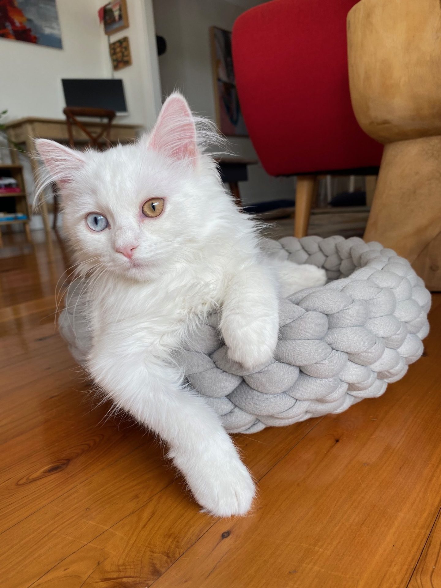 Olive is a playful but laid back girl. She has adorable different coloured eyes! Olive loves pats and is very affectionate.