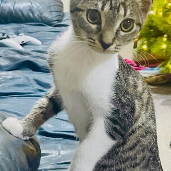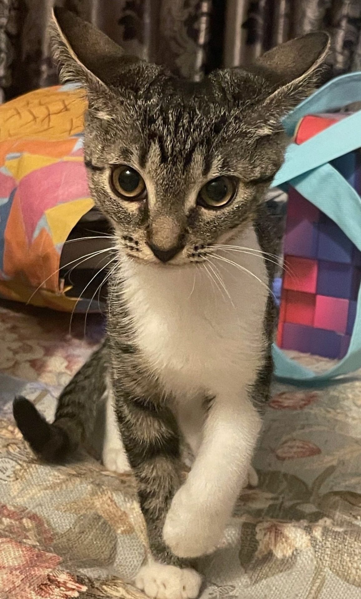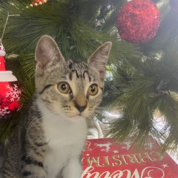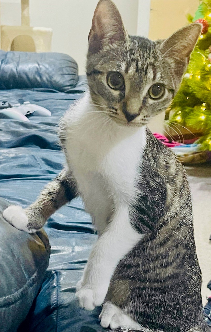How Do I Interact with Kids, Dogs, Cats and Other Pets: Being a kitten Holly is curious about everything. She watches new things cautiously before finding the fun in everything. Whilst she hasn't met any dogs with gentle introductions she should be fine - she has seen them through the windows. She loves zoomies through the house, sitting under the Christmas tree and finding her own little nook to take a nap.