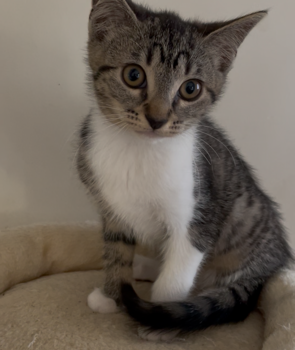 How Do I Interact with Kids, Dogs, Cats and Other Pets: Being a kitten Holly is curious about everything. She watches new things cautiously before being comfortable, but behaves very much like any little kitten. Whilst she hasn't met any dogs with gentle introductions she shoudl be fine. She loves zoomies through the house and sliding down the side of the bathtub!