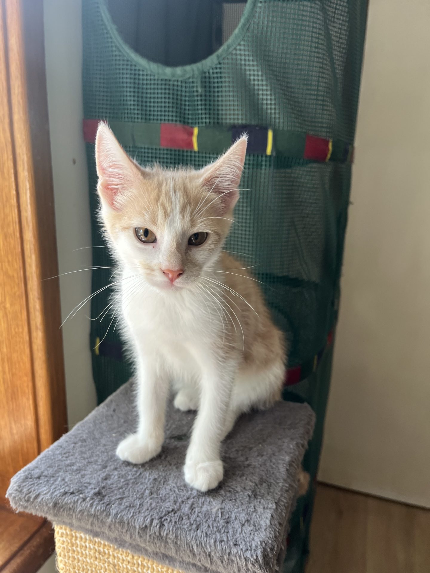 How Do I Interact with Kids, Dogs, Cats and Other Pets: Honey would love to be rehomed with her sister Maple or another friendly cat. Being a kitten, she should cope fine with a dog. Being confident, gentle and playful, Honey would be great with young children.