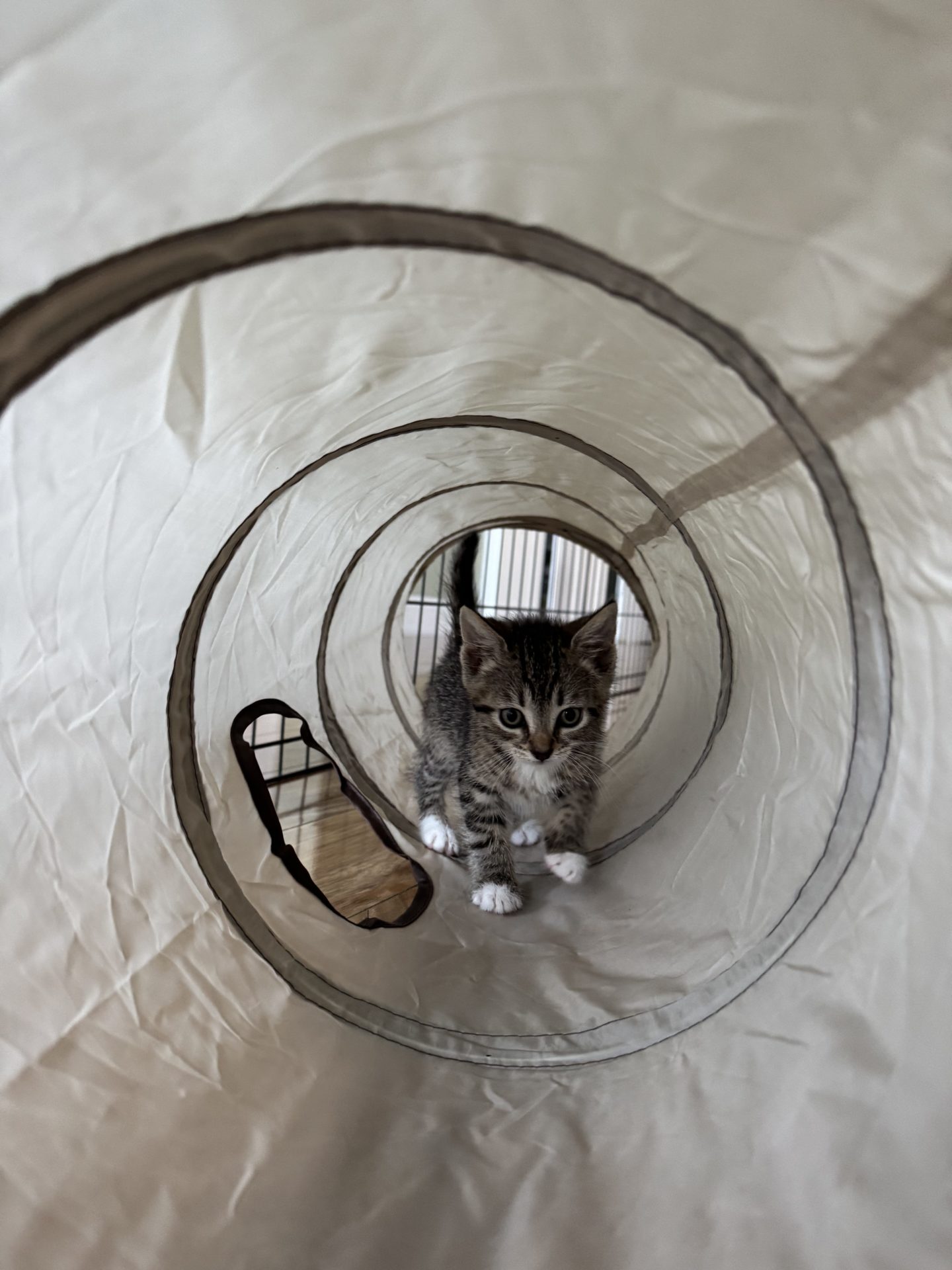 All About Me and My Unique Personality: I’m a little bit introverted. I’m reserved and like my solitude (downtime). I like to play games, climbing, going through tunnels, and chasing balls. I like playing and wrestling with my siblings. I like to sit and watch things happen.