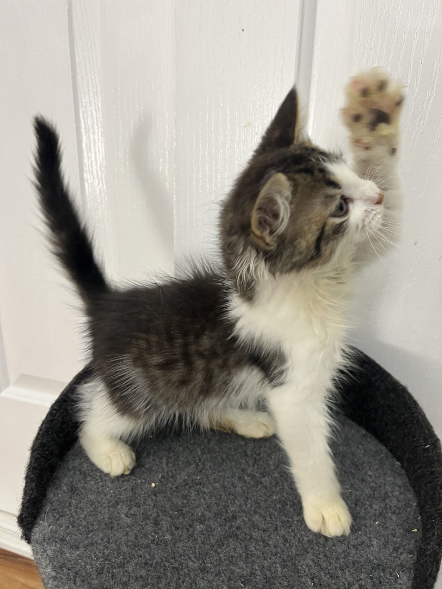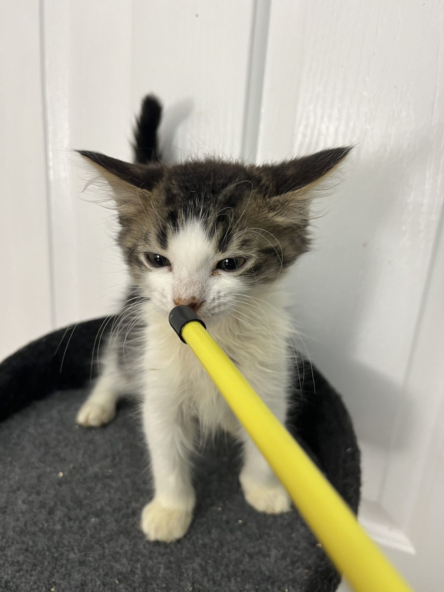 All About Me and My Unique Personality: Lightning is a sweet gentle boy that loves to play with his siblings and chasing balls he is a grazer with food uses his litter tray well and has had his vet work does. He is now on the search for his own family