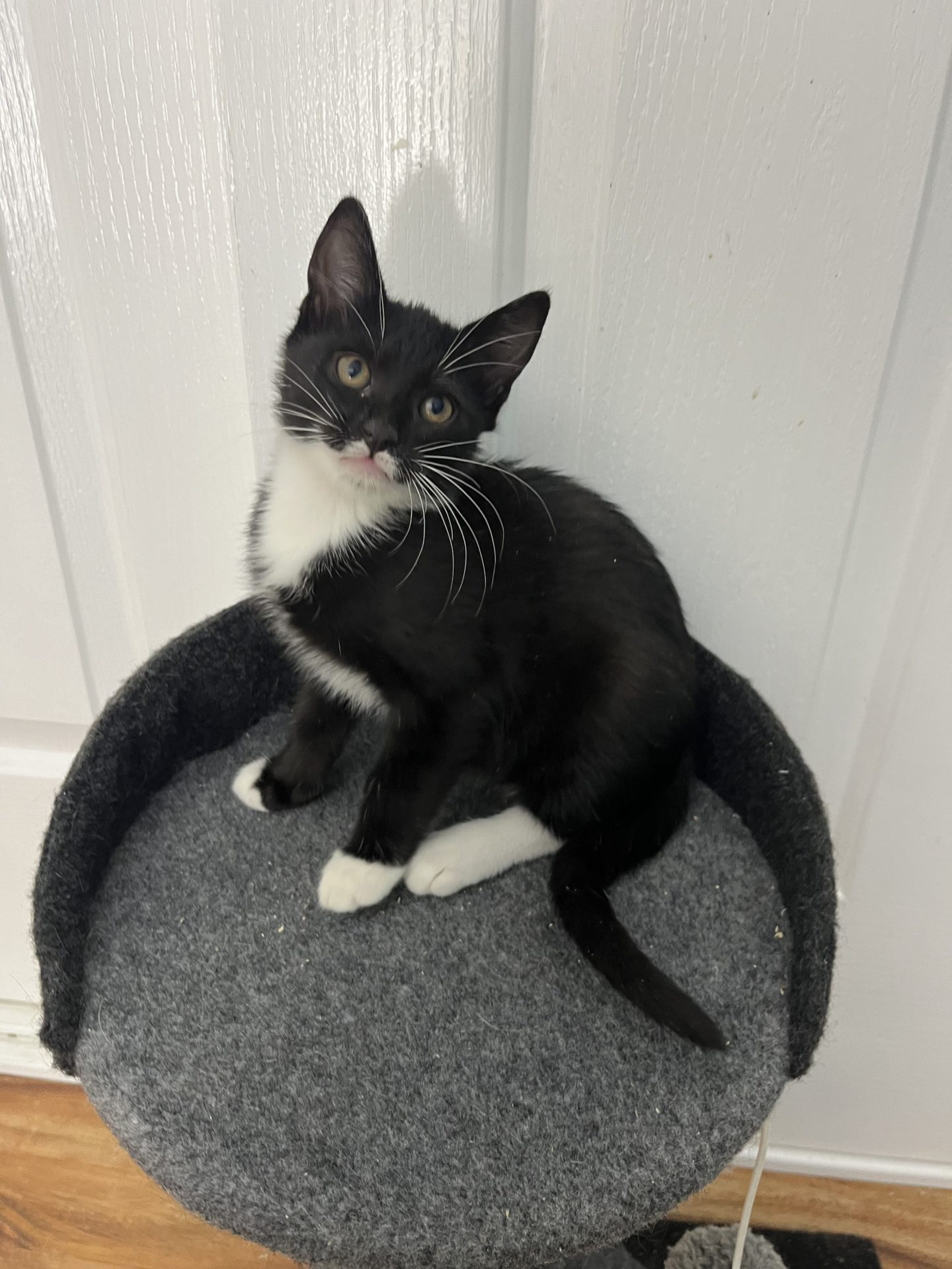 All About Me and My Unique Personality: Magpie is a playful kitten loves to chase balls just loves a fame of soccer with his siblings and playing on the cat tree he also loves his food and isn’t fussy he has had his vet work done and is now on the search for a family of his own