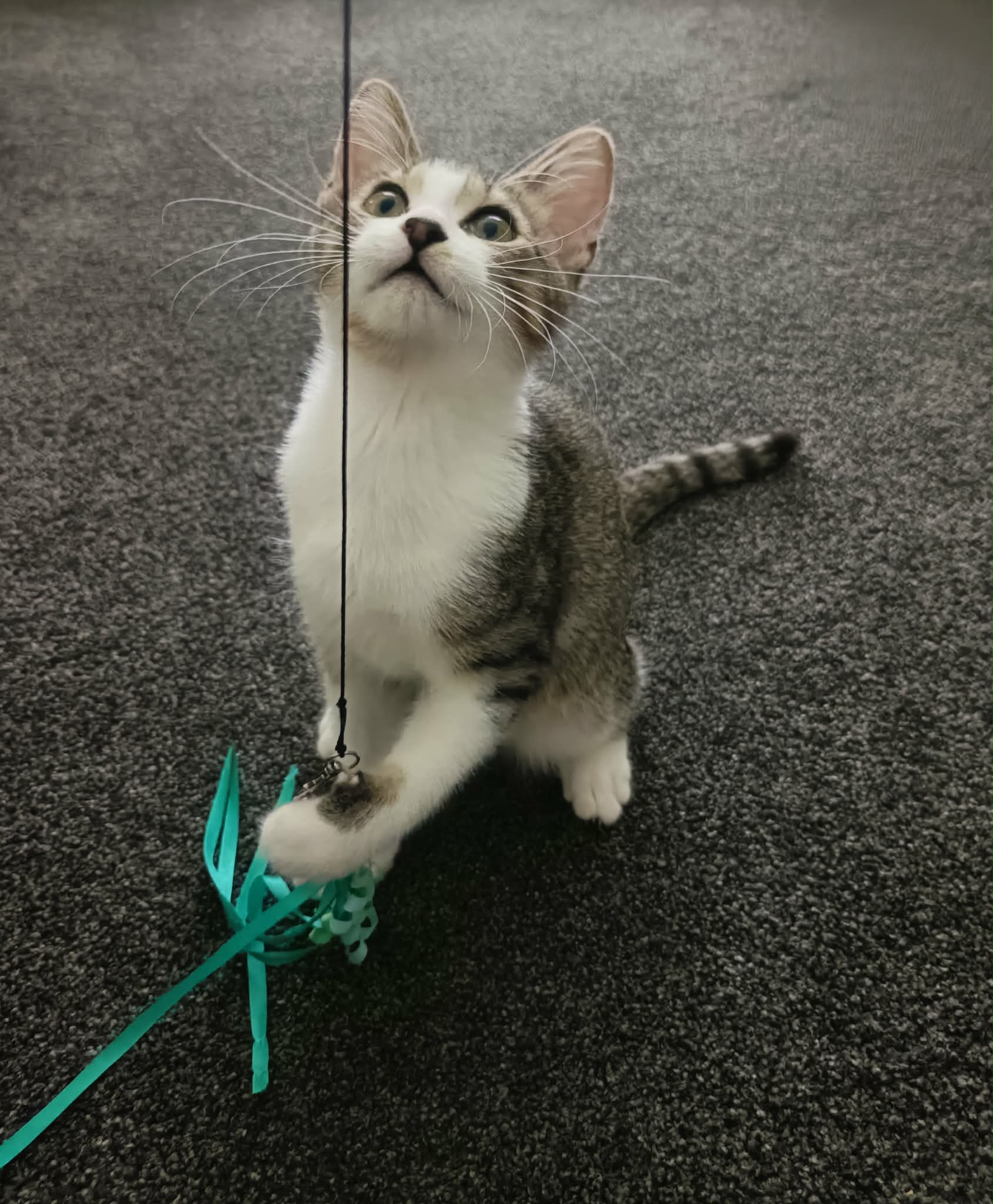 Don’t let his calm nature fool you—Max is also happy to play! He enjoys batting at toys, chasing strings, and exploring his surroundings with curious little steps. He’s the perfect balance of playful and peaceful.