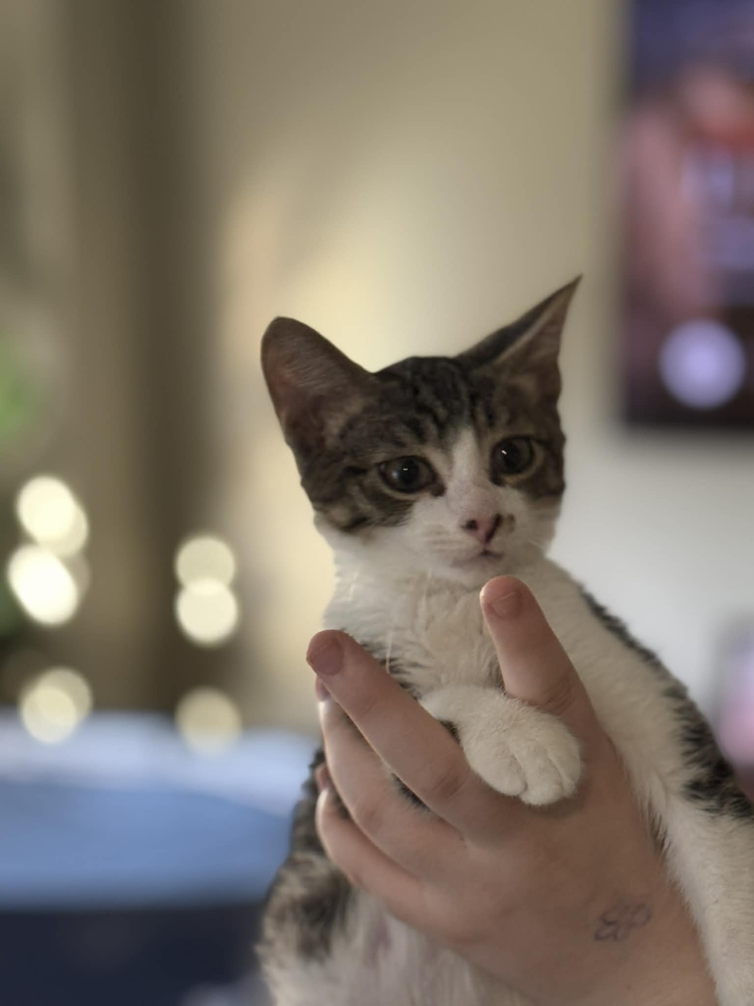 Max is a soft-spoken little sweetheart with the most soulful eyes and a heart full of love. While he may be a bit quiet at first, once he feels safe, he absolutely melts into your arms for cuddles. He’s the kind of kitten who will curl up beside you after a long day and make everything better with his gentle purrs.