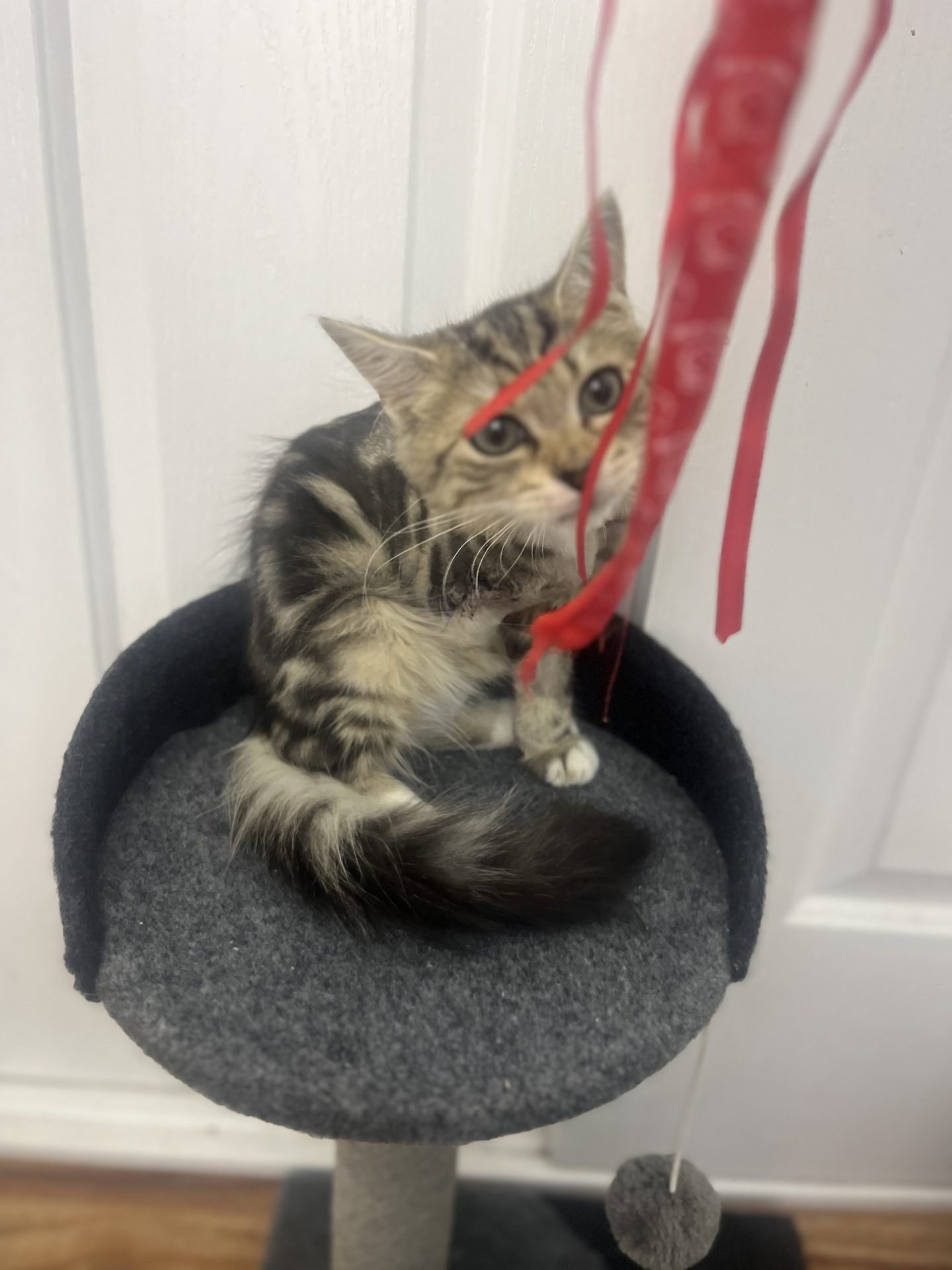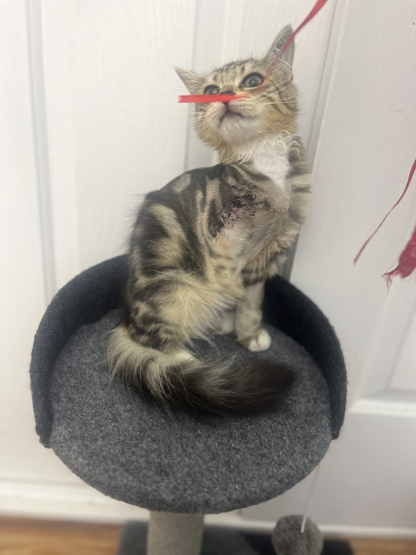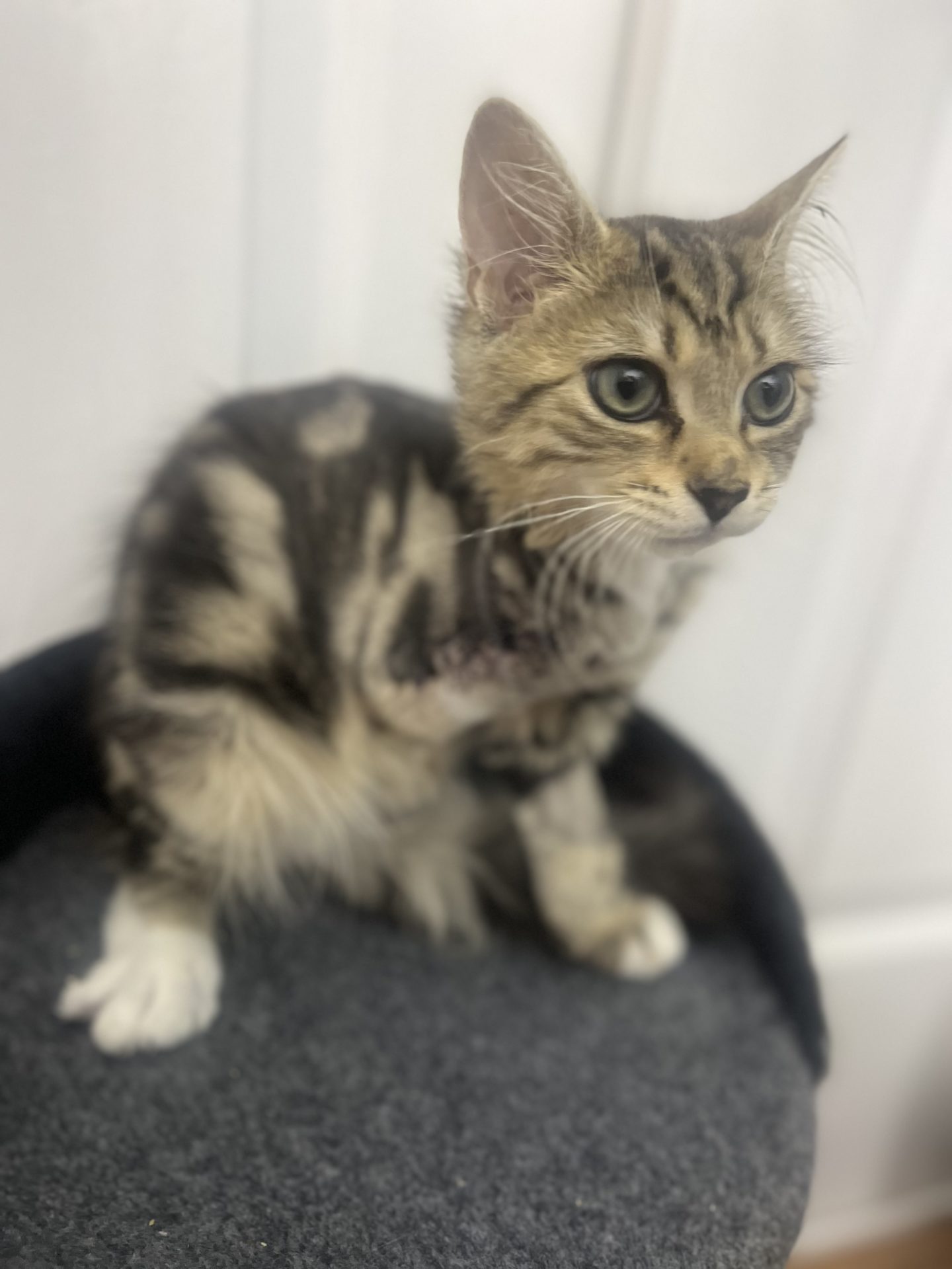 All About Me and My Unique Personality: Mochi is a super sweet gentle soul she has had a very rough start to life coming into care with an old break to her elbow which must of happened at only a few weeks old which healed fused meaning she had restricted movement and pain in her elbow this could not be fixed she would of had to be on pain medication for her entire life the decision was made to amputate to give her a life without pain that she can enjoy she has adjusted well now starting to play pain free she loves cuddles and sitting on your lap she loves her food uses the litter tray well she is now on the look out for her very own special home full of love