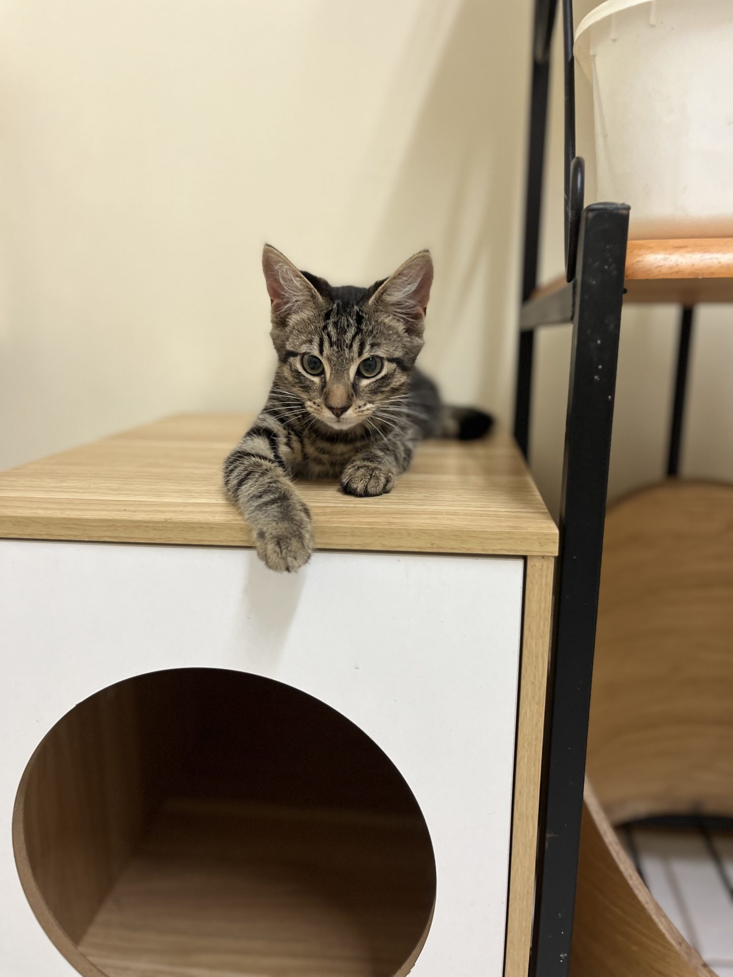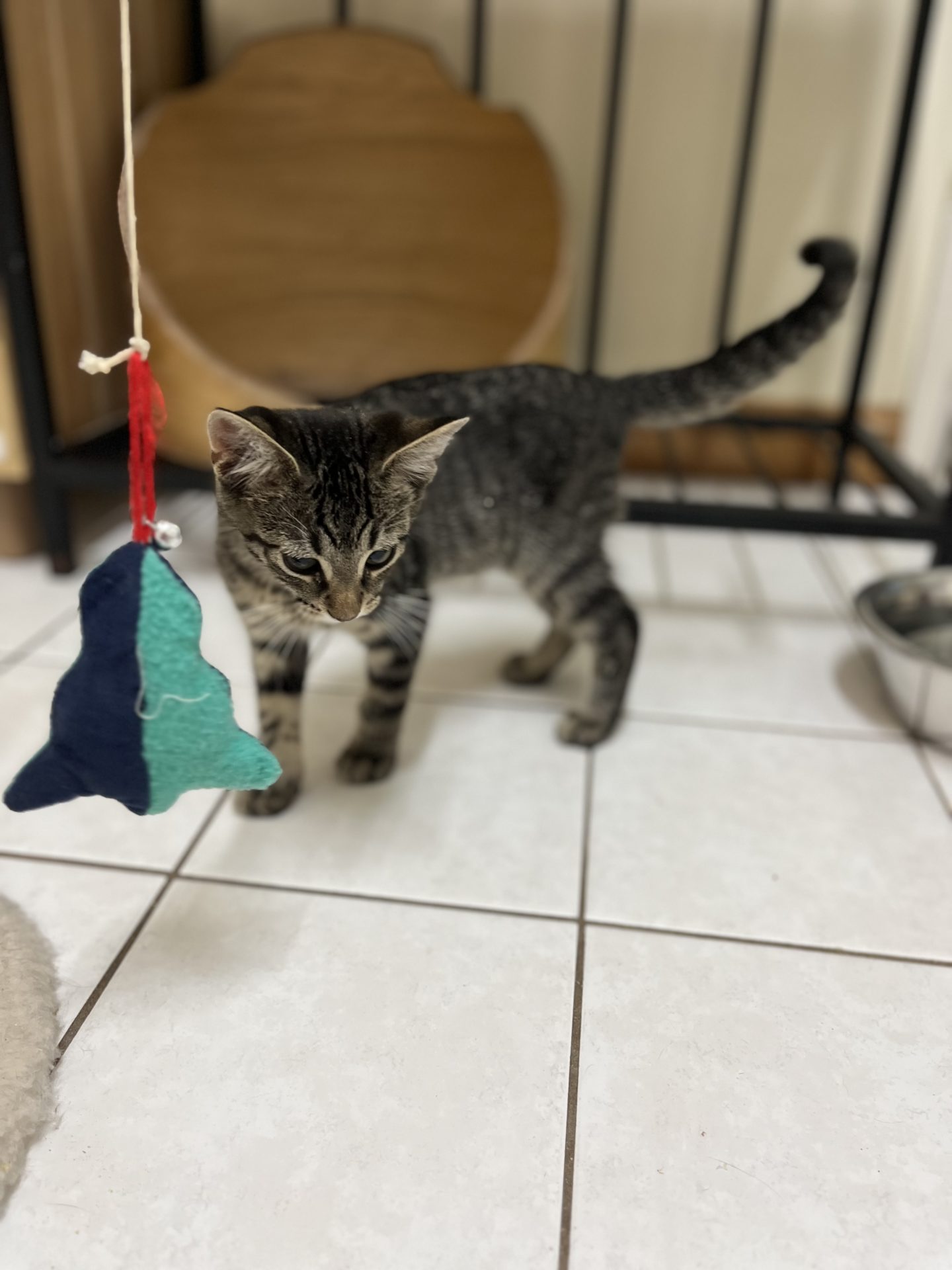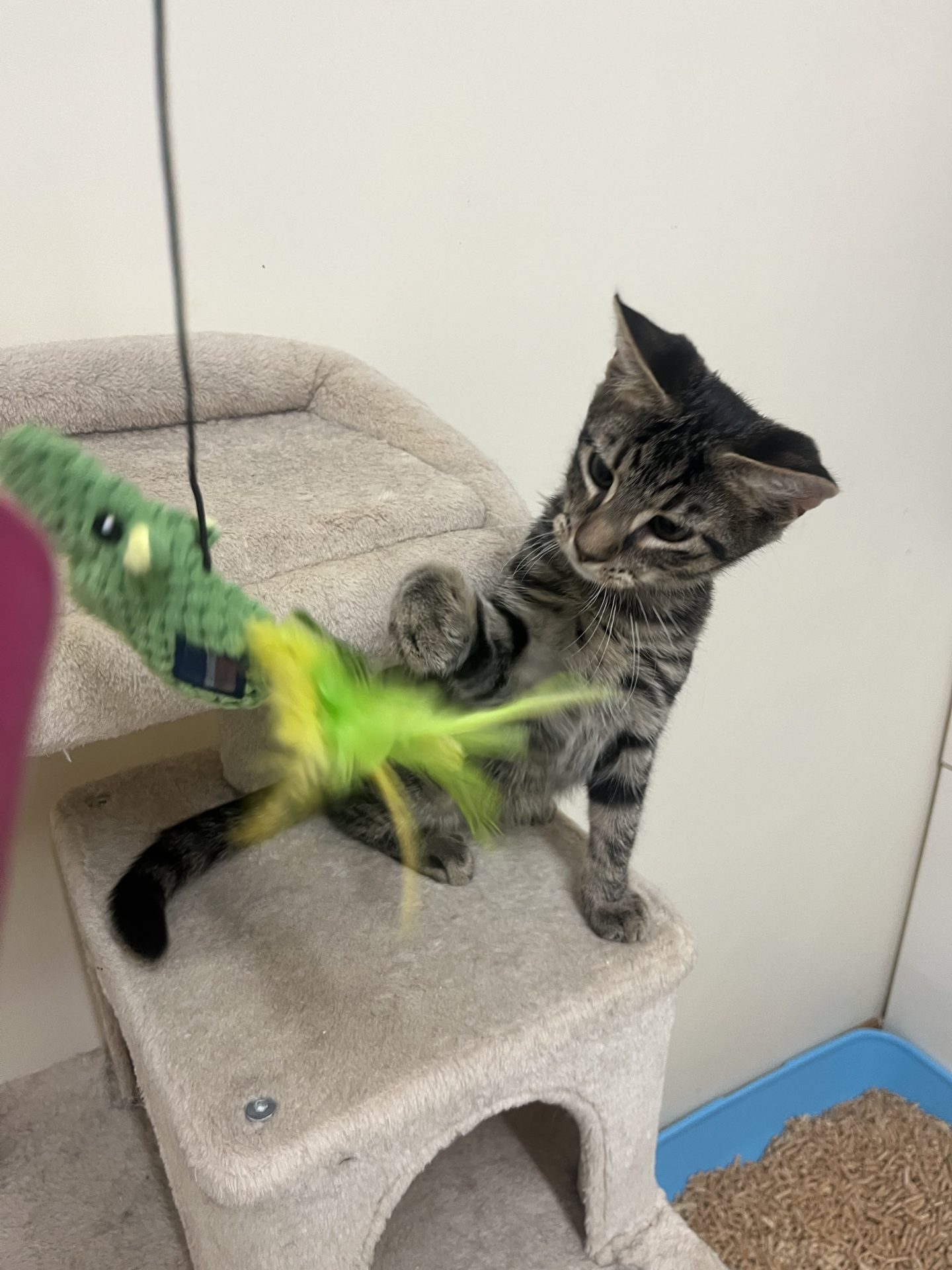 All About Me and My Unique Personality: Murphy is a sweet boy is an affectionate purr machine was shy to begin with but has since came out of his shell and loves attention he loves playing with his siblings chasing toys and scratching on the cat tree. He also loves to sleep on the cat tree or in the hammock he loves his food isn't fussy and uses his litter tray well he has a sweet nature and very gentle sole, He has had his vet work done and is now ready for his new forever home.