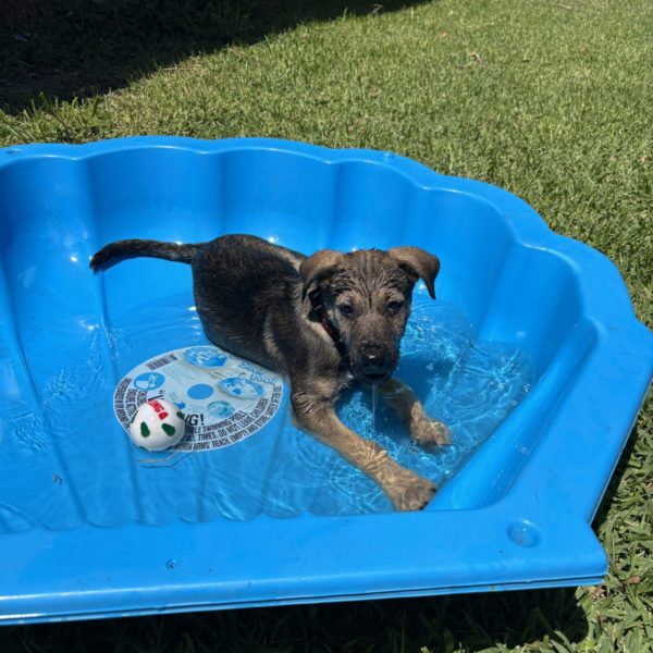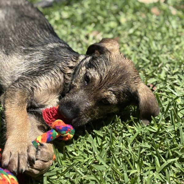 All About Me and My Unique Personality: Nacho is a fun loving and joyful puppy. He is full of energy and loves to romp and play with toys. He will chase a ball and bring it back (sometimes). He is smart and very food motivated so will be easy to train. He enjoys playing chase with his brother and would love an older doggy friend to play with & learn from (as long as they are tolerant of an energetic puppy). He would also be happy as an only dog provided his family give him lots of attention and playtime.