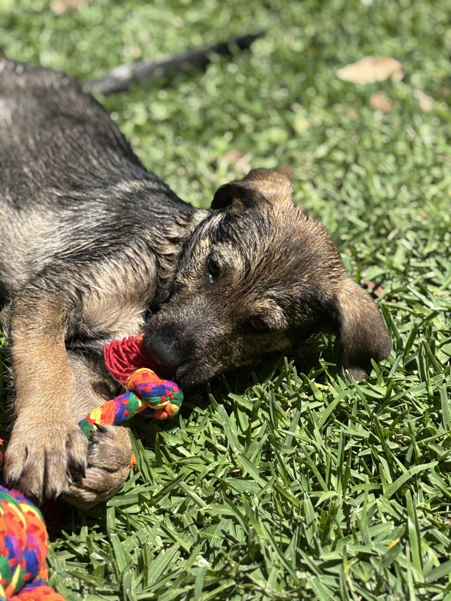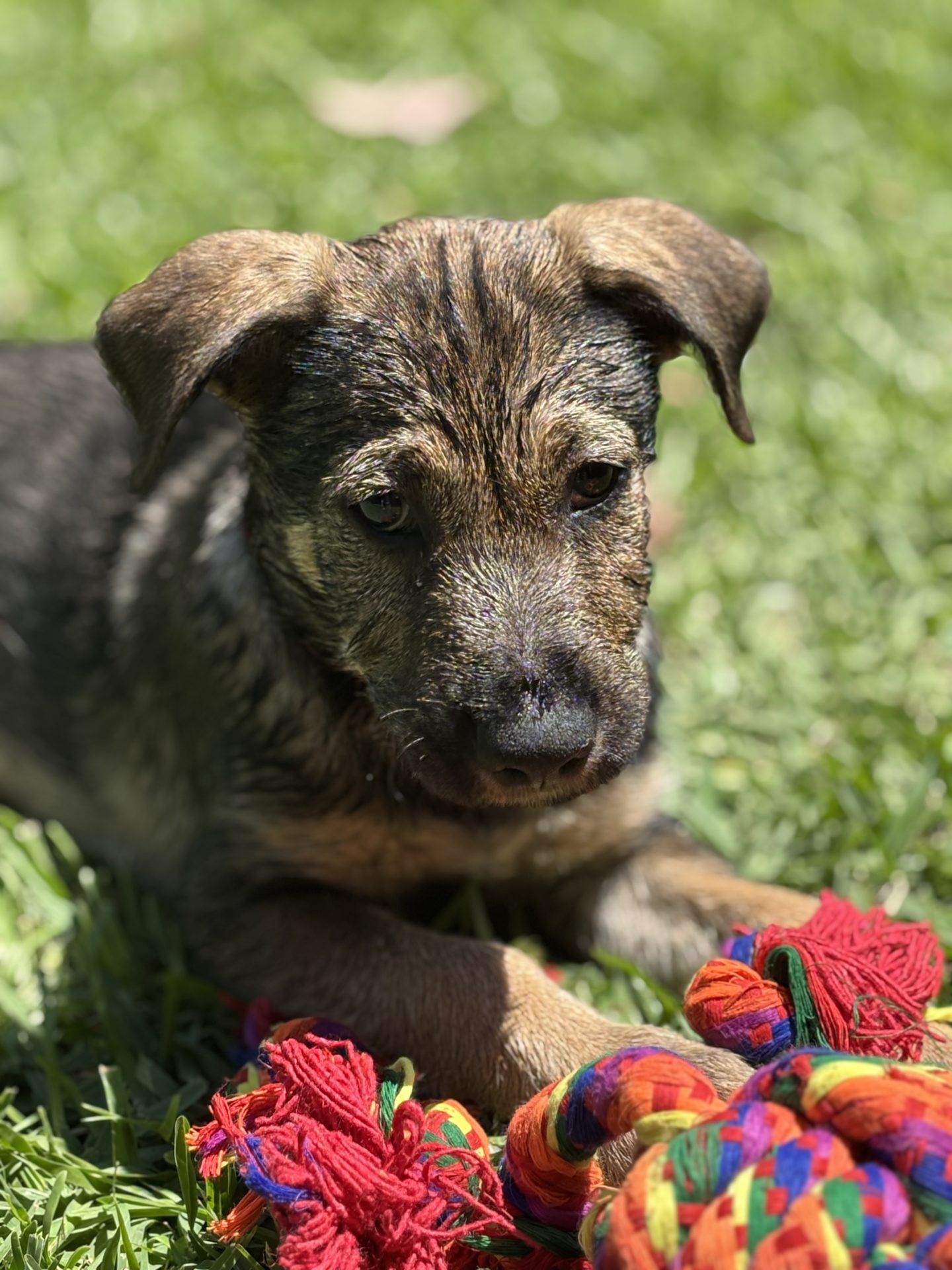 All About Me and My Unique Personality: Nacho is a fun loving and joyful puppy. He is full of energy and loves to romp and play with toys. He will chase a ball and bring it back (sometimes). He is smart and very food motivated so will be easy to train. He enjoys playing chase with his brother and would love an older doggy friend to play with & learn from (as long as they are tolerant of an energetic puppy). He would also be happy as an only dog provided his family give him lots of attention and playtime.