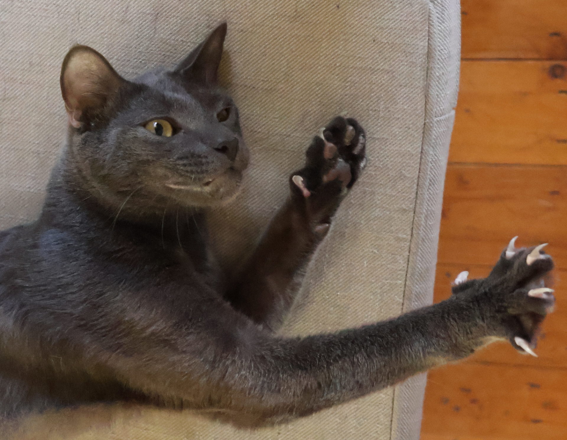 Preferred Human Interaction: Loves attention. Likes being carried and sitting next to you on the lounge. Not a lap cat though.