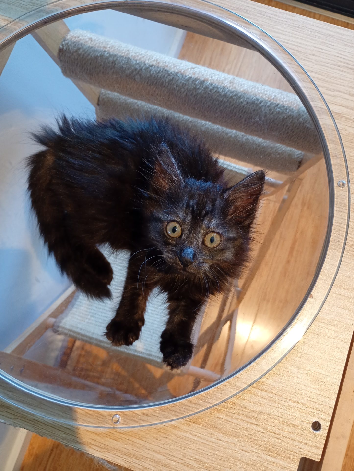 My Ideal Home: Pinky would suit any home, shes confident and very social as she came into care at a few weeks old so is very well socialised. She wants to play with the older cats in the house but they are only half interested. I would love to see her go to a home where she has a younger, playful cat to interact with. Our policy requires all our cats are kept indoors.