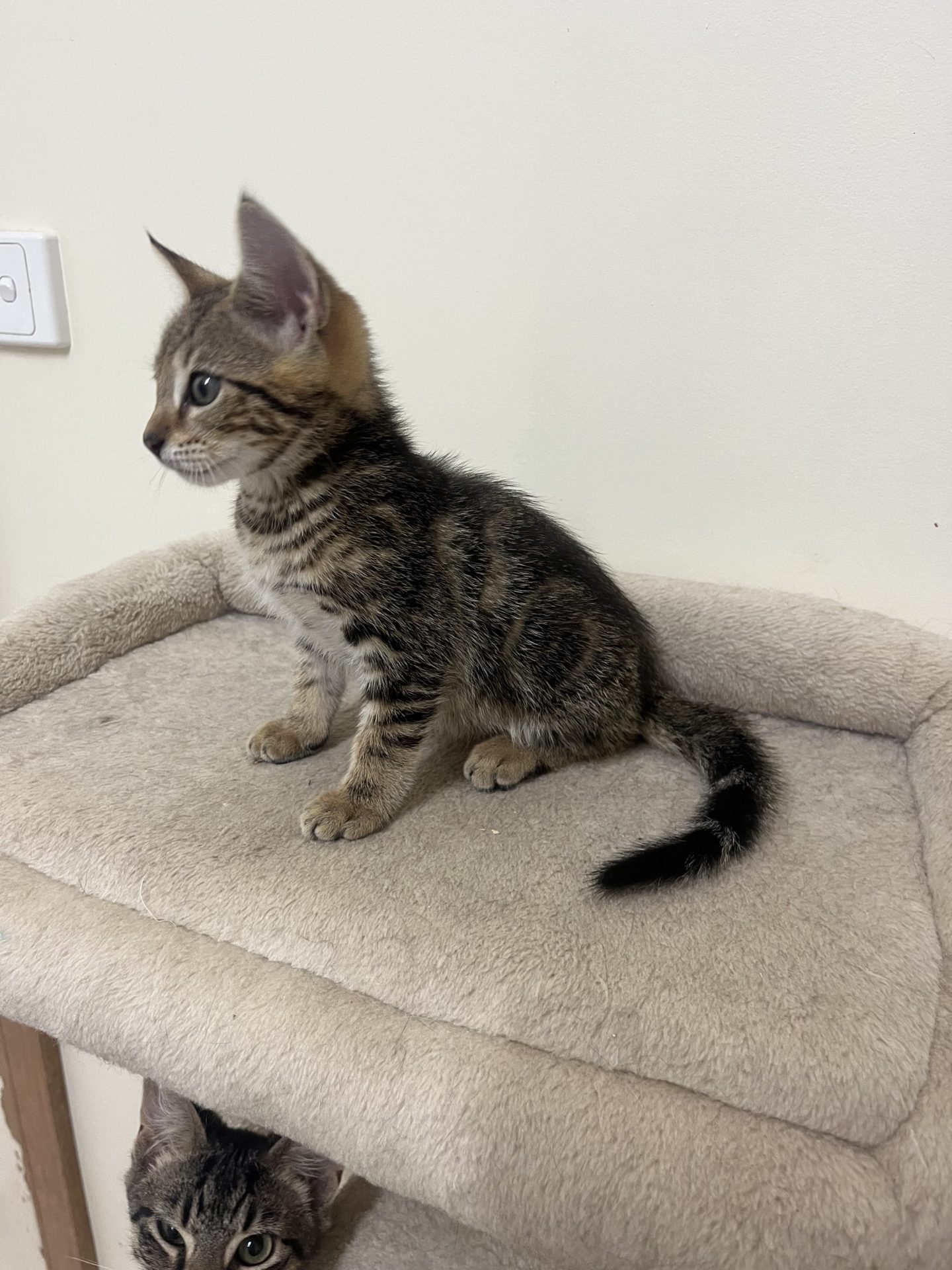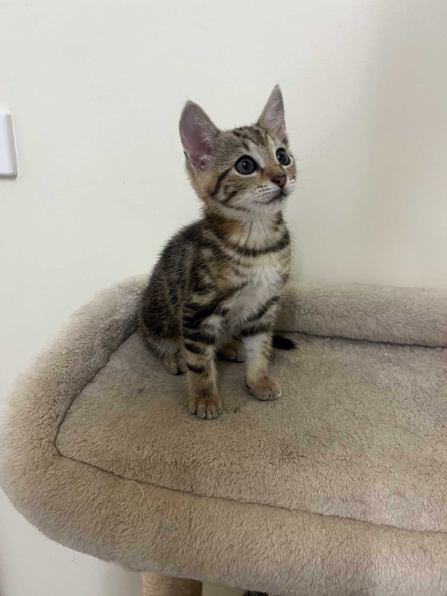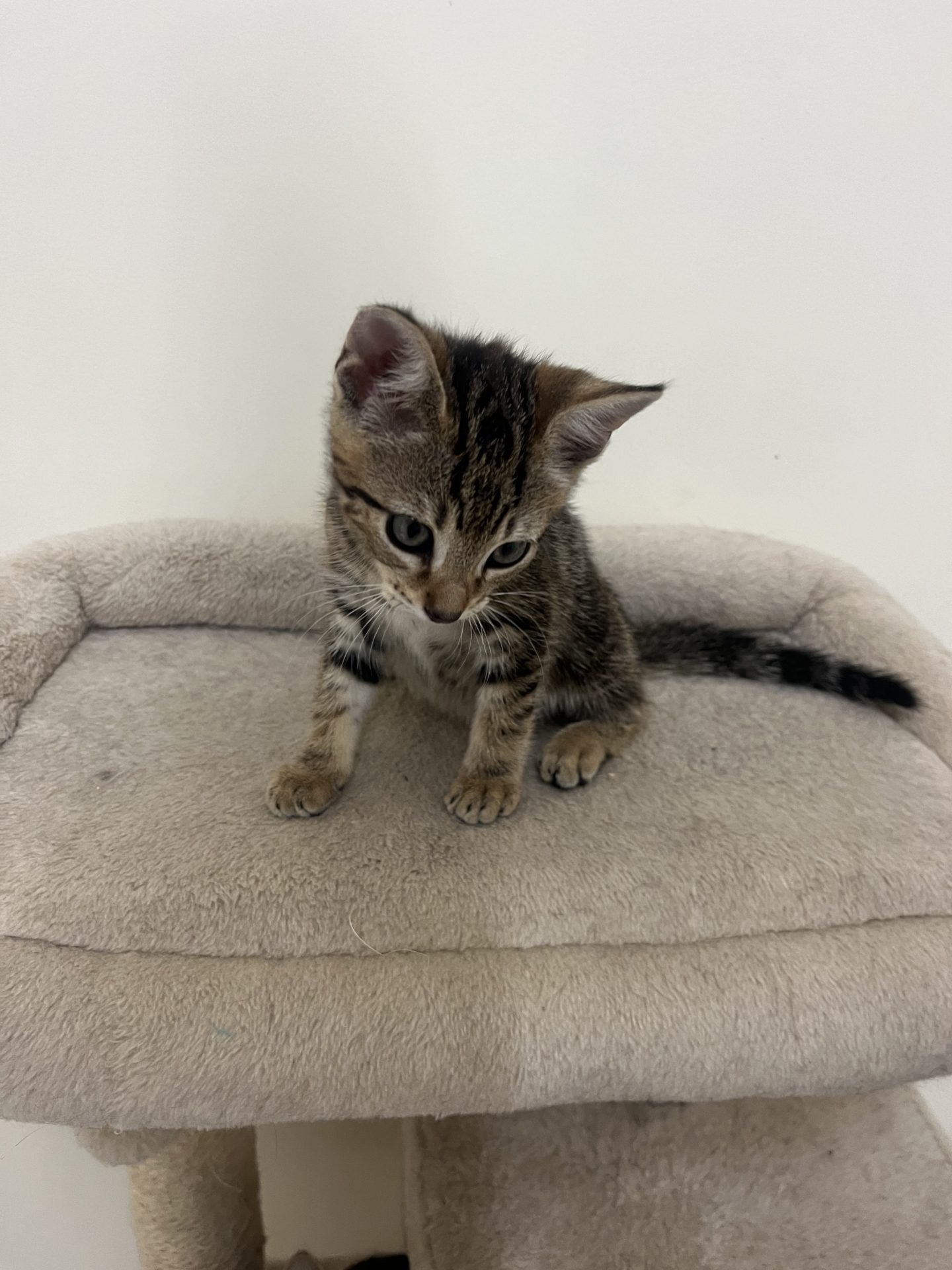 All About Me and My Unique Personality: Puffin is a sweet girl very playful loves her food not fussy and absolutely loves chasing balls racing up the cat tree and playing with the feather on a wand she comes desexed vaccinated wormed and flea treated she and her siblings are on the search for their families now that will enjoy having an active little kitten to play with