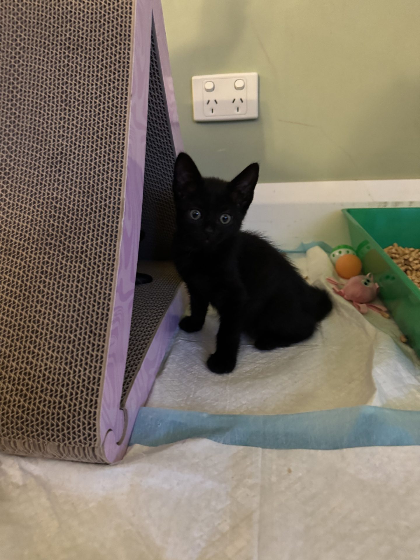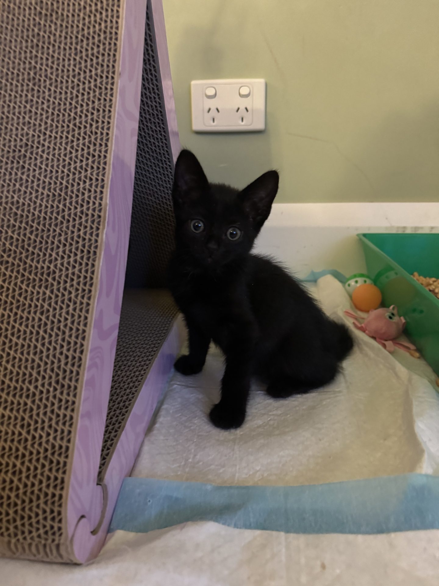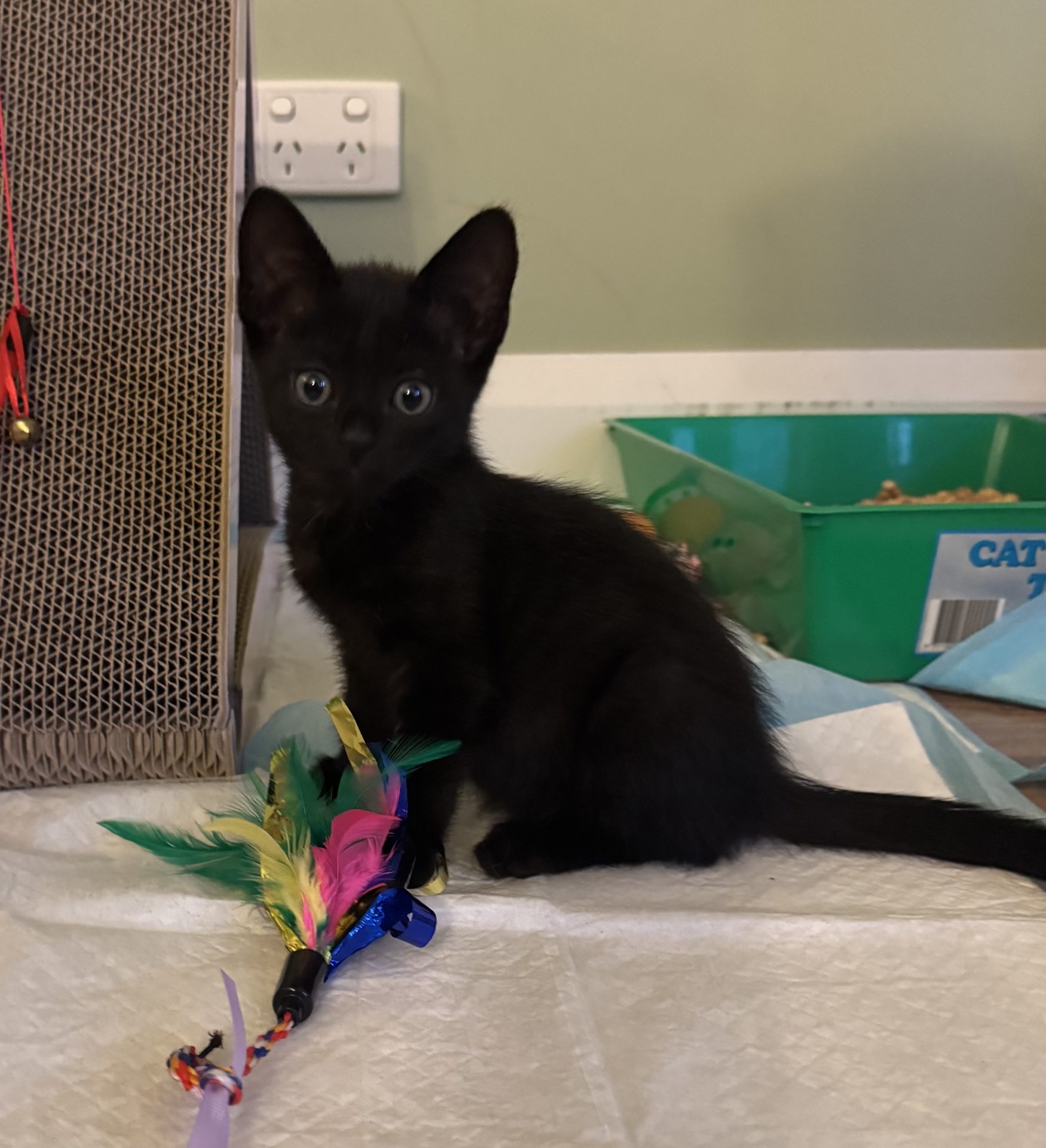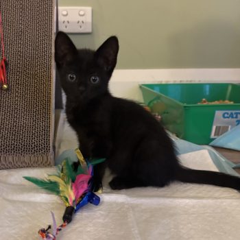 All About Me and My Unique Personality: I am a petite female black kitten with gorgeous eyes. I am outgoing and playful with my siblings. I like interactive play with toys. I am an avid hunter, love a good launch, pounce and catch. I am developing confidence in interacting with people everyday and getting familiarised with the activity and sounds of a household.
