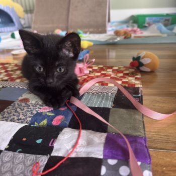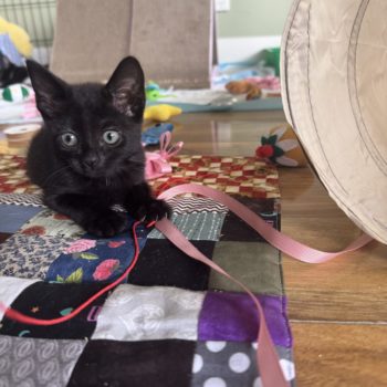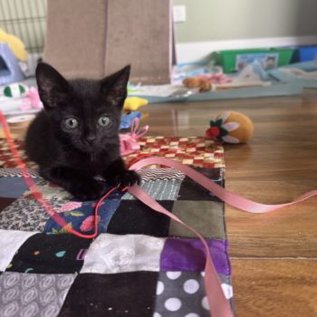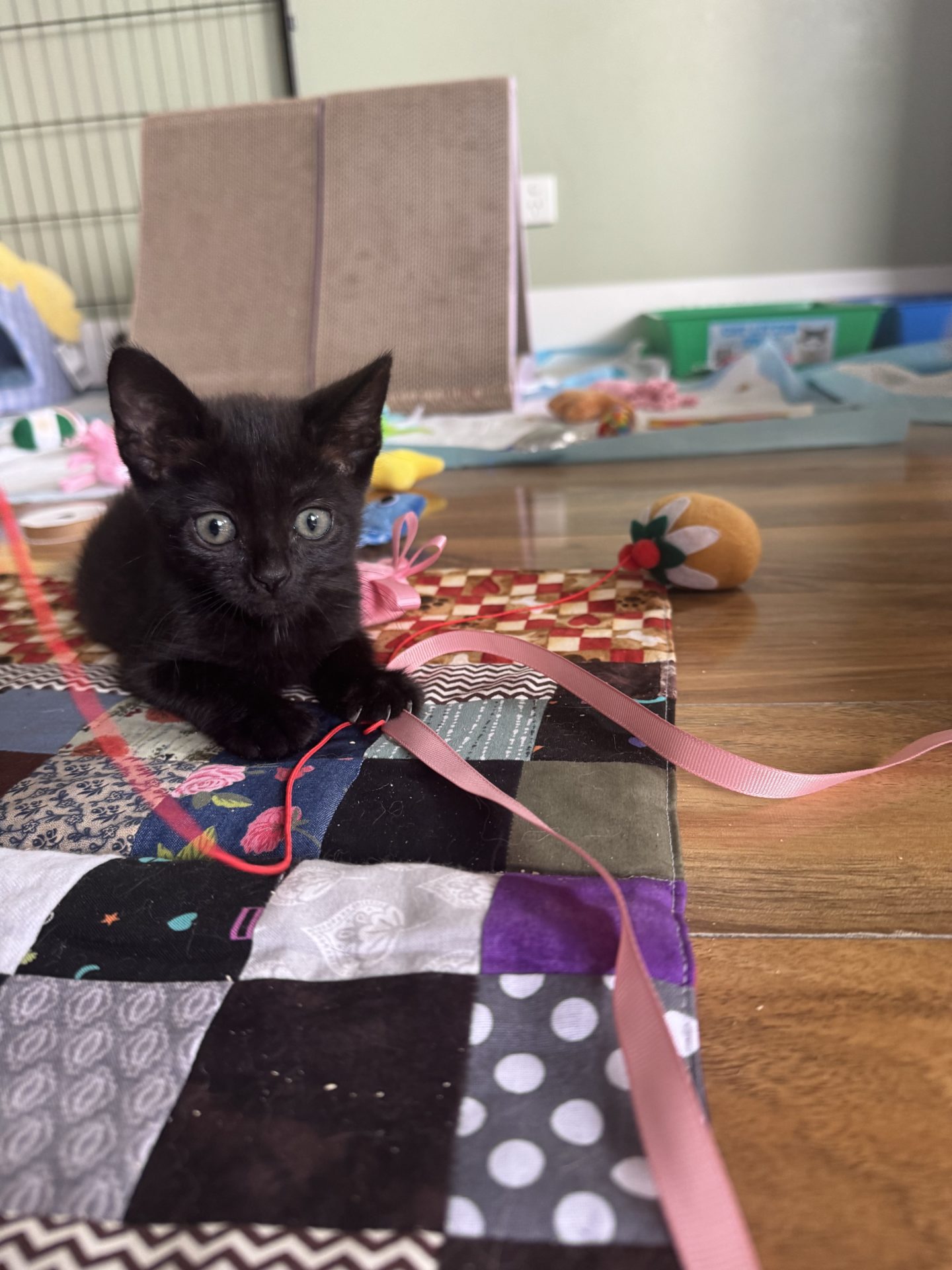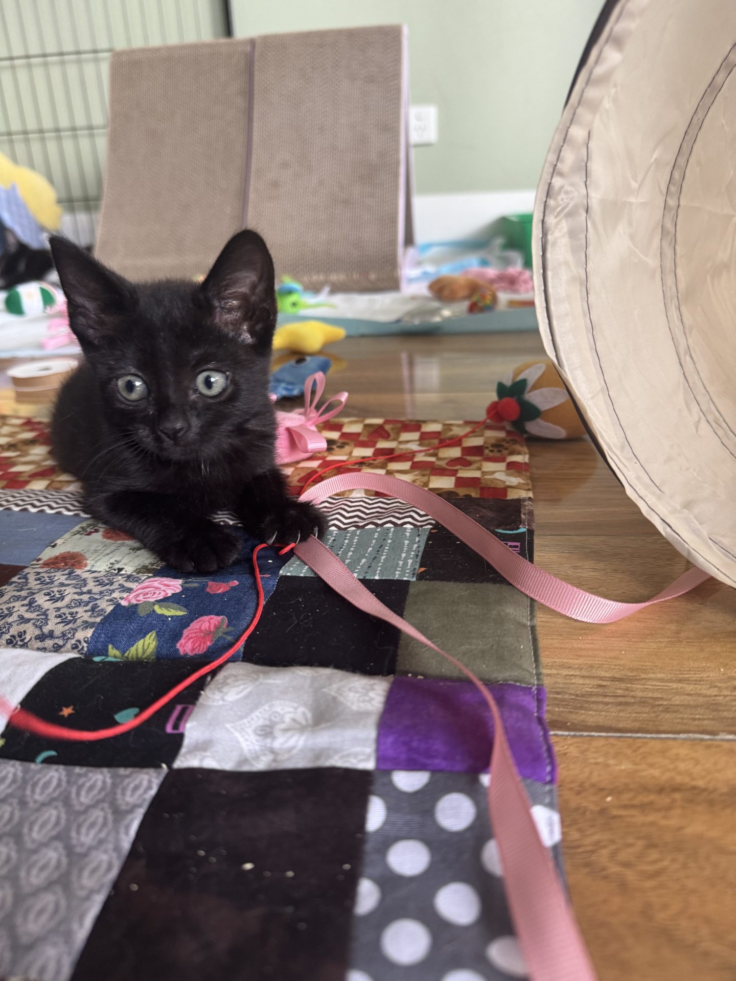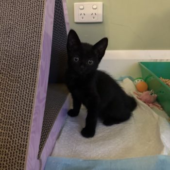 All About Me and My Unique Personality: I am a petite female black kitten with gorgeous eyes. I am outgoing and playful with my siblings. I like interactive play with toys. I am an avid hunter, love a good launch, pounce and catch. I am developing confidence in interacting with people everyday and getting familiarised with the activity and sounds of a household.