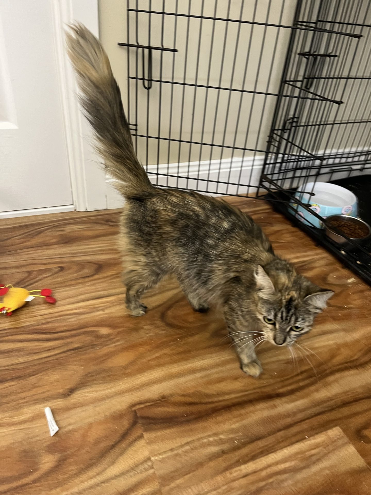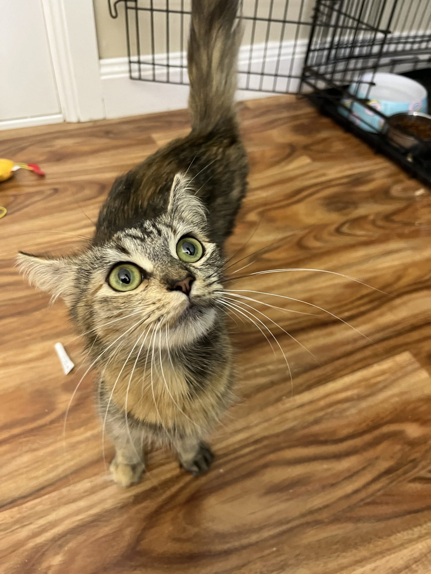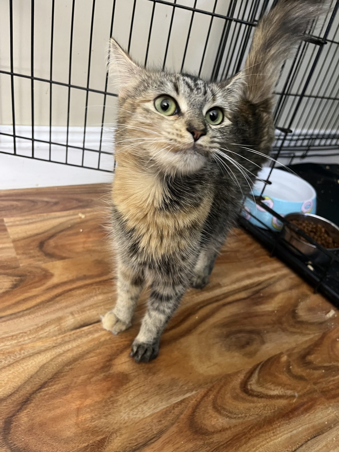 All About Me and My Unique Personality: Snickers is a gentle girl she came into care shut down and sat still only eating in the dark of the night she has now evolved into a gentle smoochy girl she enjoys rubbing on you loves an ear scratch and being stroked she will walk back and forth loving attention she loves her food she is still a bit underweight but gaining well. Snickers has had her vet work done and is ready for her next chapter to find her forever home