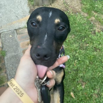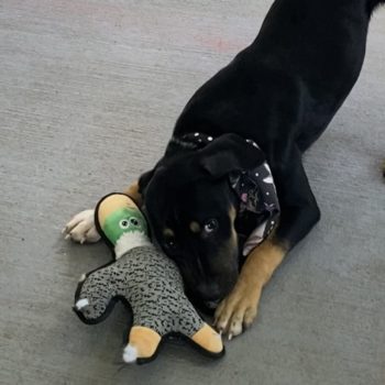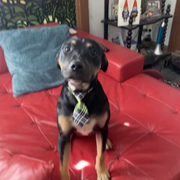 Spike was in the pound with a number of siblings. He was timid and probably totally out of his element. But almost immediately he was flourishing in a loving home environment. He has been wonderfully behaved and polite with other dogs, although he just wants everyone to play with him. He’s not relentless about pestering other dogs that aren’t interested in him and is easily redirected.