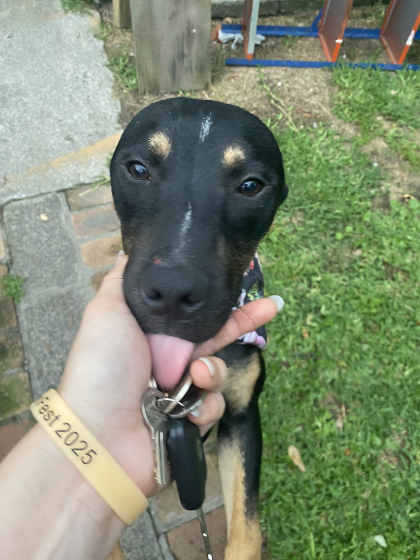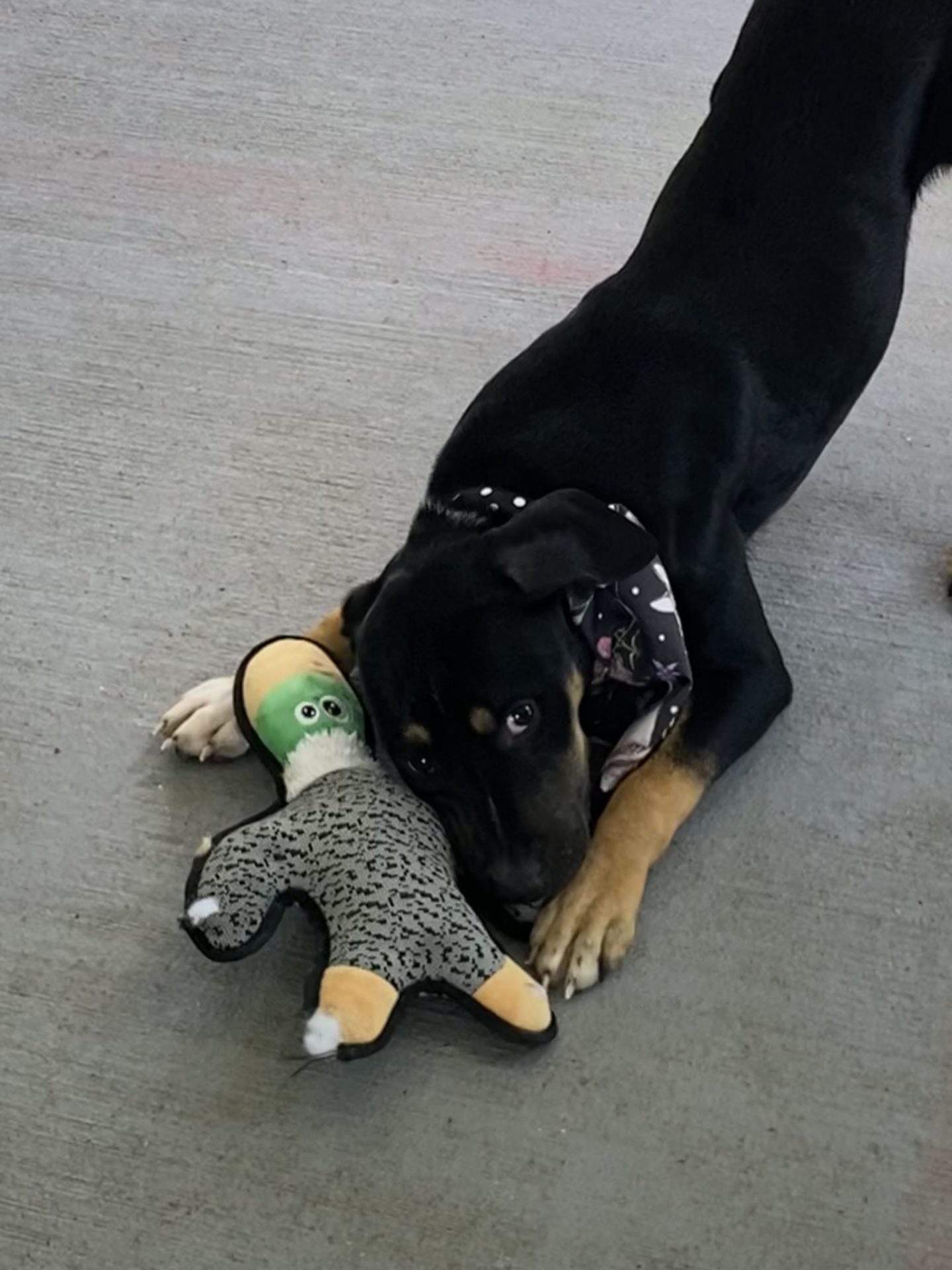 Current Level of Training: Low. Spike had likely not been in a house before, but is already taking himself outside to the toilet after learning impressively quickly what „wee wees“ means. Spike has no experience being on a leash, which we are working on. He is smart and a fast learner though.