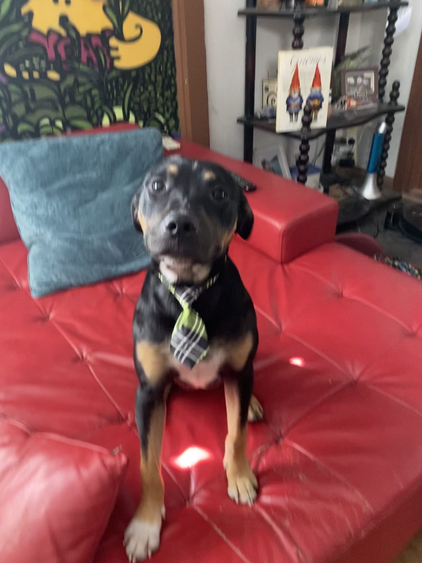 Spike was in the pound with a number of siblings. He was timid and probably totally out of his element. But almost immediately he was flourishing in a loving home environment. He has been wonderfully behaved and polite with other dogs, although he just wants everyone to play with him. He’s not relentless about pestering other dogs that aren’t interested in him and is easily redirected.
