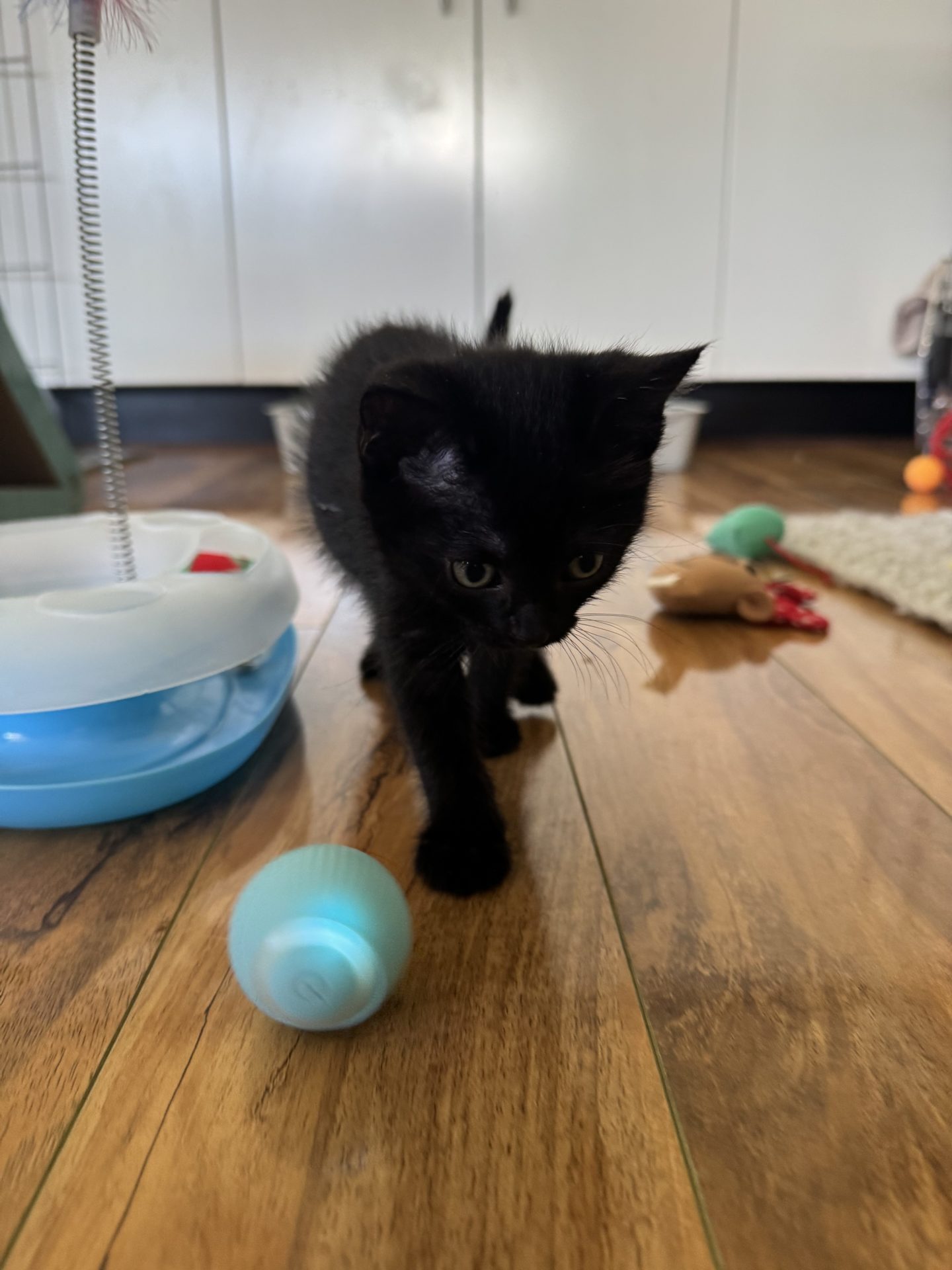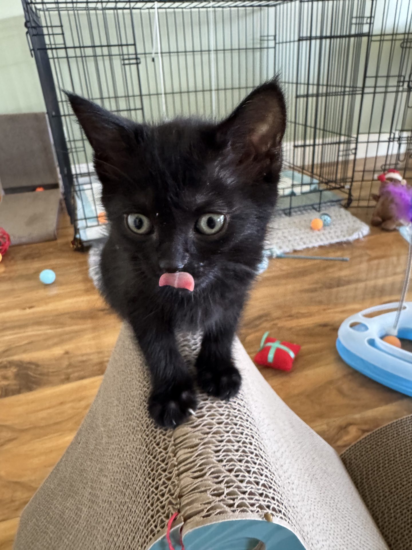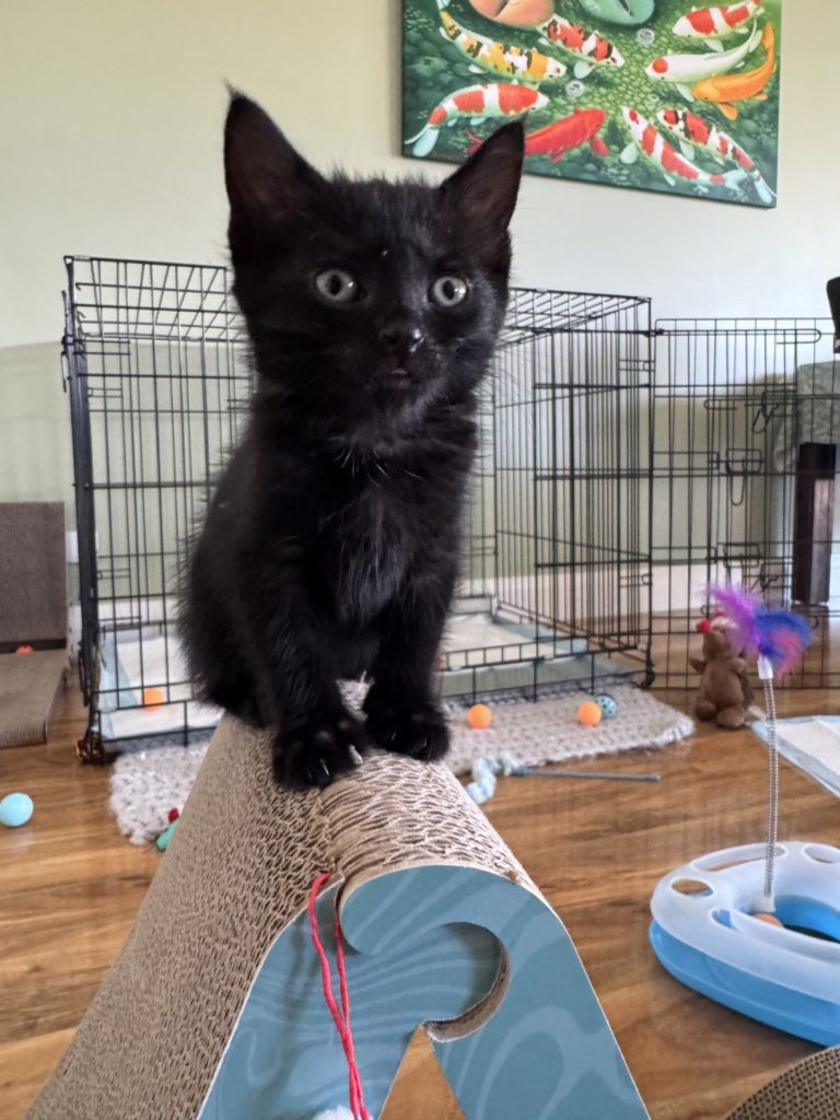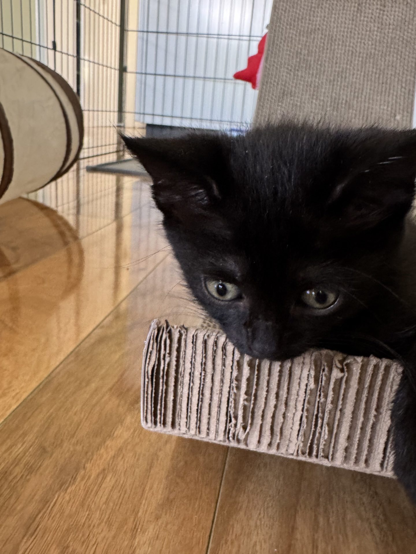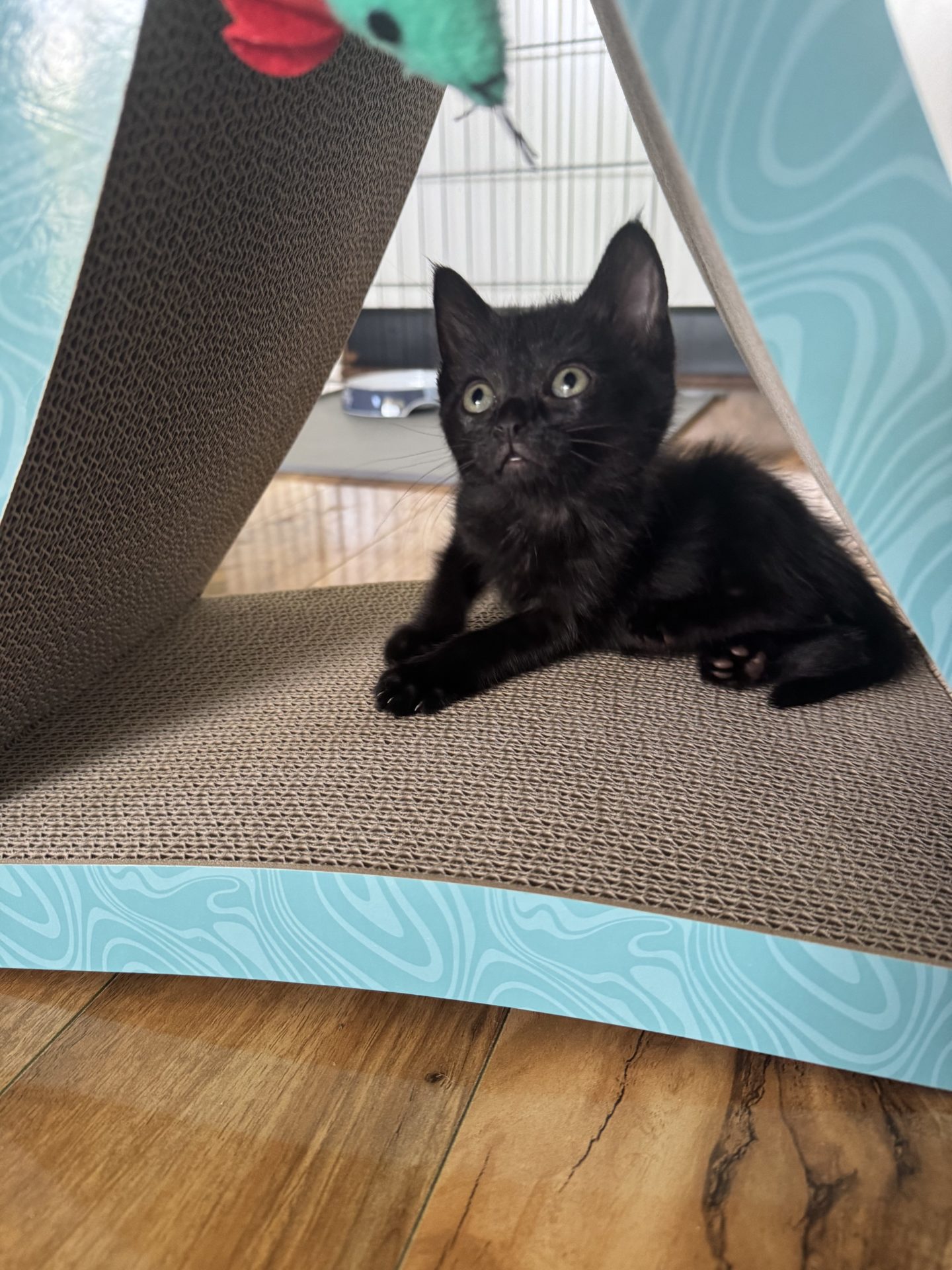 All About Me and My Unique Personality: I am friendly, attention seeking and I love social interactions. I’m talkative and like meowing if I want attention. I’m action oriented and like to play/massage the wall. I’m curious and inquisitive. I like exploring, climbing, pouncing, chasing, and hunting. I purr and kneed when I’m comfortable. I like to zoom up my cardboard scratching post and playing with crinkly scrunchie toys.