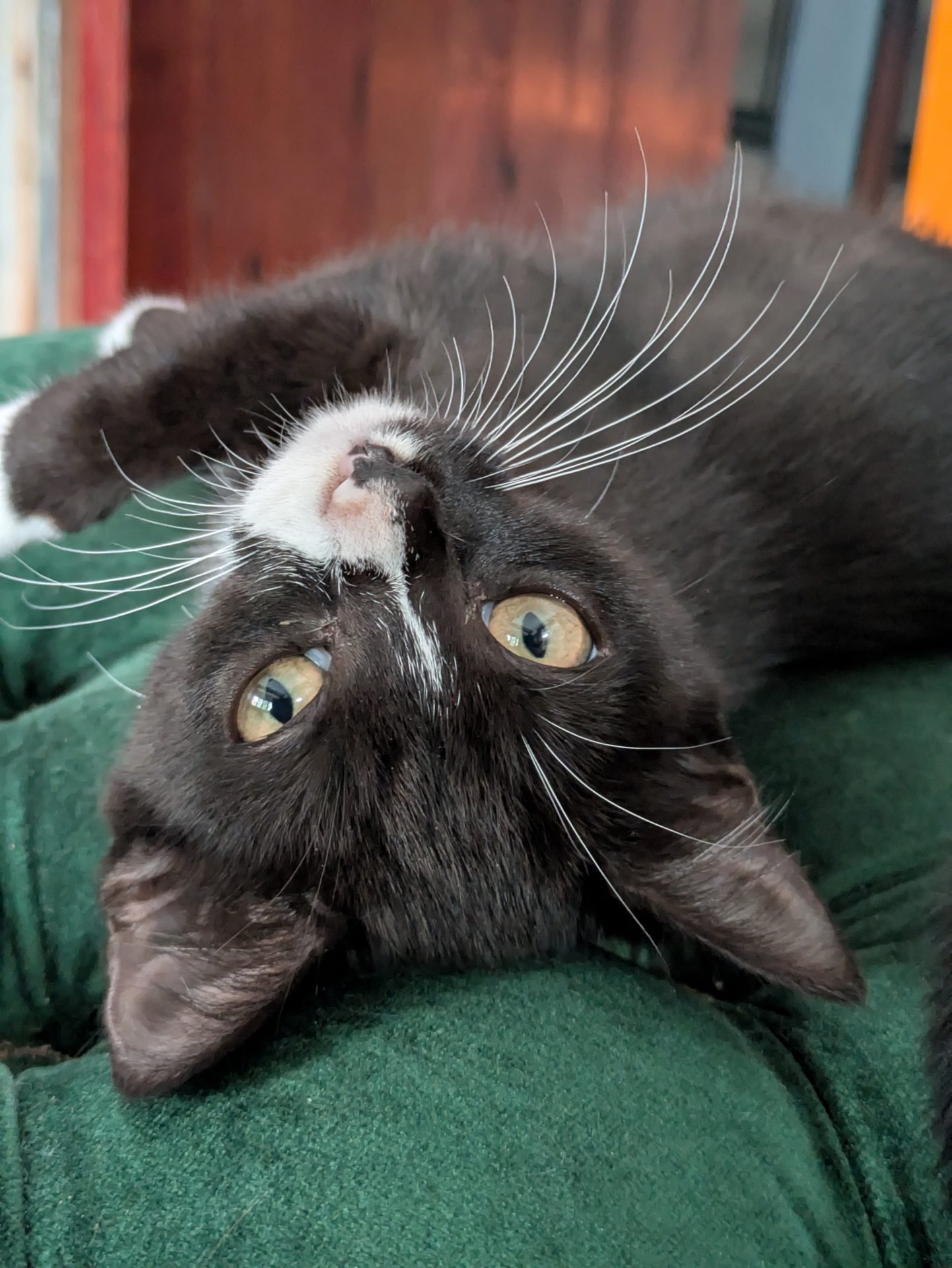 Thimble would do great with a special human to call her own, maybe an older person. She can be very affectionate once she builds trust with her person. She's quite funny and occasionally stands on her hind legs for pats.