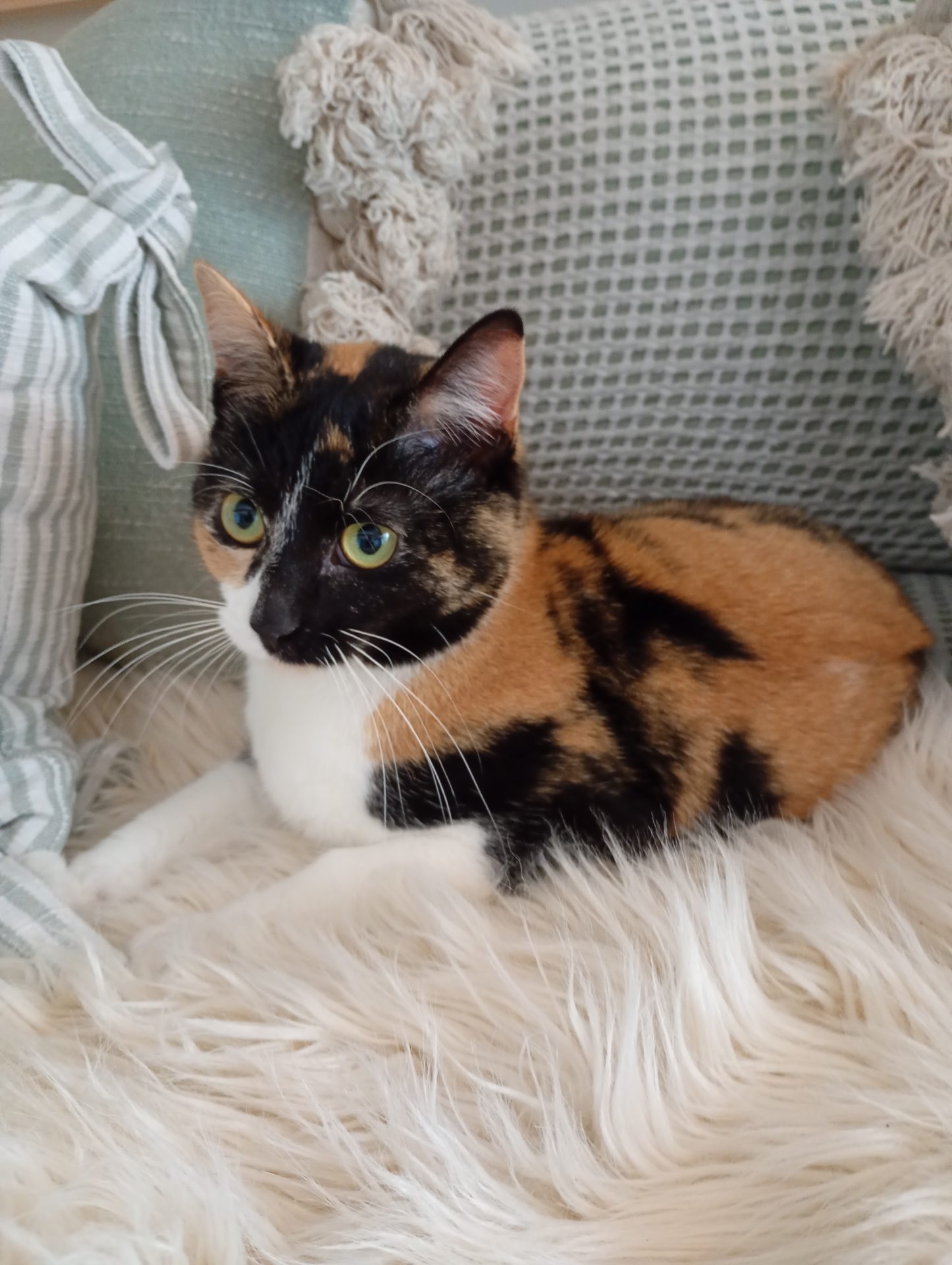 All About Me and My Unique Personality: Meet Tilly, a striking two-and-a-half-year-old calico beauty. Once she’s had a little time to settle in and get acquainted, Tilly truly blossoms into a loving companion. She adores human company and will happily curl up beside you, especially if it means she gets her favourite back-of-the-neck rubs and scratches.
