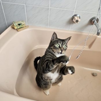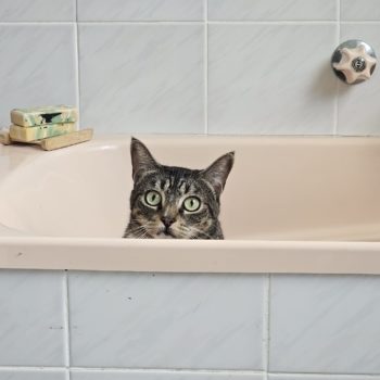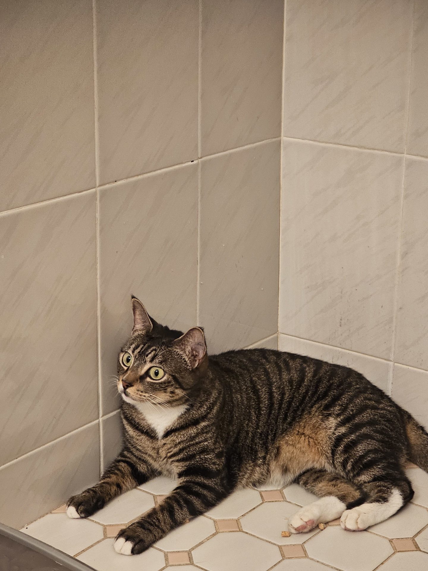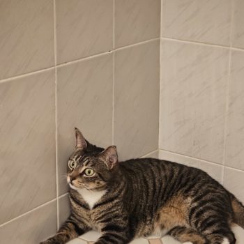 It has taken her 3 weeks to want to leave the safety of the bathroom and venture around the house.