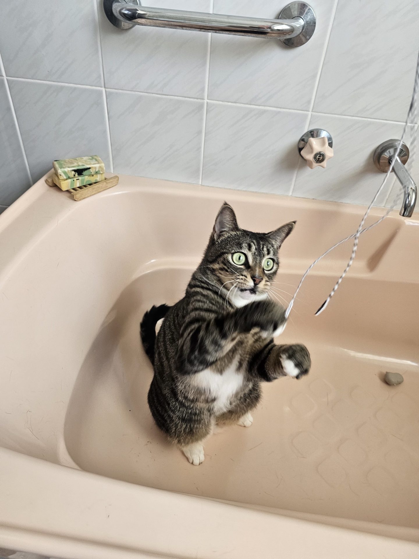 Tilly is also a very solid and chonky 6.1kg and should try to get some exercise in! She will play with stringlike toys for quite awhile and short zoomies so this should continue for her.